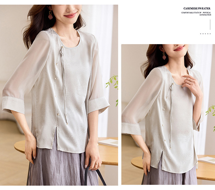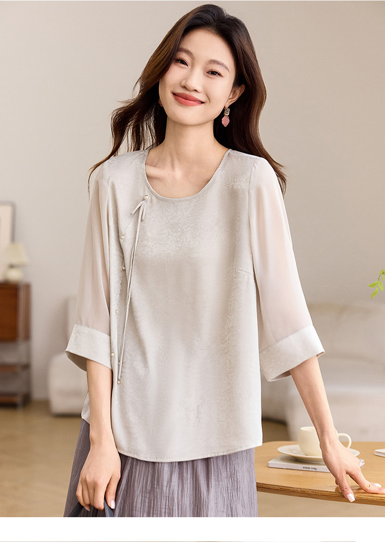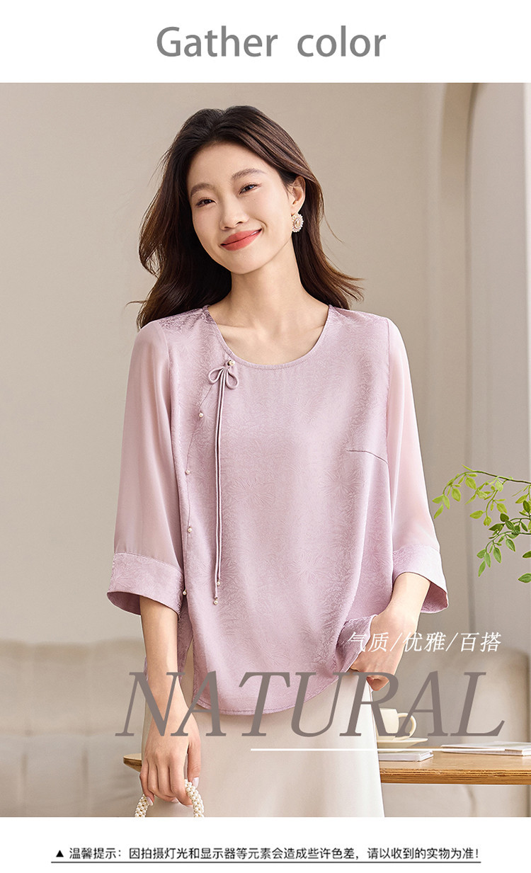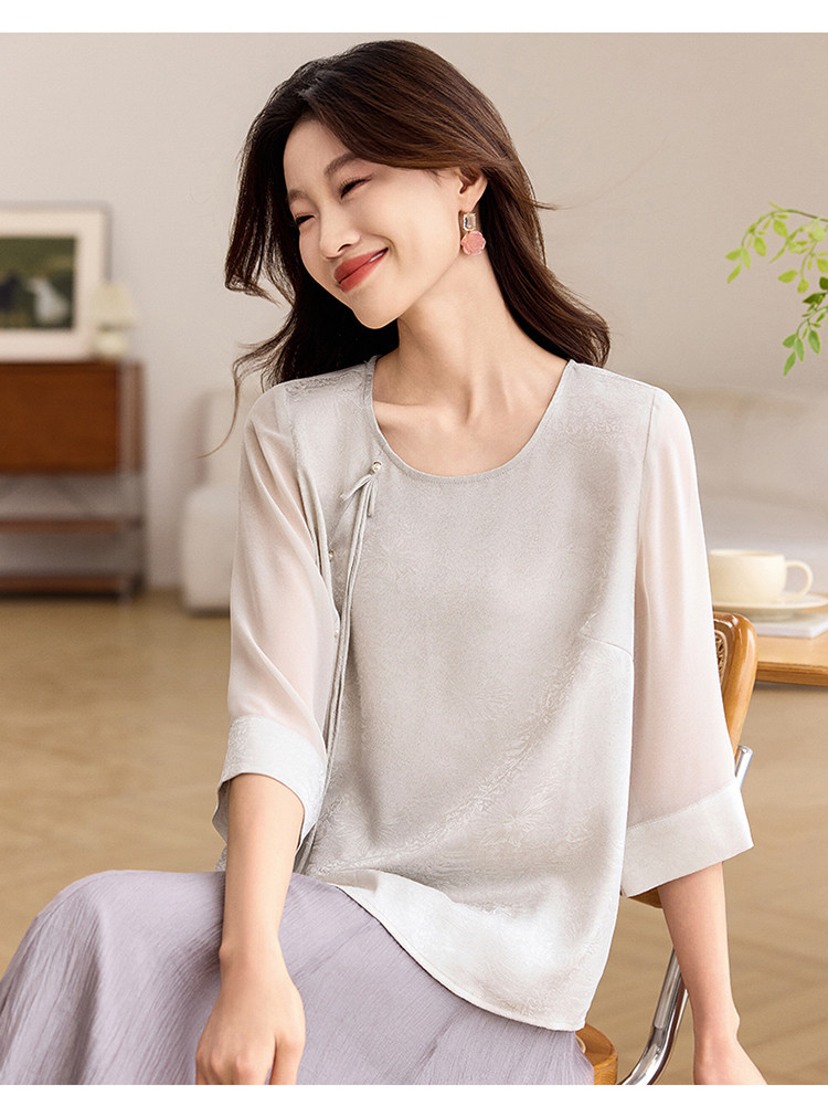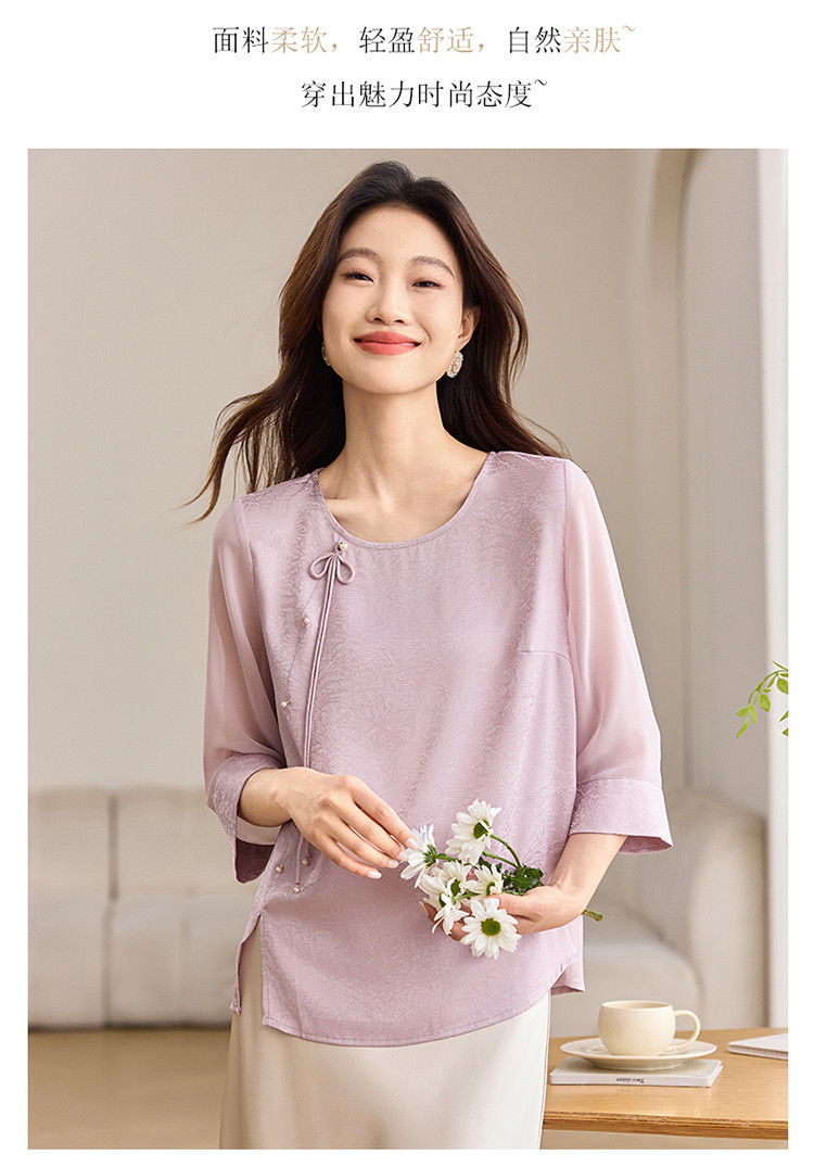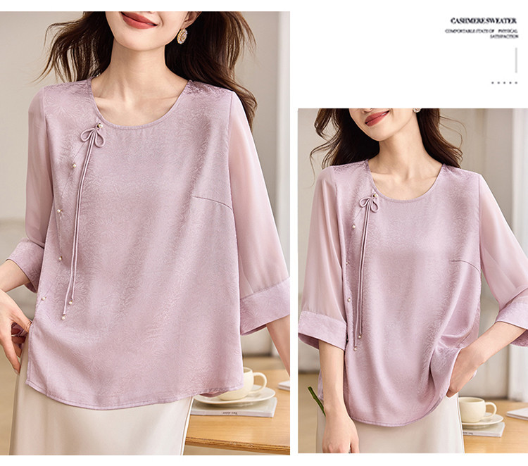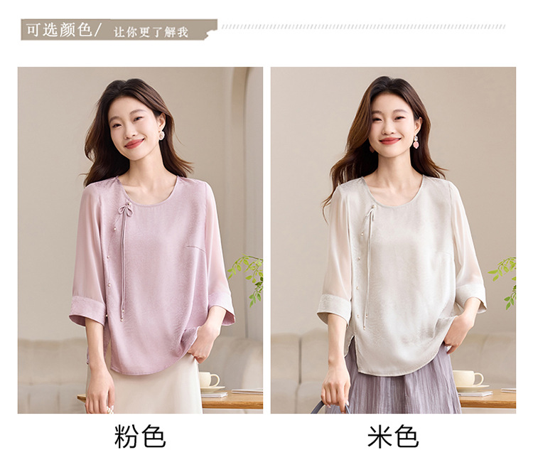 QY6712 国风设计感小众女式t恤洋气减龄短款显瘦七分袖上衣夏季