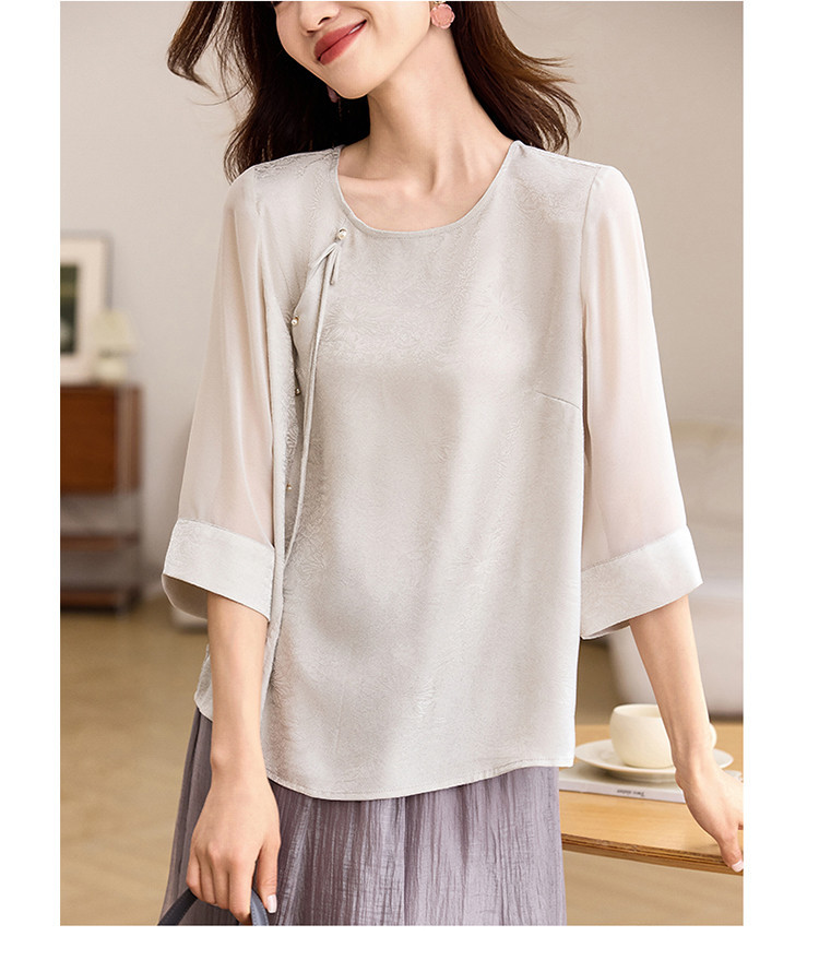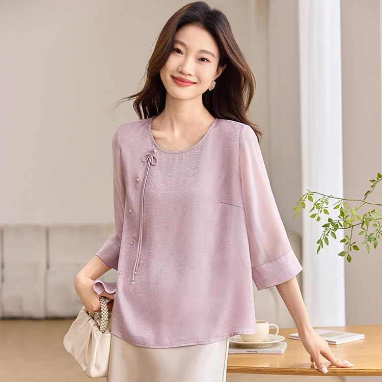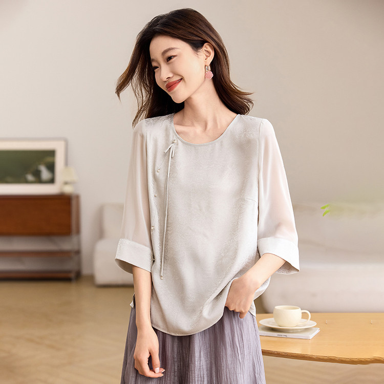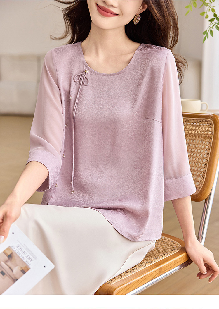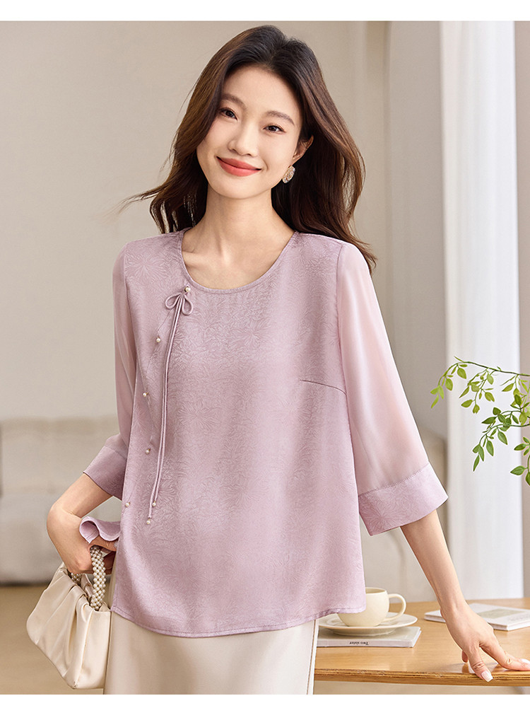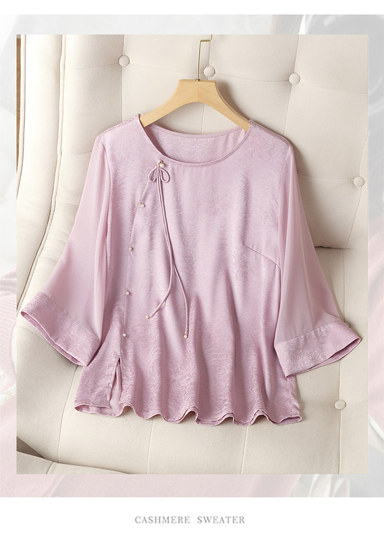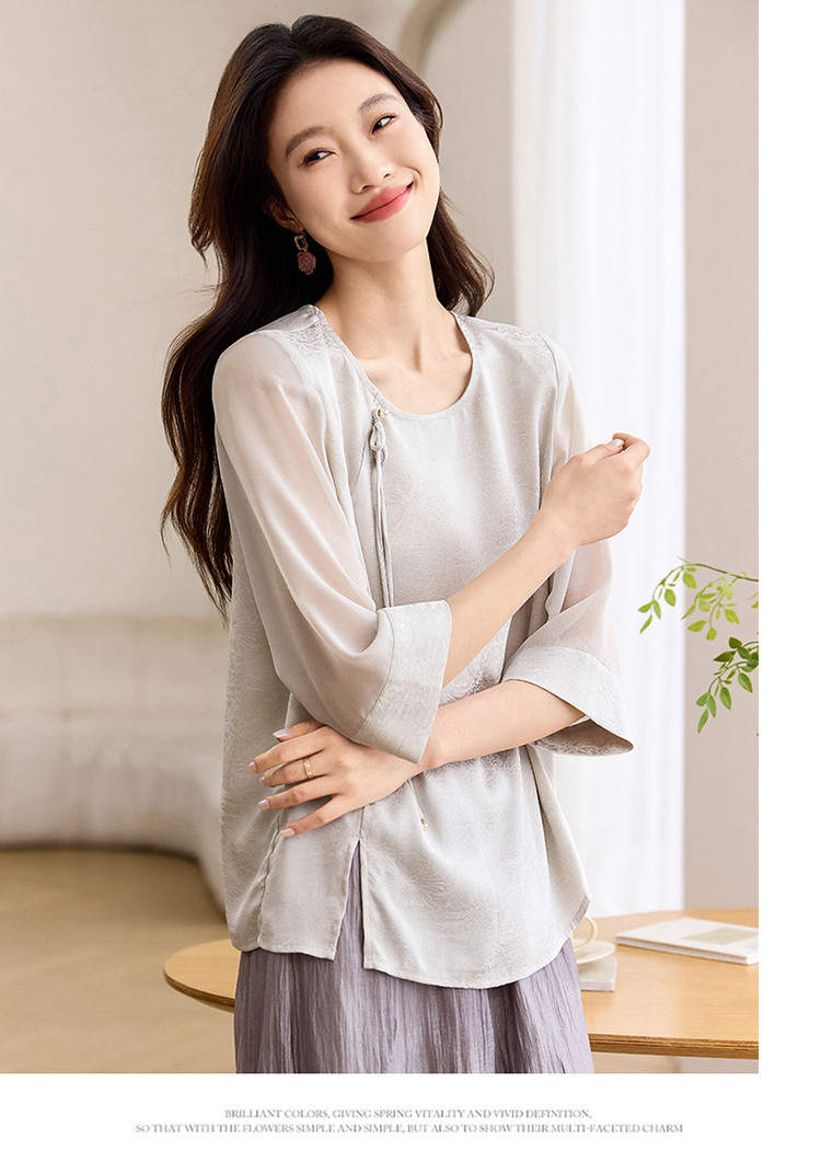 QY6712 国风设计感小众女式t恤洋气减龄短款显瘦七分袖上衣夏季