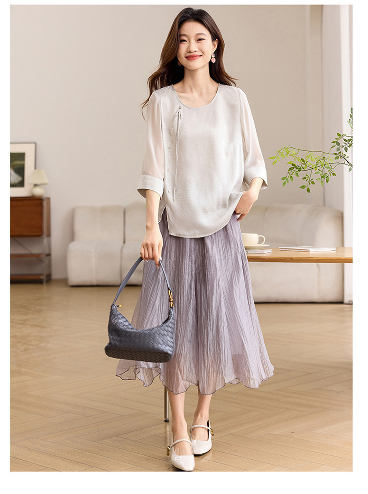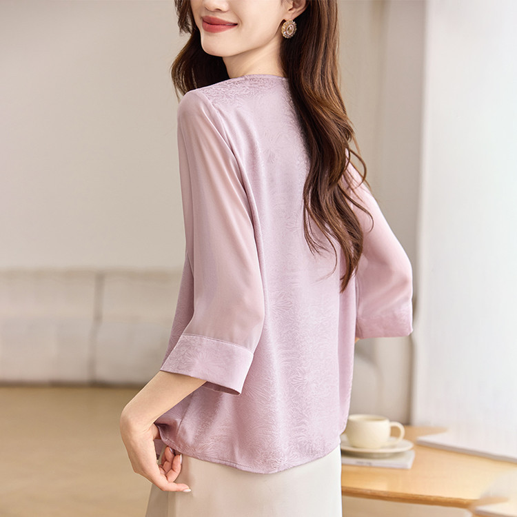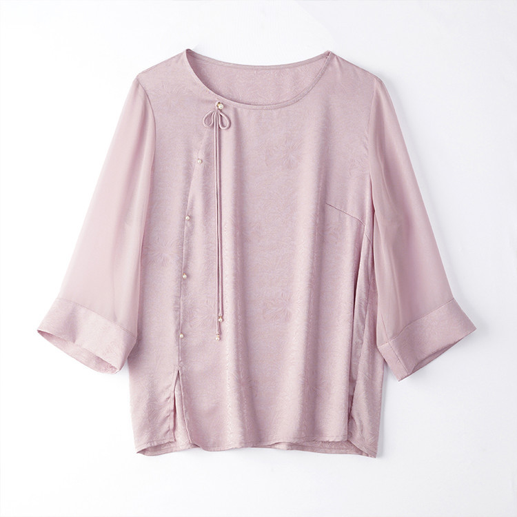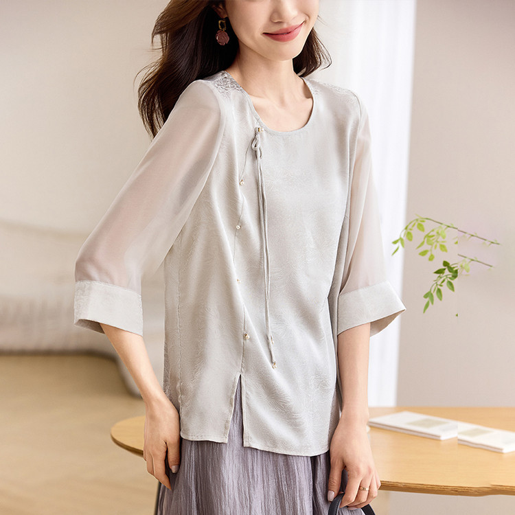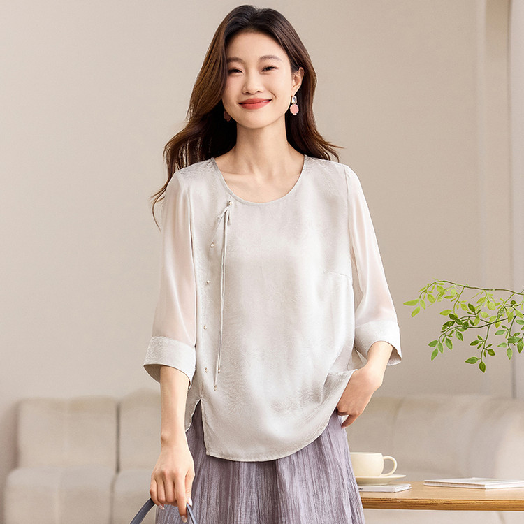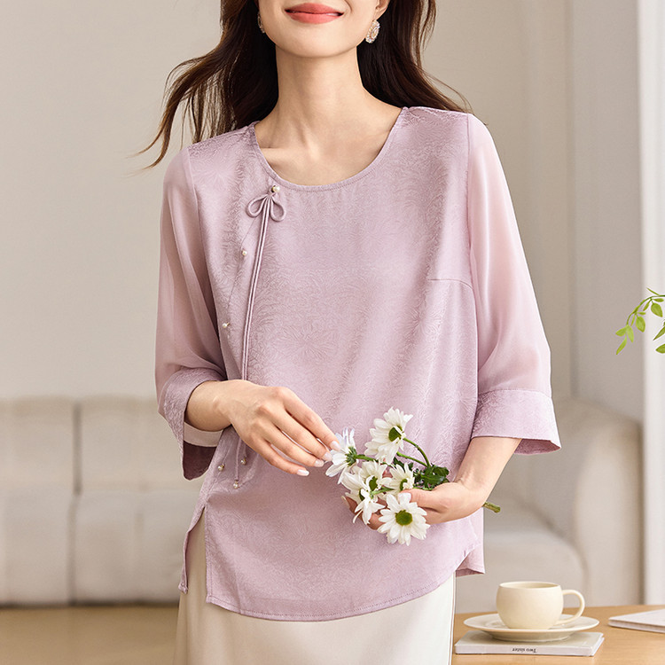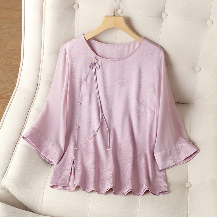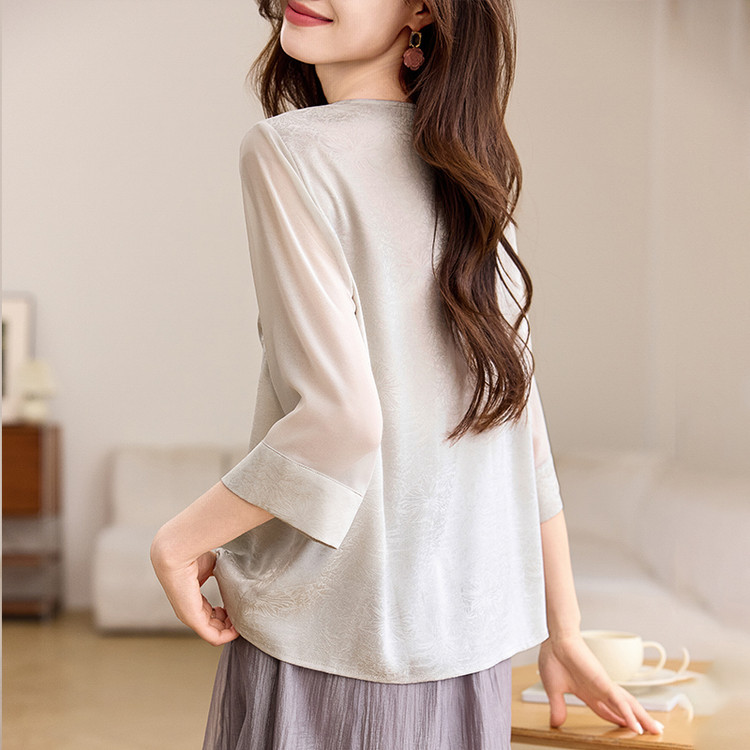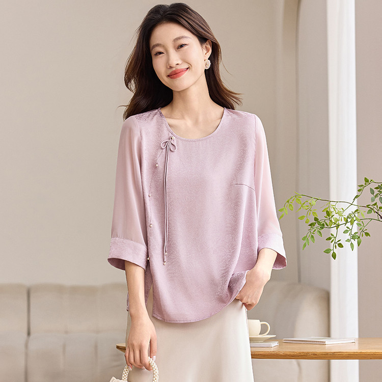 QY6712 国风设计感小众女式t恤洋气减龄短款显瘦七分袖上衣夏季