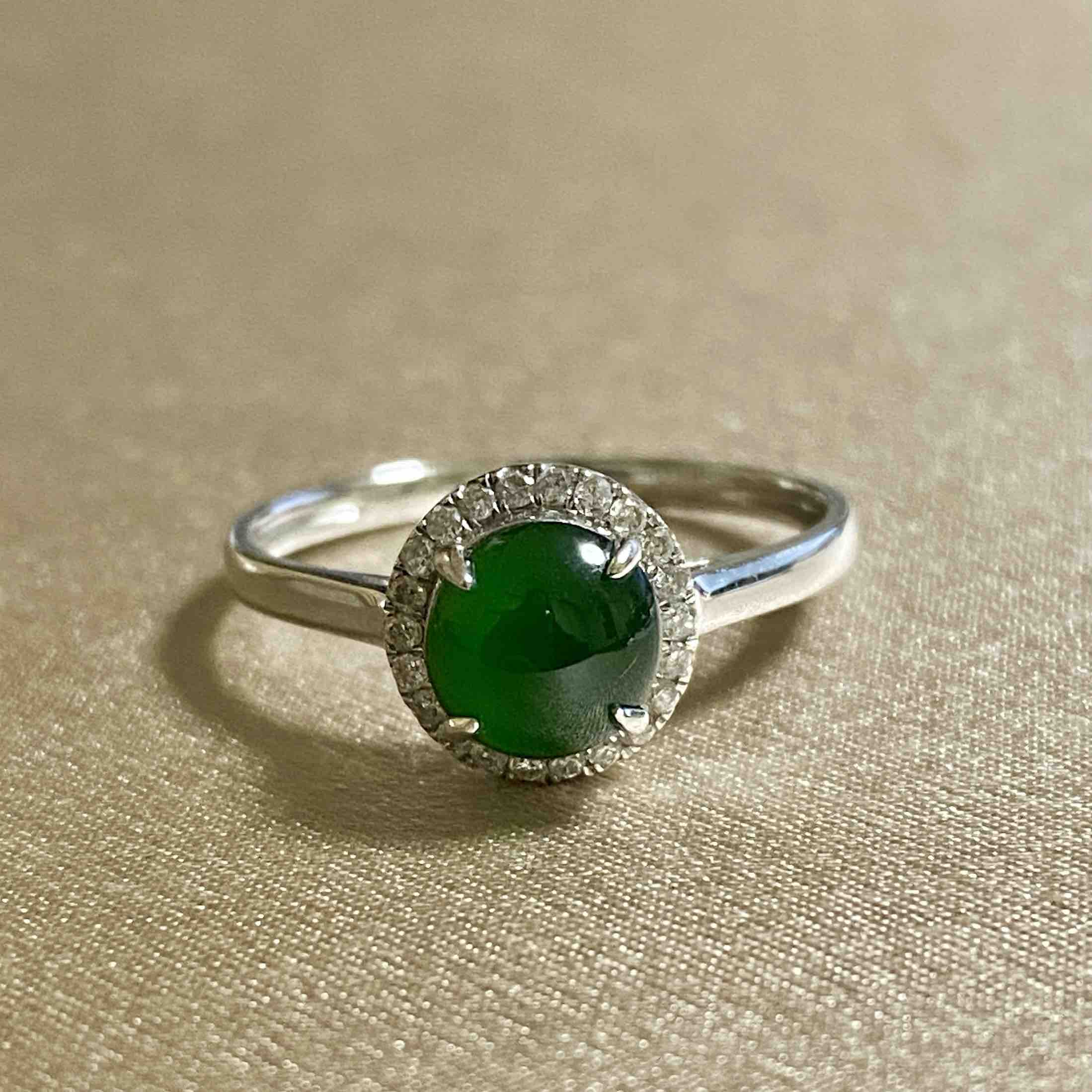 18k白金满钻翡翠戒指