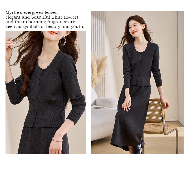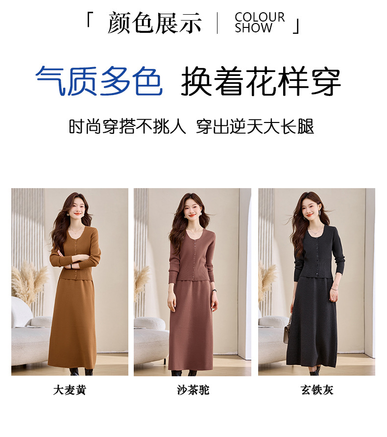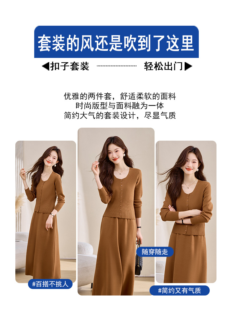 2025年新款秋季温柔气质韩版感羊毛针织两件套套装裙AIMI1221