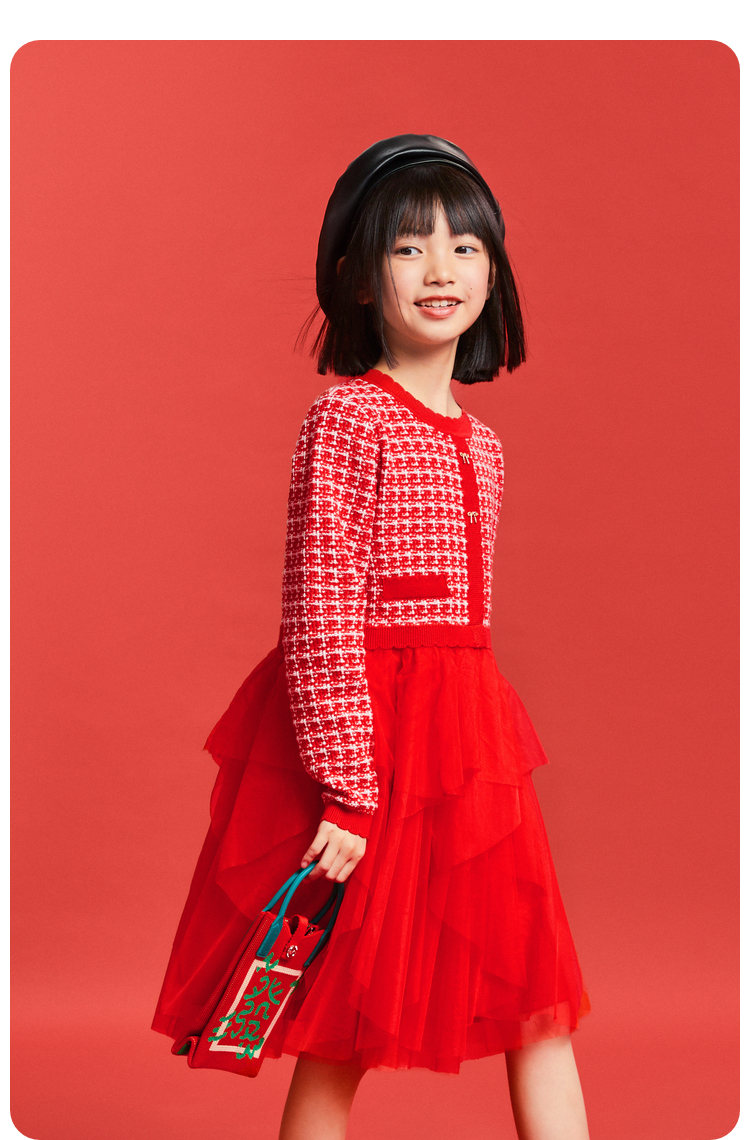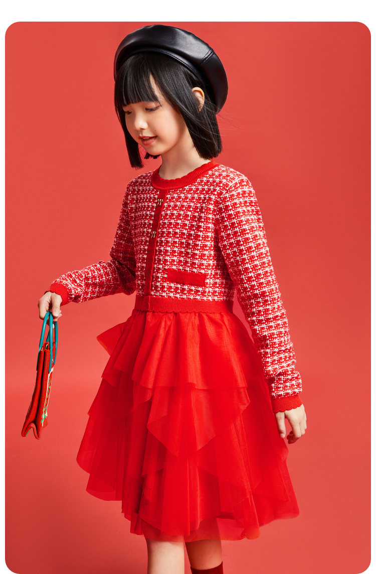女童针织连衣裙春季新款安奈儿童装EG514005