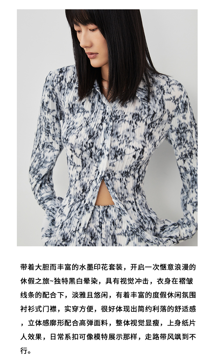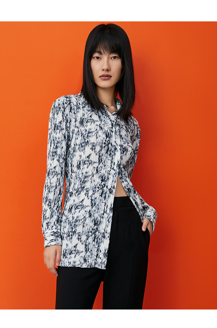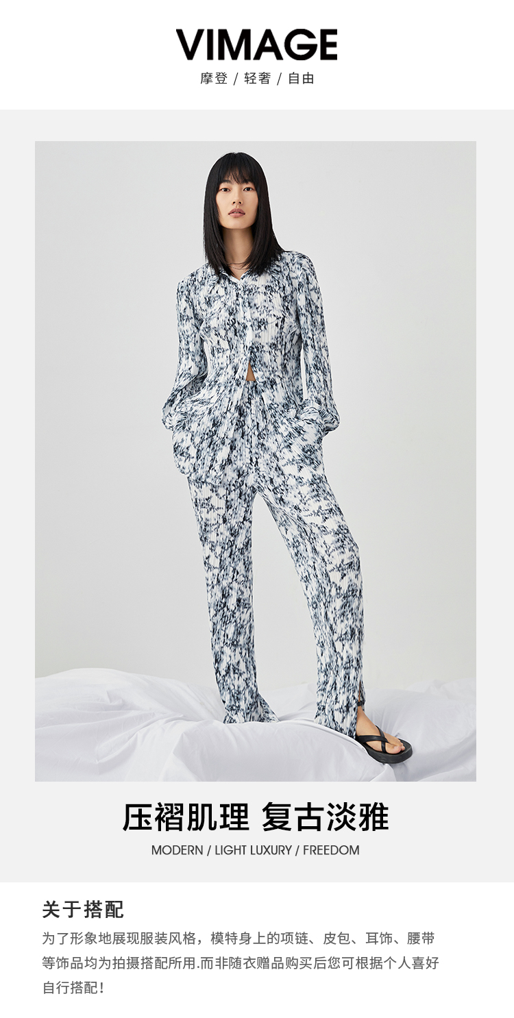 VIMAGE/纬漫纪春季新款抽象印花设计小众衬衣上衣V1709313