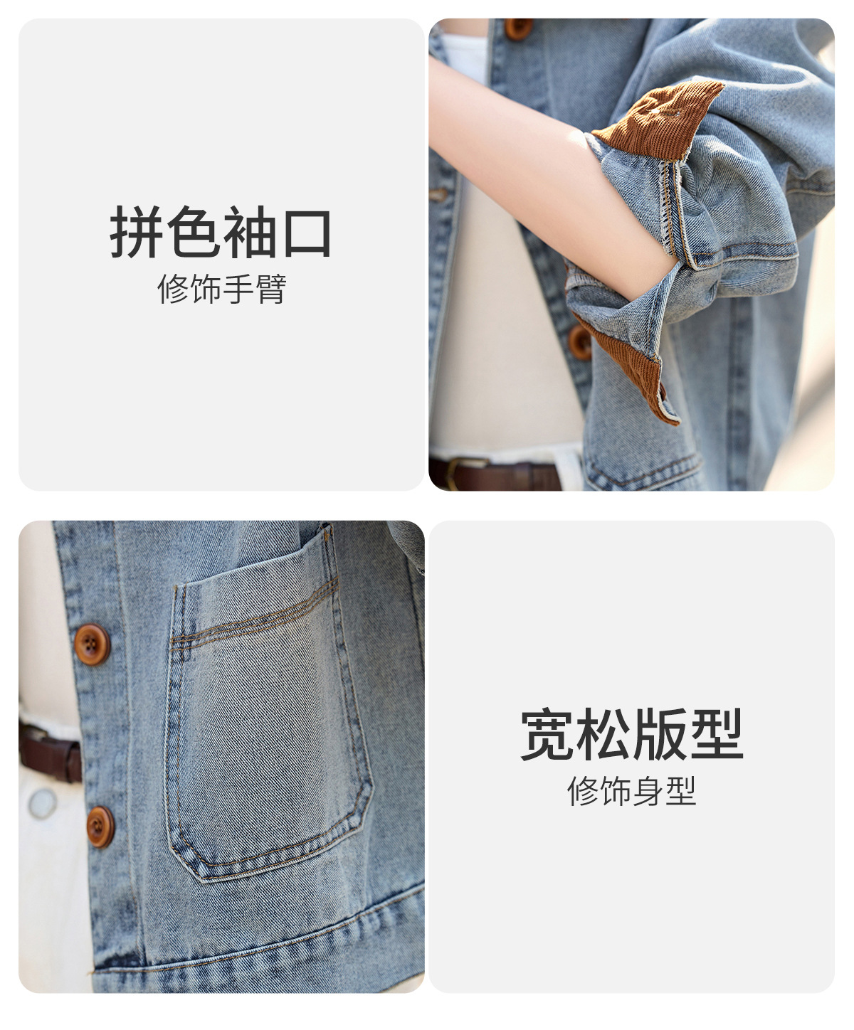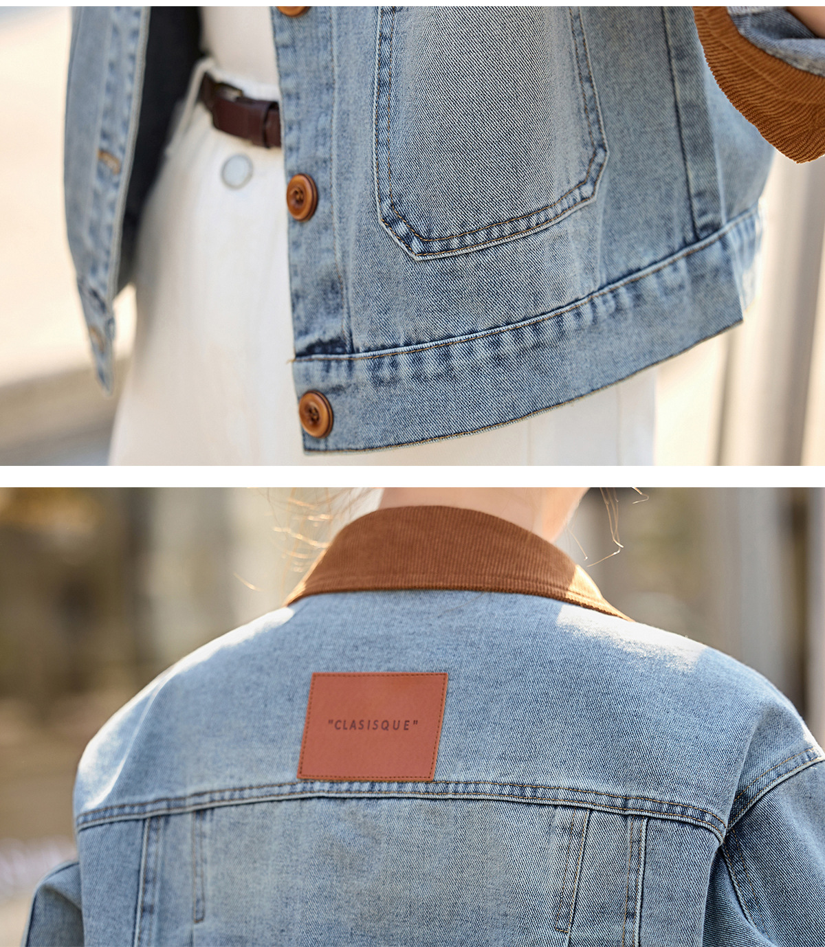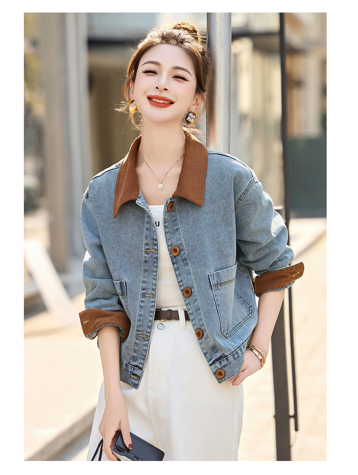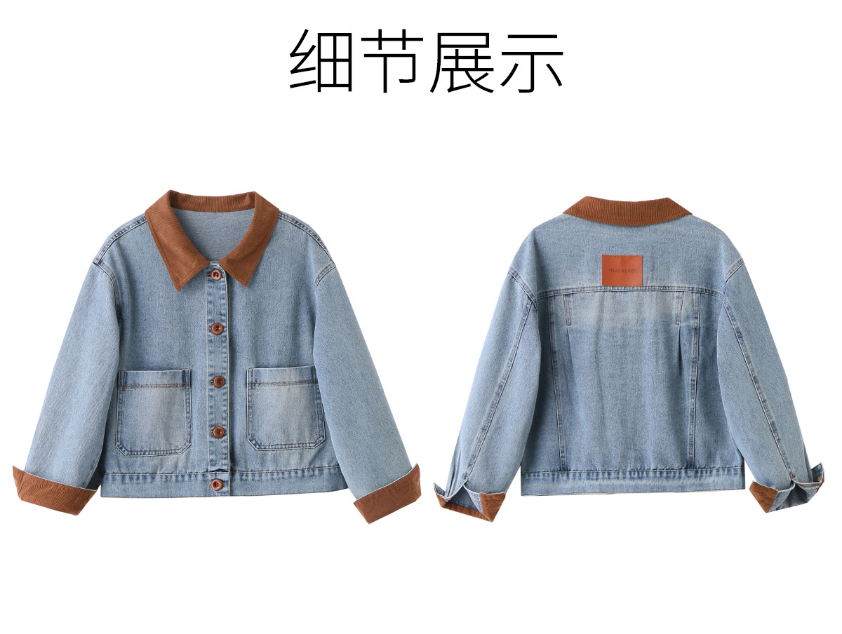 港风复古短款牛仔外套,撞色拼接翻领小个子夹克MUZI137