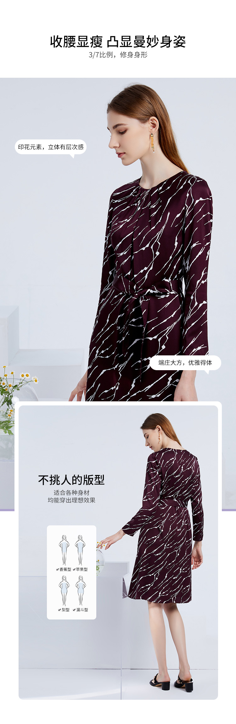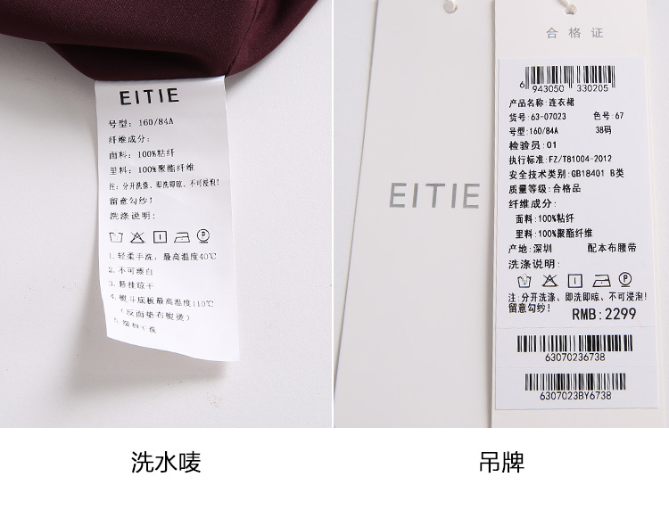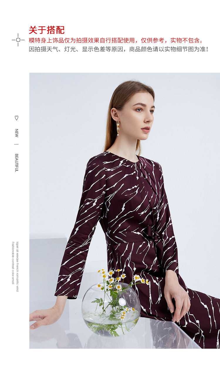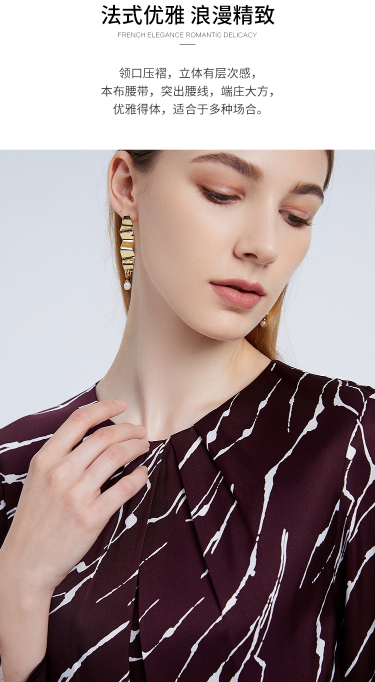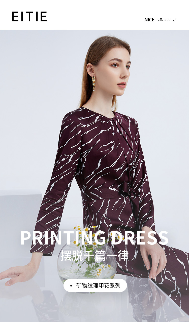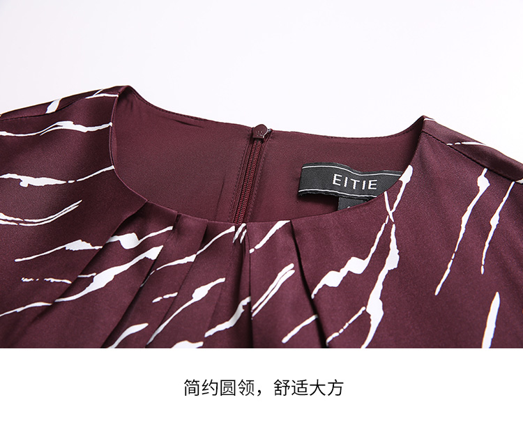 EITIE爱特爱春季新款复古气质洋气V领收腰泡泡袖显瘦连衣裙女A2107711