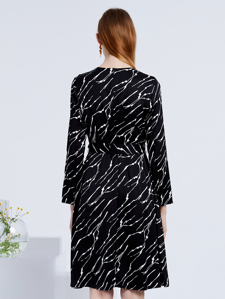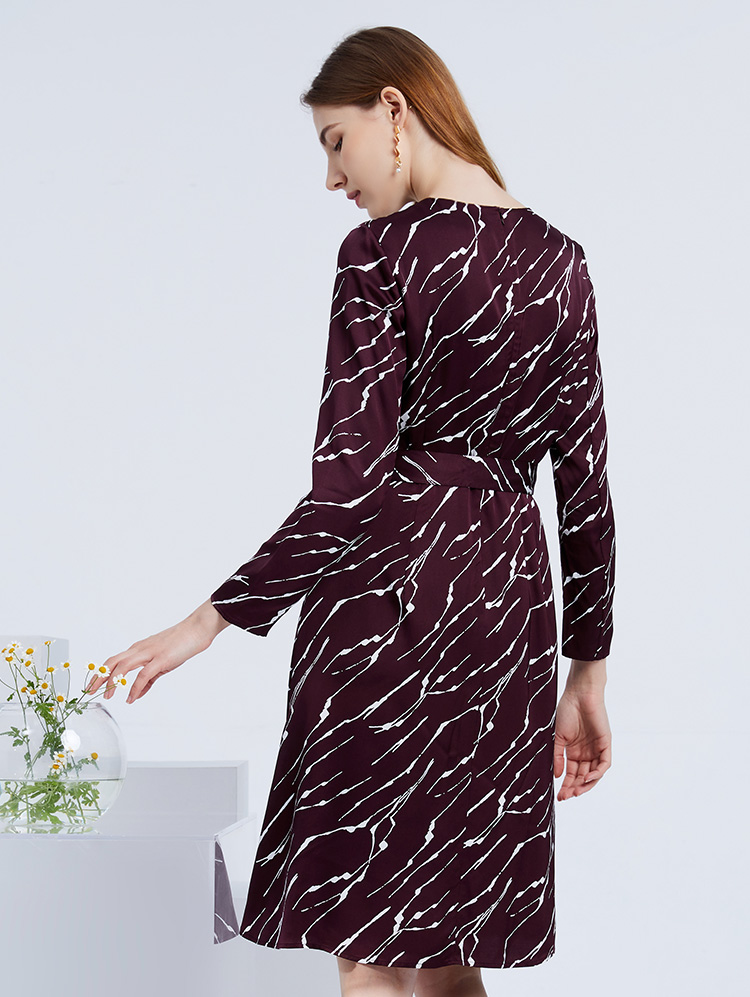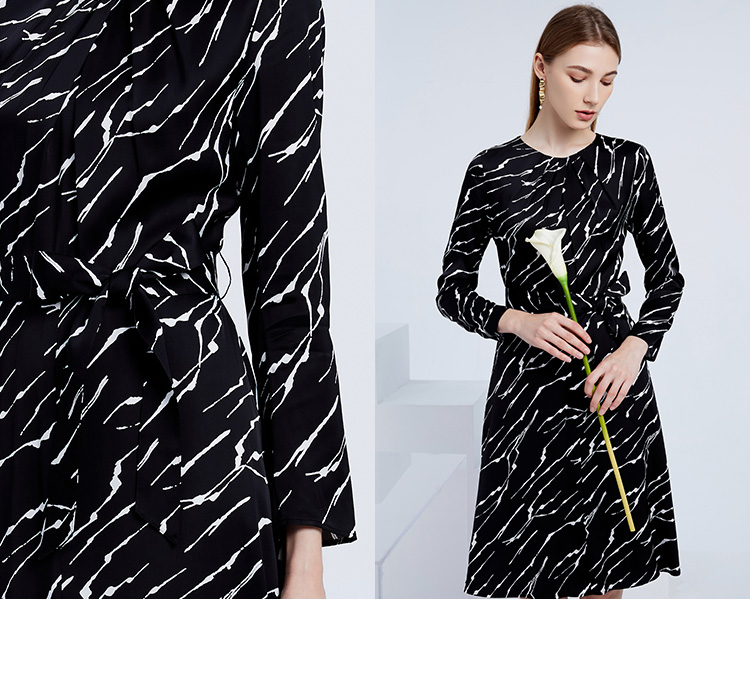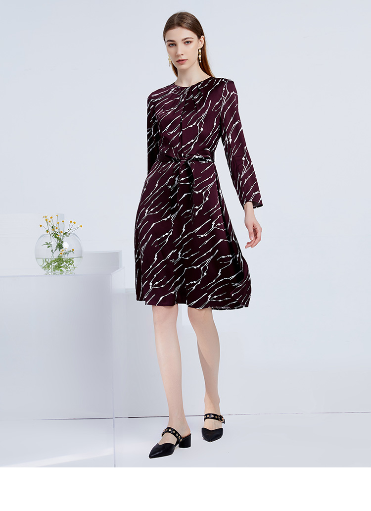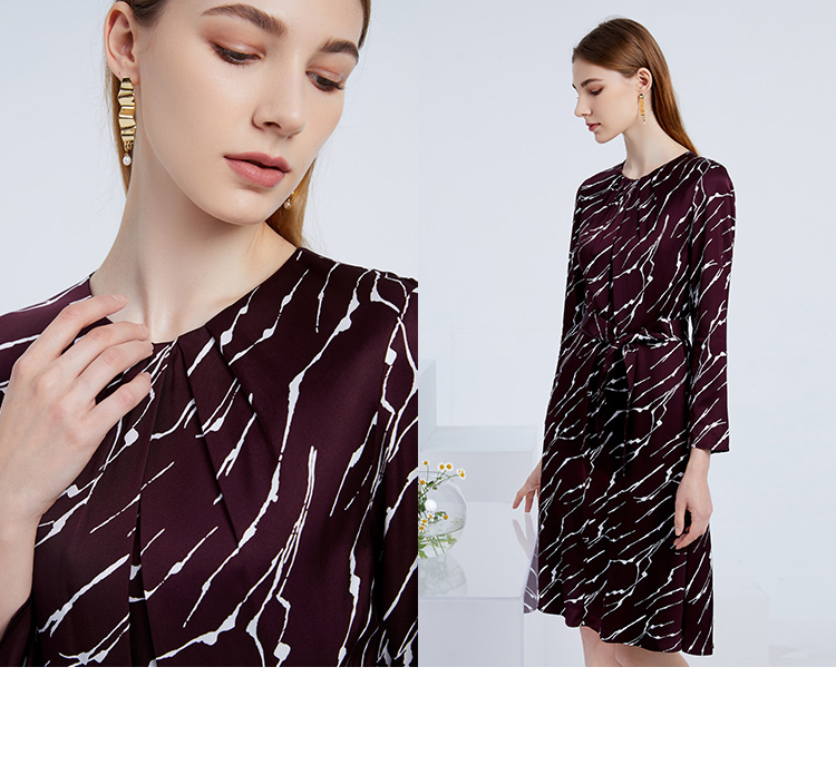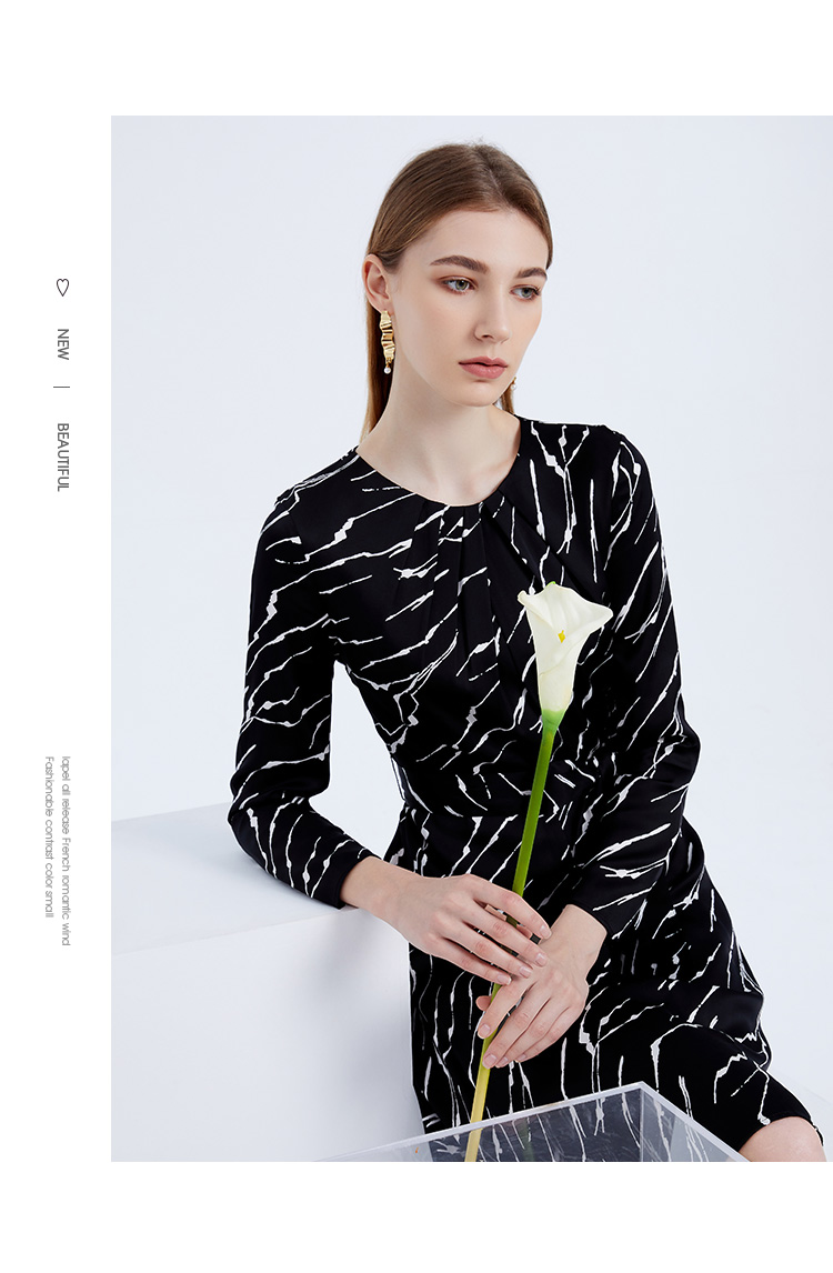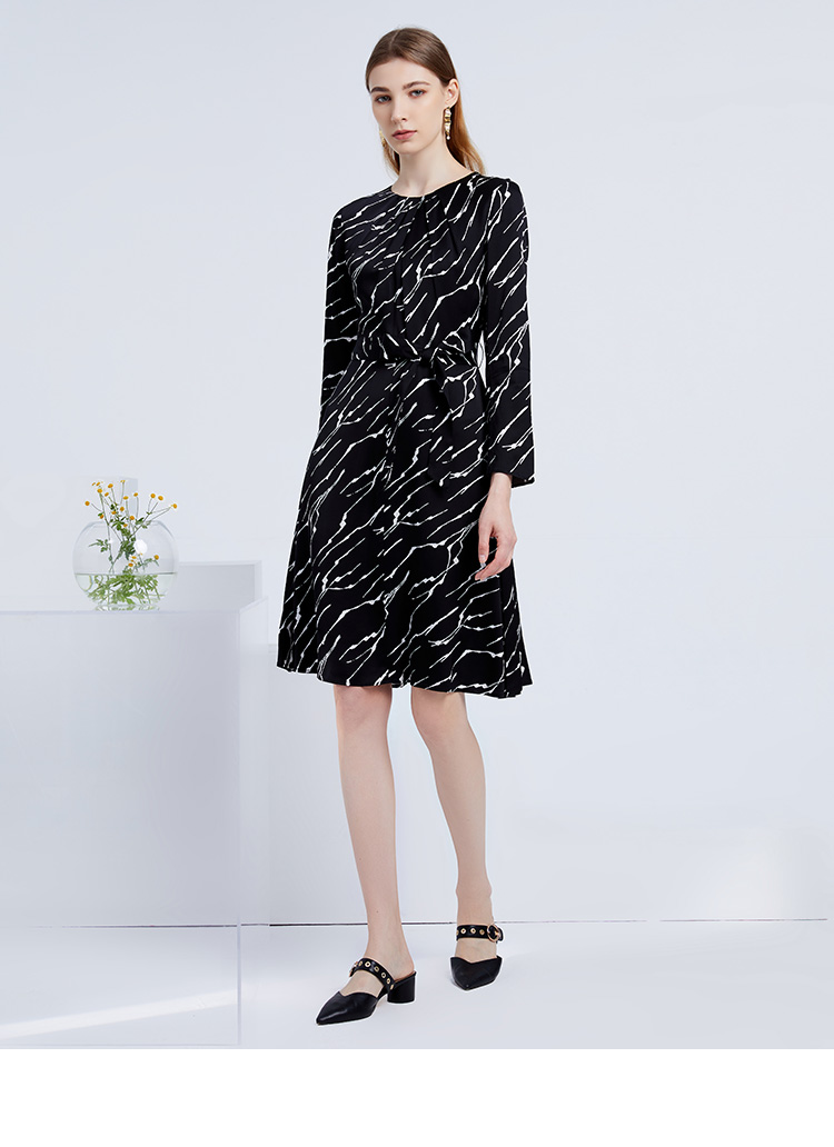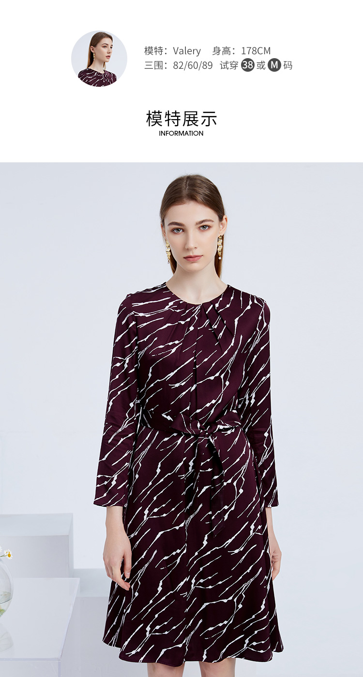 EITIE爱特爱春季新款复古气质洋气V领收腰泡泡袖显瘦连衣裙女A2107711