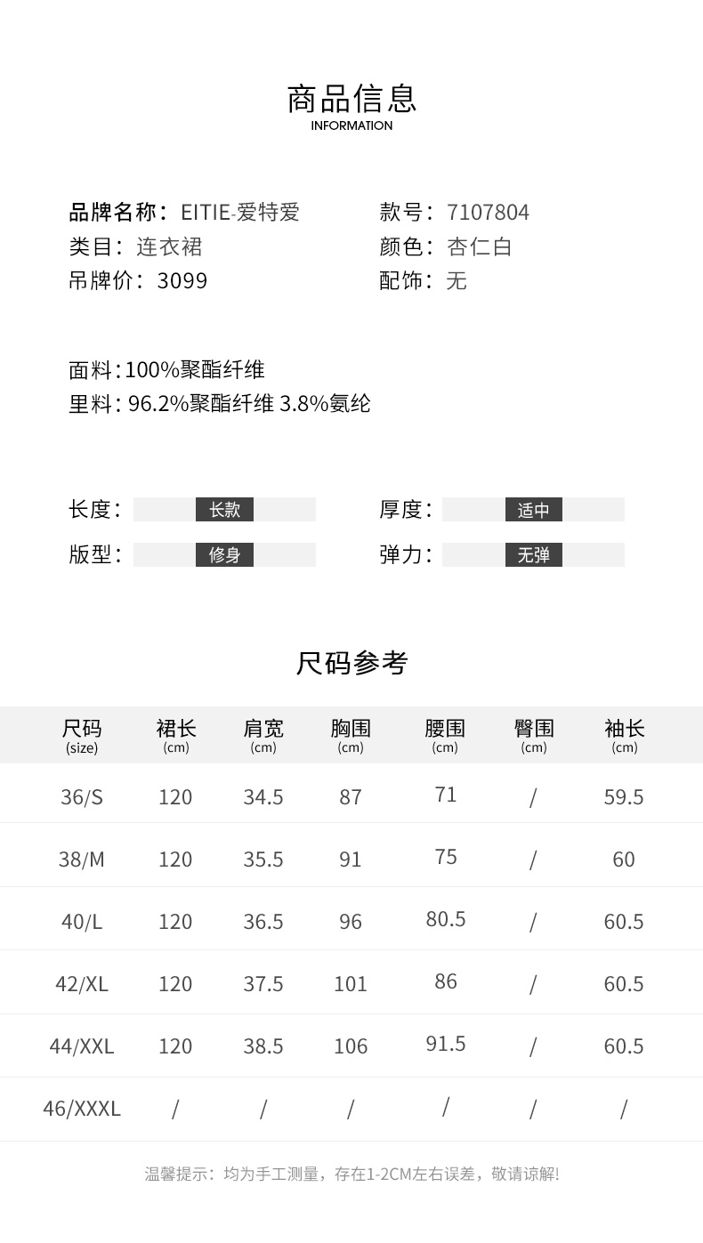 EITIE爱特爱秋季新款长袖优雅显瘦连衣裙7107804