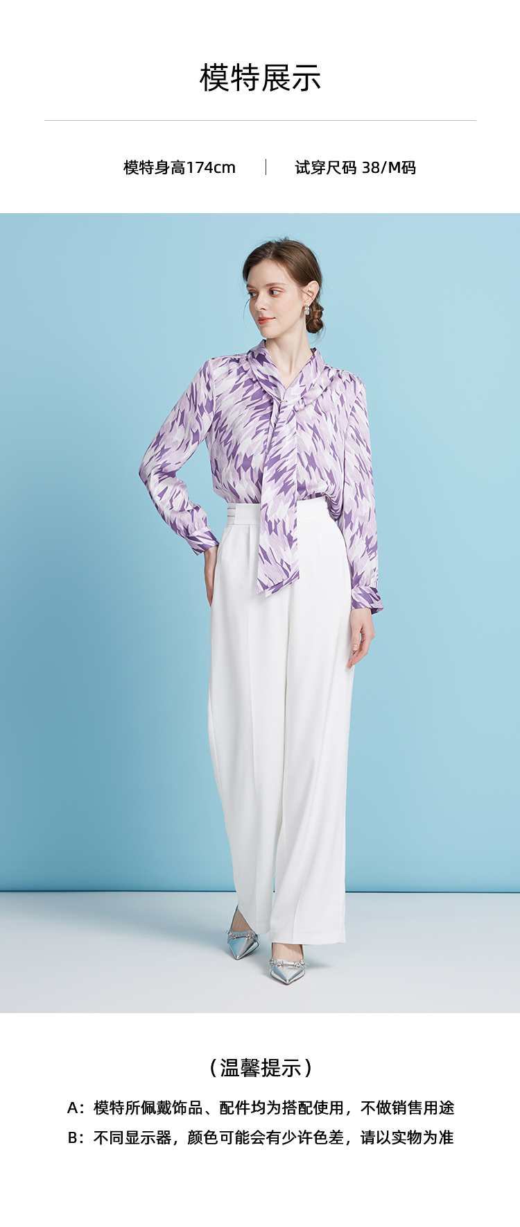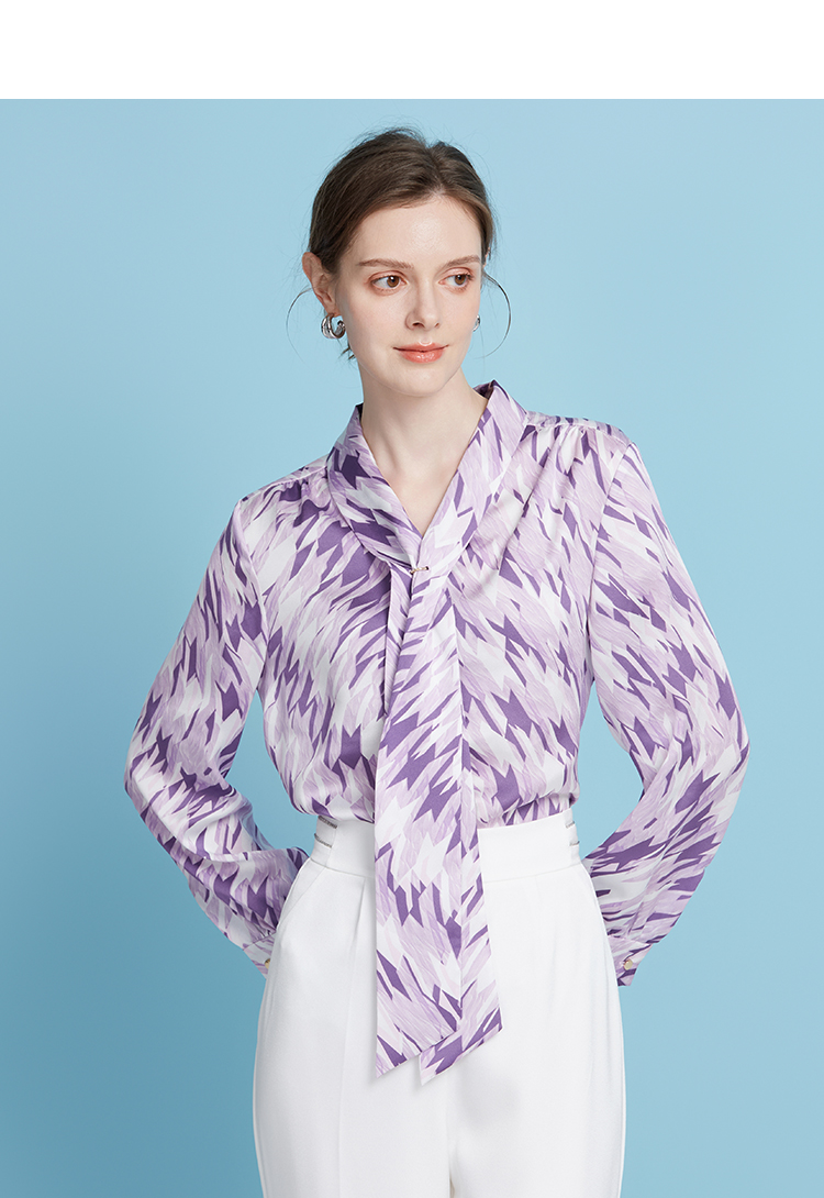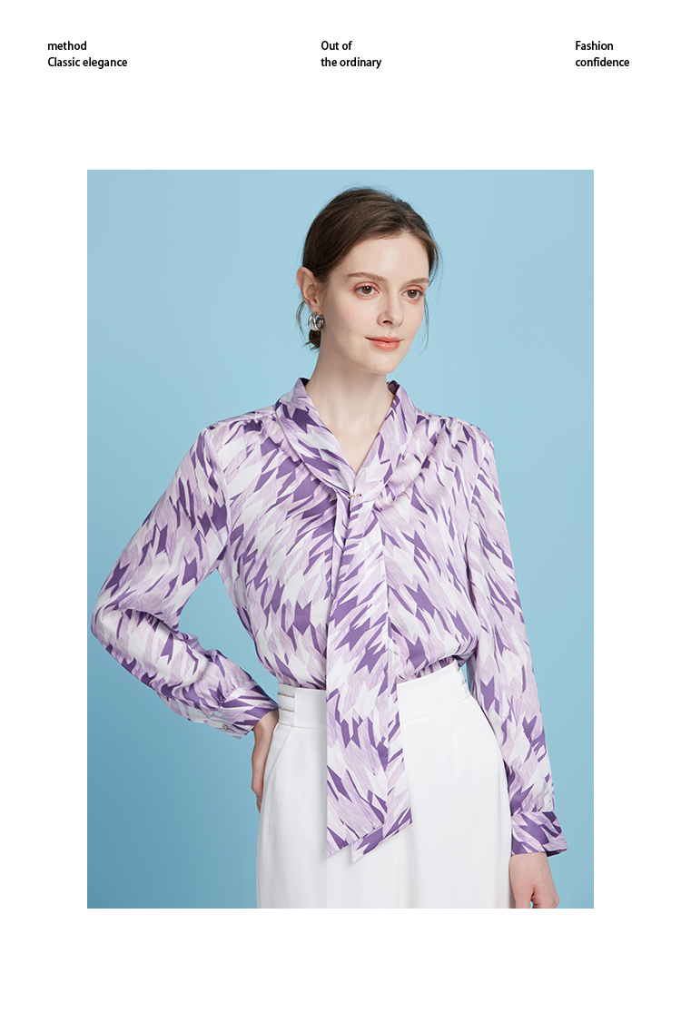EITIE爱特爱秋季新款时尚通勤印花飘带衬衫女上衣7509206