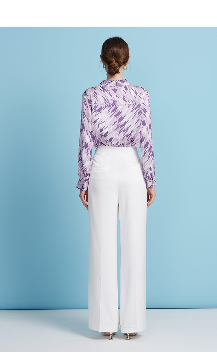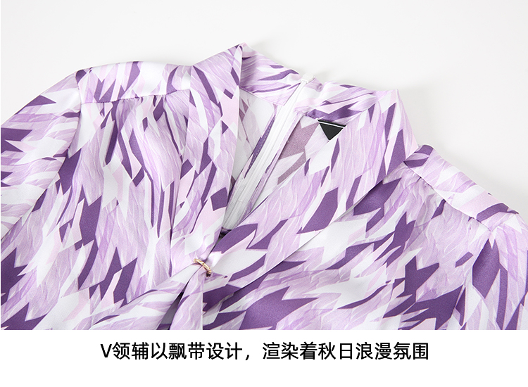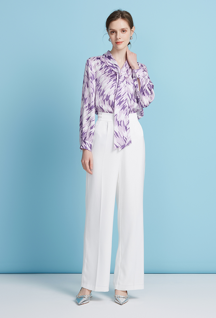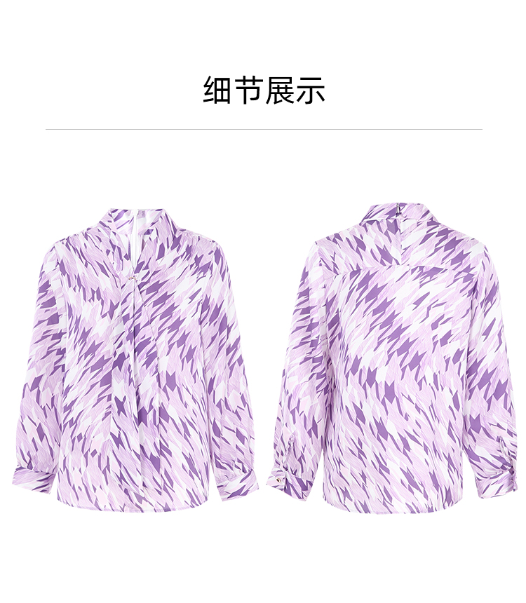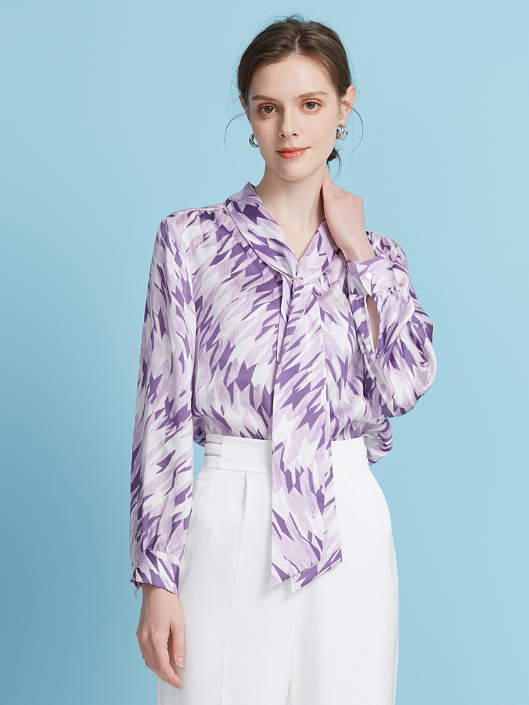 EITIE爱特爱秋季新款时尚通勤印花飘带衬衫女上衣7509206