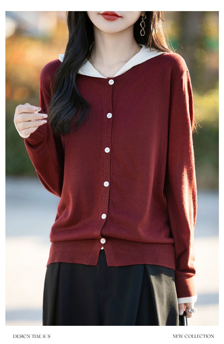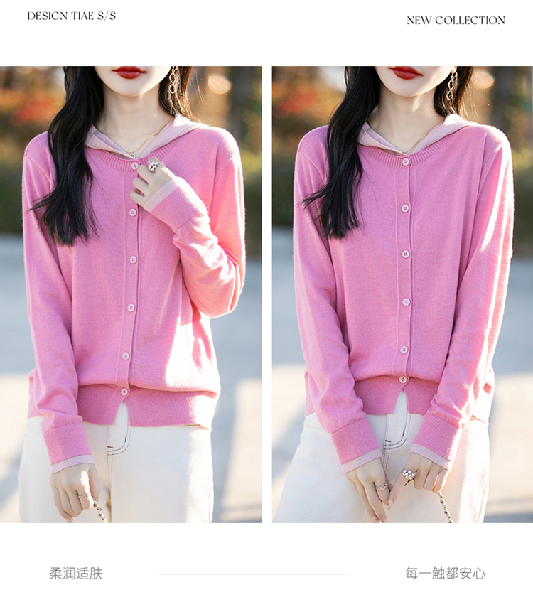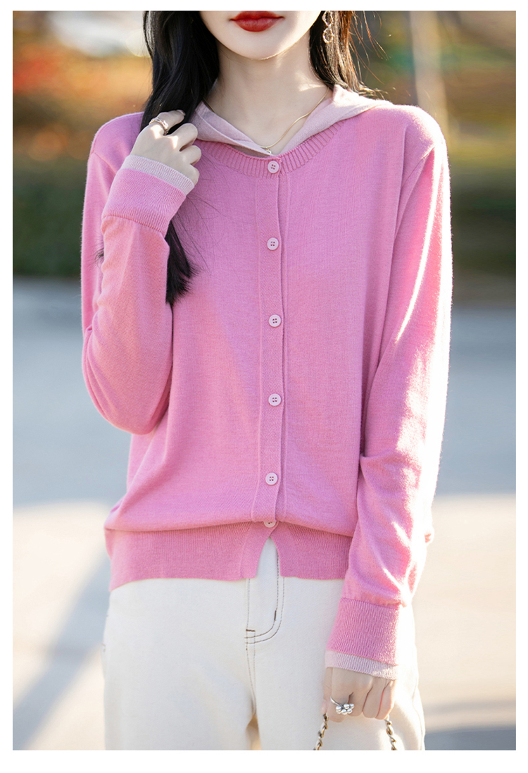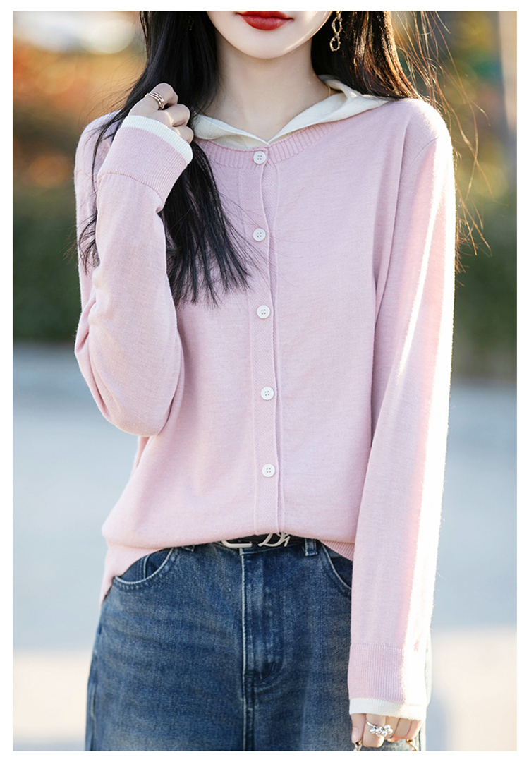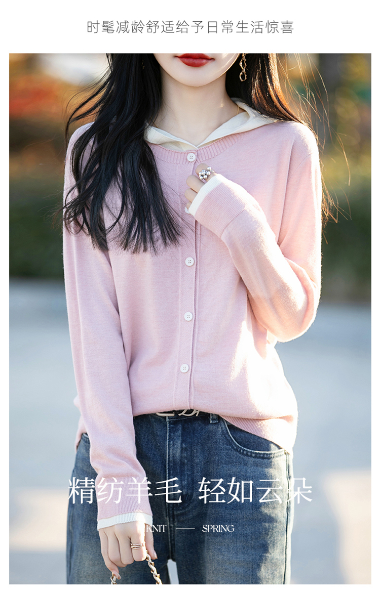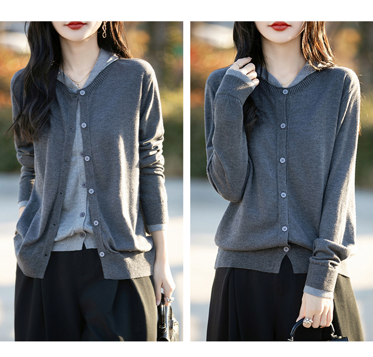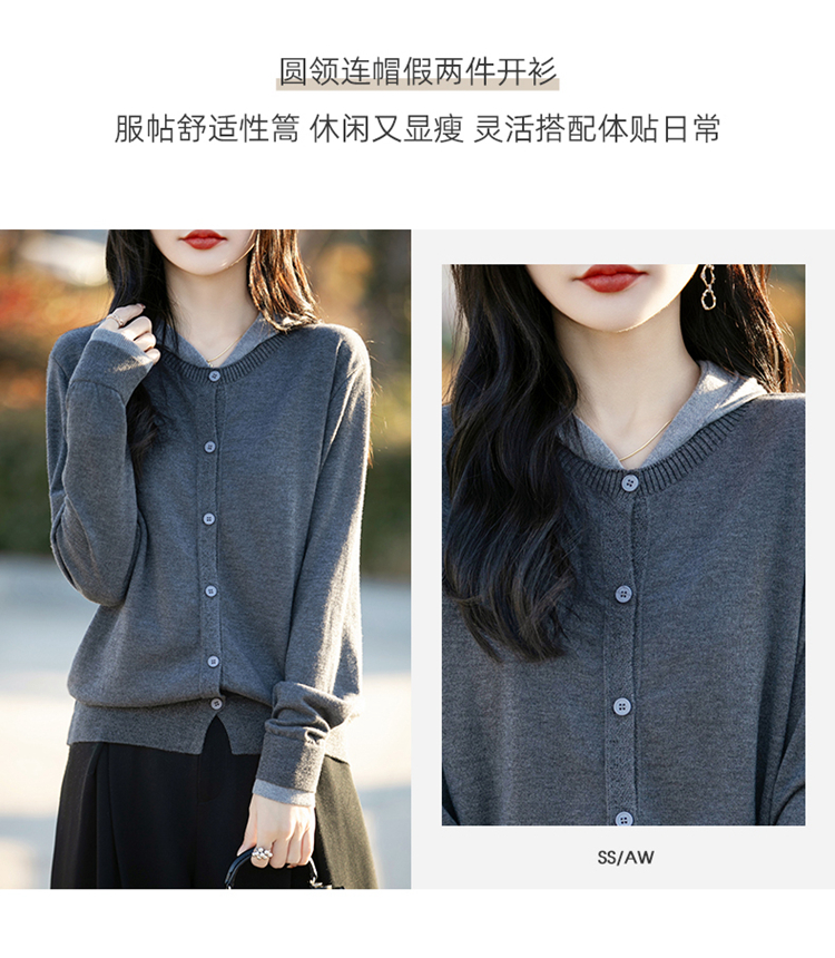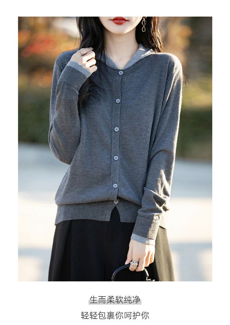 Even Vintage | 羊毛羊绒混纺 软糯温柔v领连帽套头针织毛衫