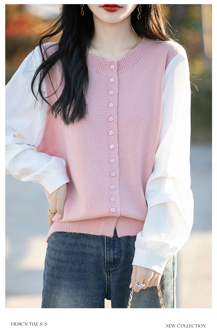 【三石专属】SimpleRetro午后微风 法式撞色假两件荡领t恤女秋设计感长袖上衣