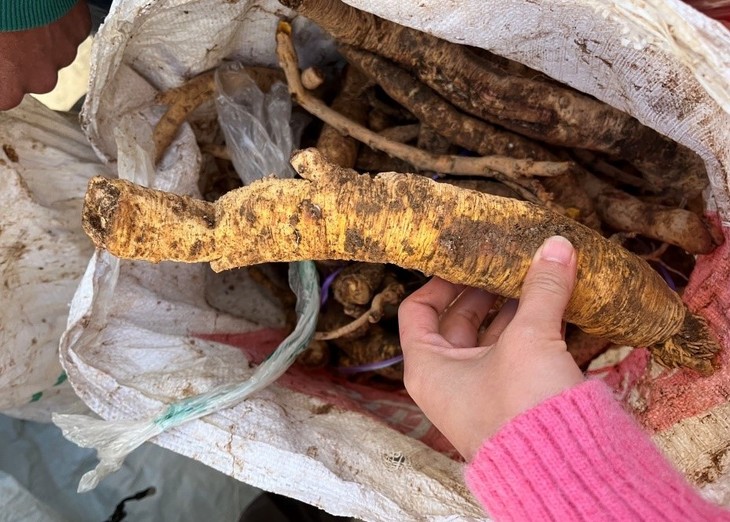 因当地偏远,药材商贸并不发达,过往极少采集,我们的野生党参是多年生,现挖的大条野党参有的比手腕还要粗。现挖的党参特大的直径达近70mm。我们的牧民朋友开玩笑说,这党参可能有的比我们的年龄大呢。这些党参和种植党参很大区别,从样子上就是“大哥大”。