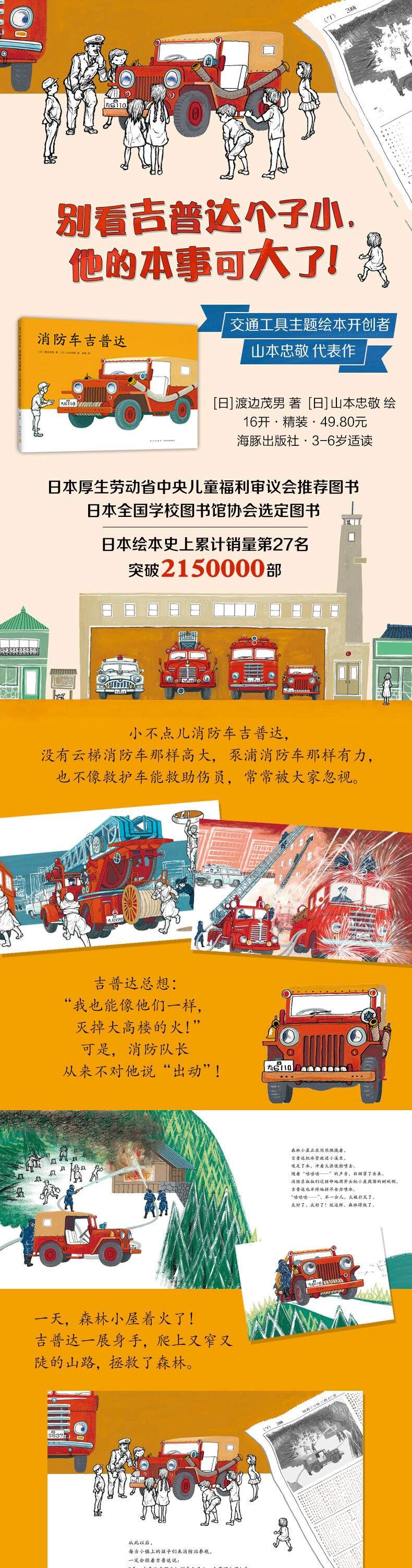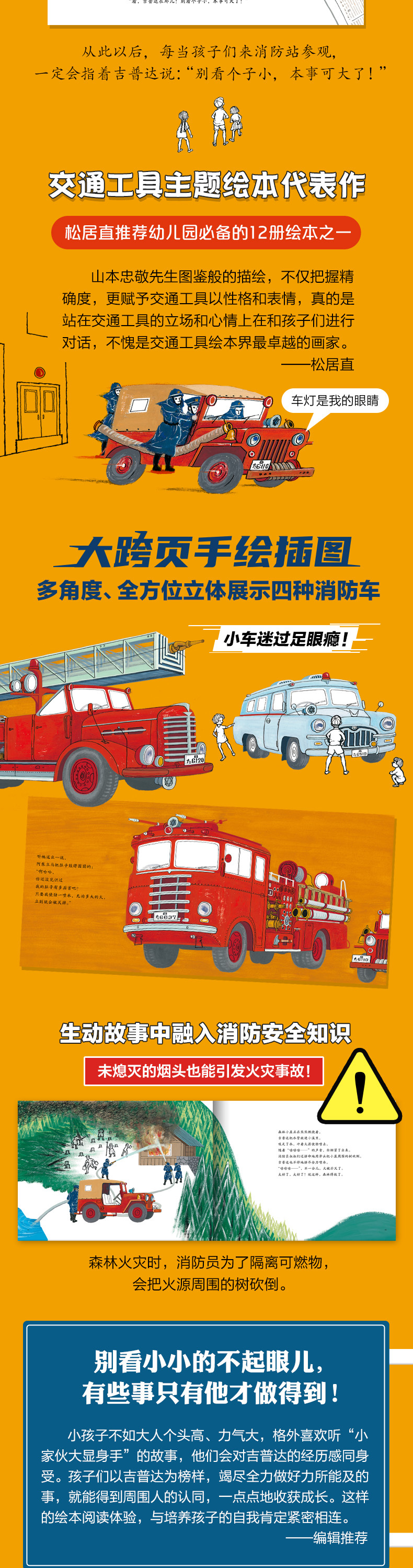 ★尺有所短,寸有所长。即使平时不怎么显眼,到关键时刻吉普达也能冷静地爬上陡峭的山路,出色地扑灭火灾,将自己与吉普达的身影重叠的孩子应该很多吧!——日本Amazon网站介绍 by小山由絵
