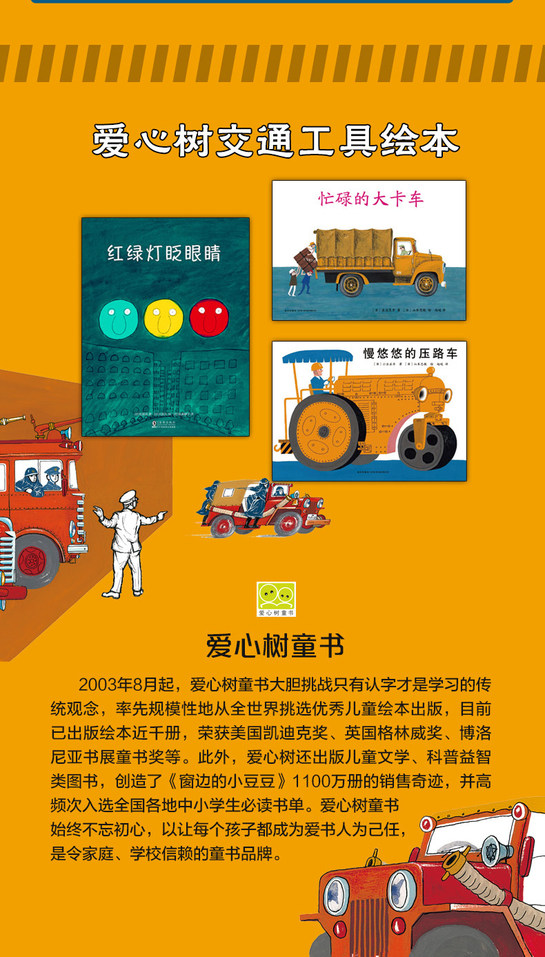 山本忠敬:日本著·名绘本画家,日本交通工具类主题绘本开创者。1916年出生于东京,毕业于东京艺术大学。曾在横滨电影公司参与漫画电影制作,之后常以交通工具为主题创作绘本。代表作有《忙碌的大卡车》《消防车吉普达》《慢悠悠的压路车》等。