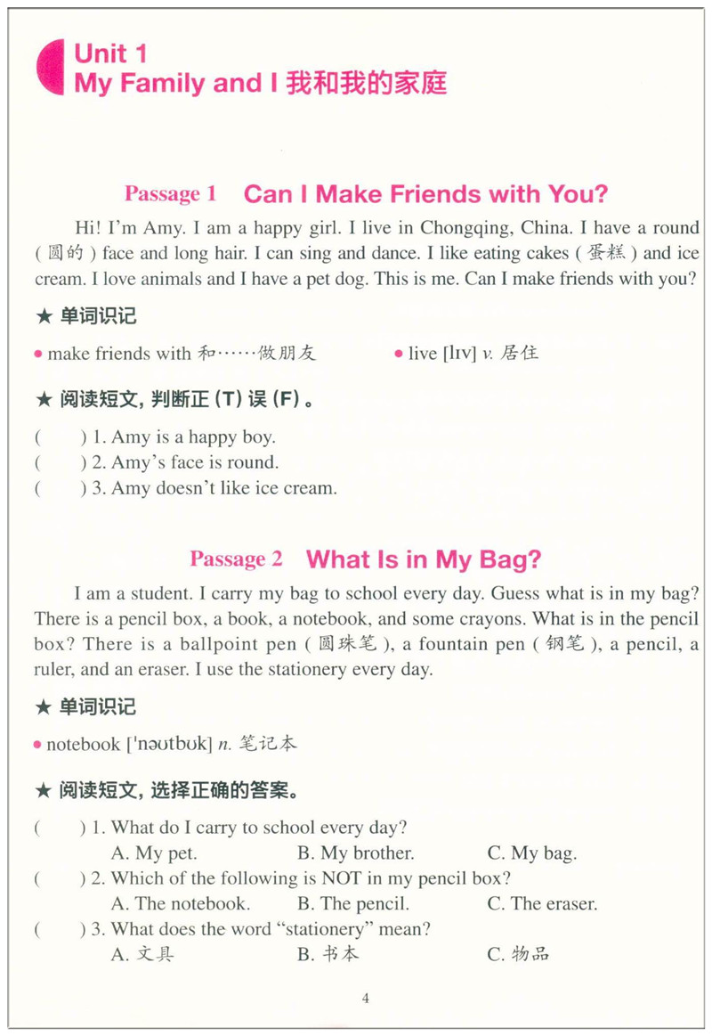 小学英语阅读训练100篇3年级】(三年级起点)英语阅读理解专项训练