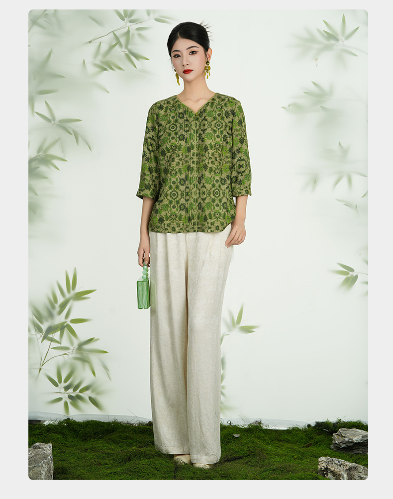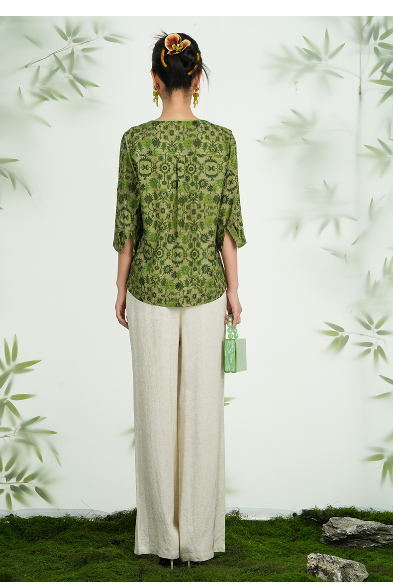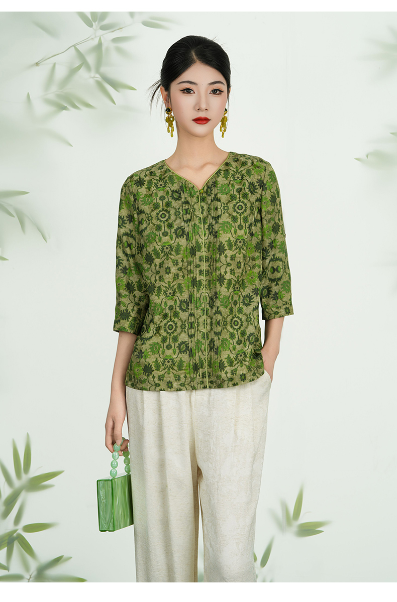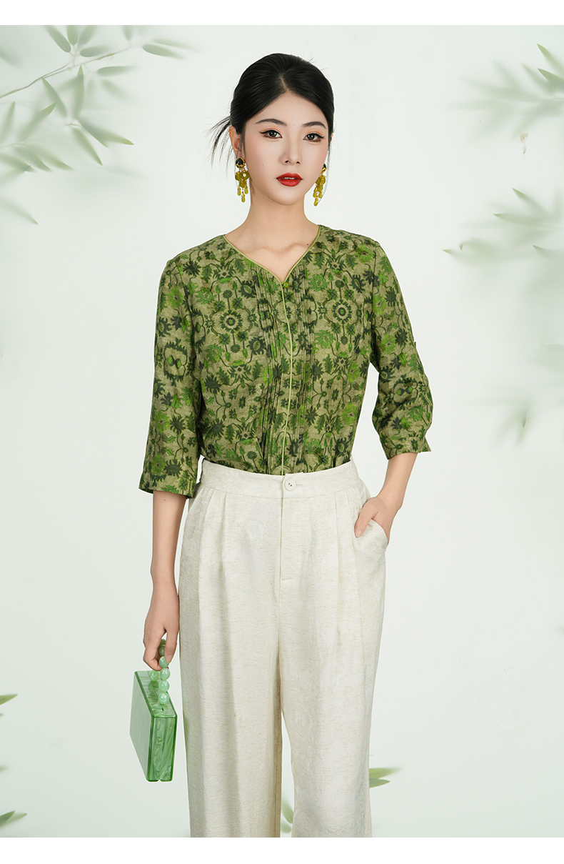 乔万尼新品真丝丝绵绸印花V领衬衫上衣ED2C483