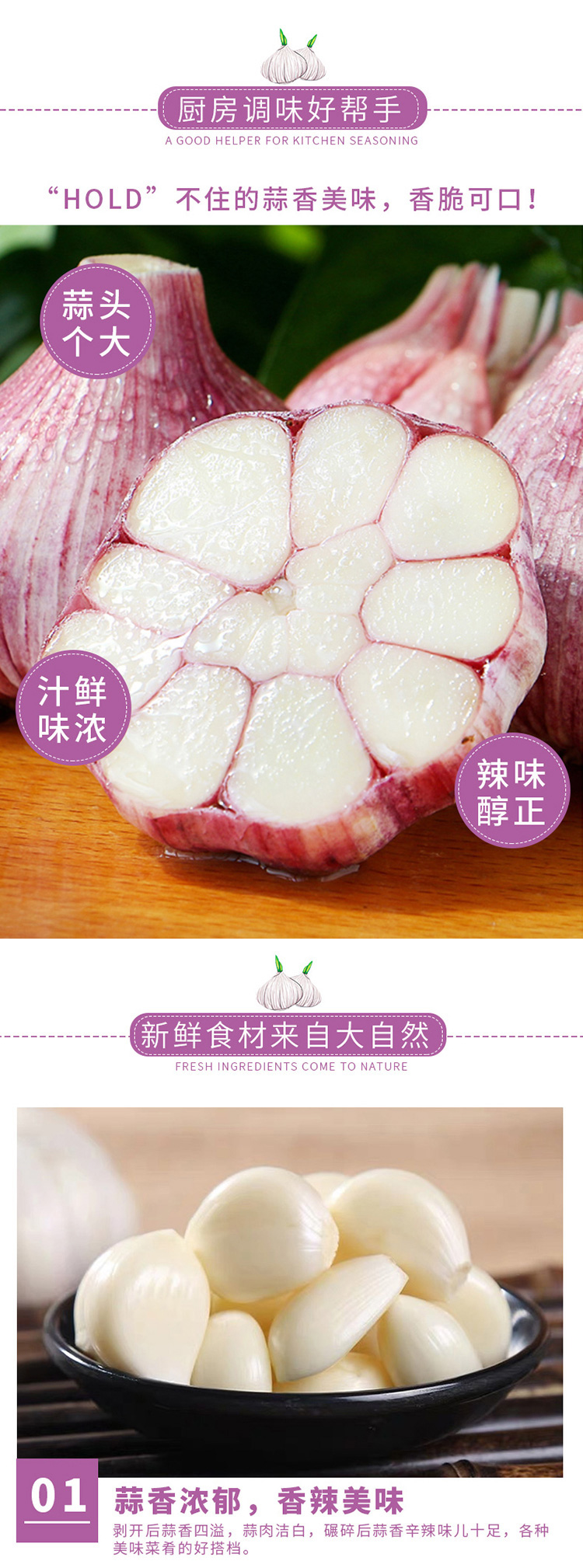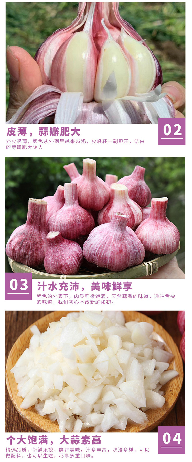 【温馨提示】大蒜在发货之前,会提前3-4天进行晾晒,不晾晒的大蒜发货,运输中很容易捂坏发霉,故收到大蒜,外皮会比较干是正常现象。都是新年的新蒜。