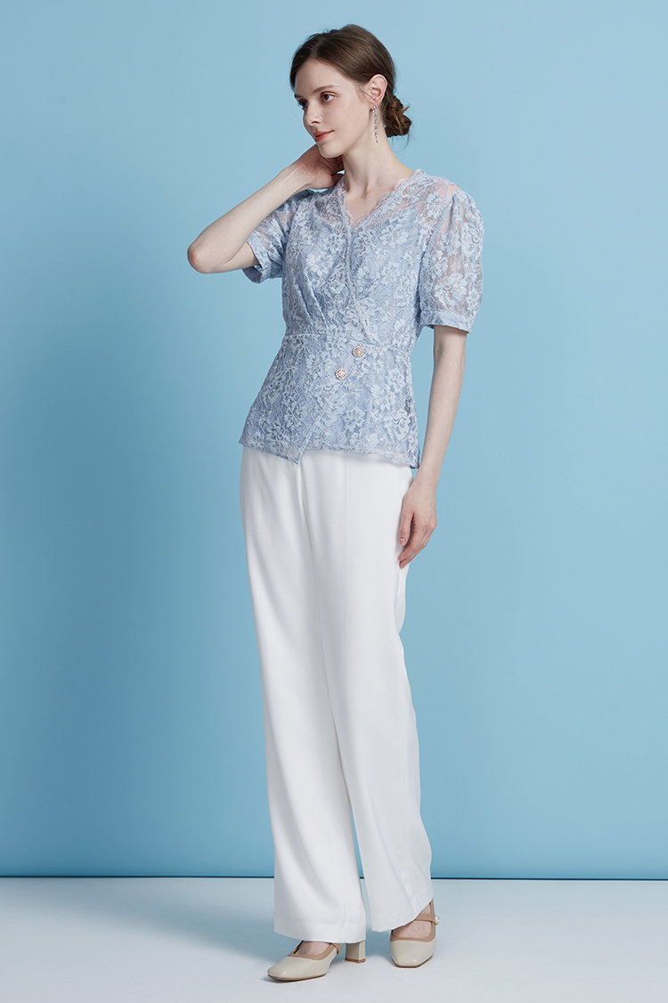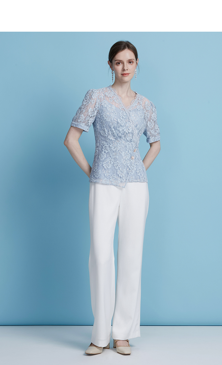 EITIE爱特爱女装夏季V领挂脖镂空时尚喇叭袖雪纺衫小上衣5913610