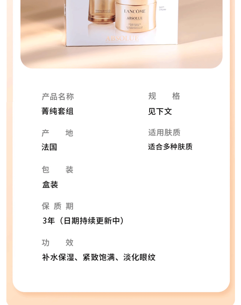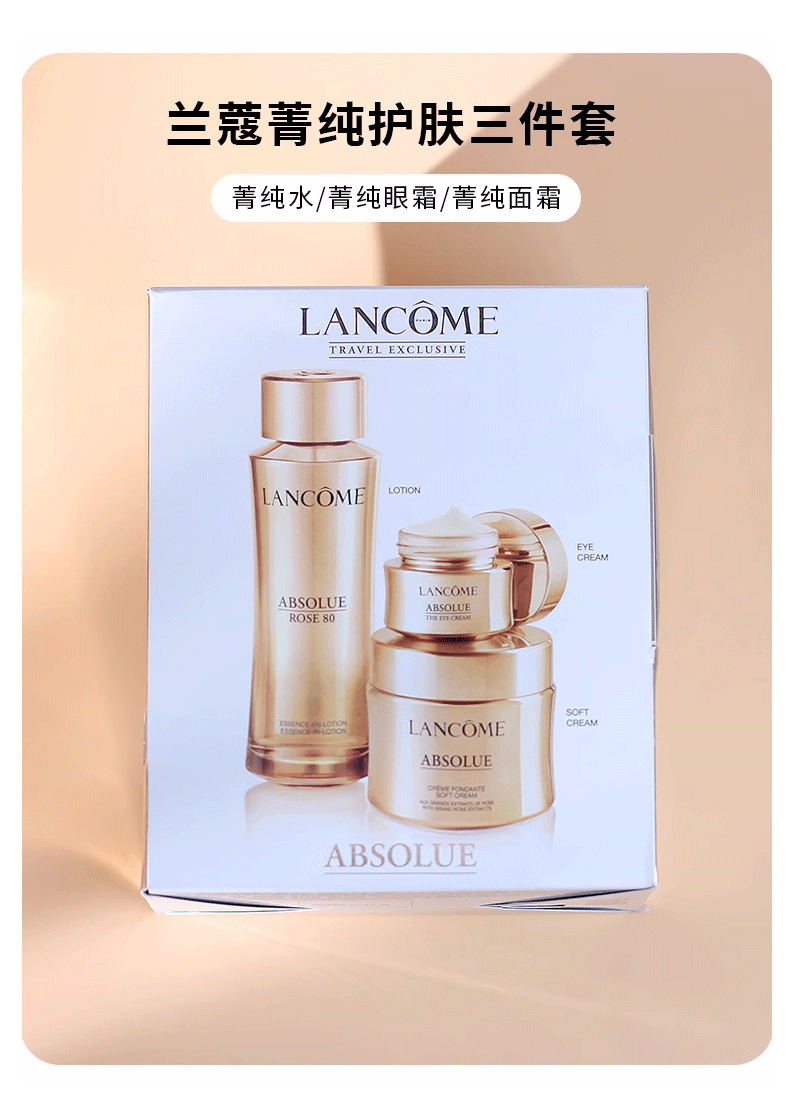 【双12下单赠送礼袋】兰蔻菁纯新版三件套(新版菁纯玫瑰水150ml+菁纯面霜60ml+新版菁纯眼霜20ml)