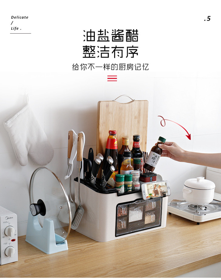 [春艺]多功能厨房收纳架 调味瓶调味料储物架 筷子收纳组合刀五格置物架- M仓