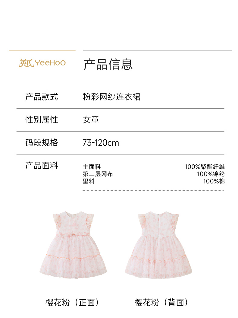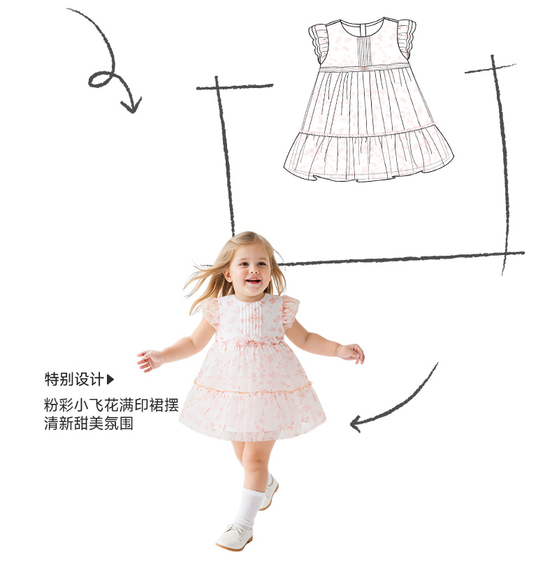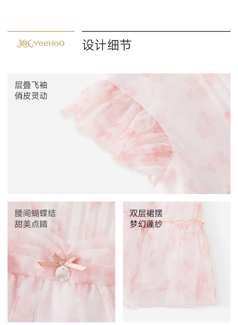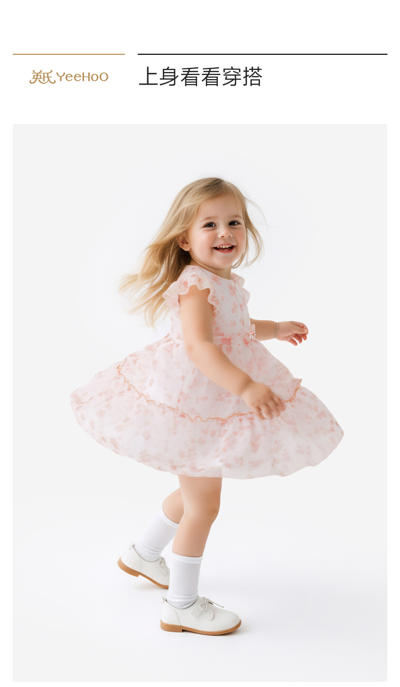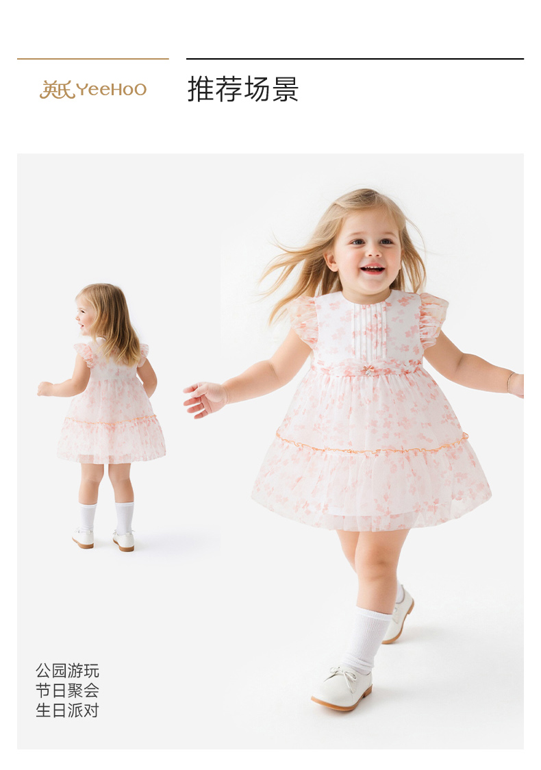 英氏女童裙子夏季小女孩公主裙休闲甜美女生碎花裙女宝宝连衣裙