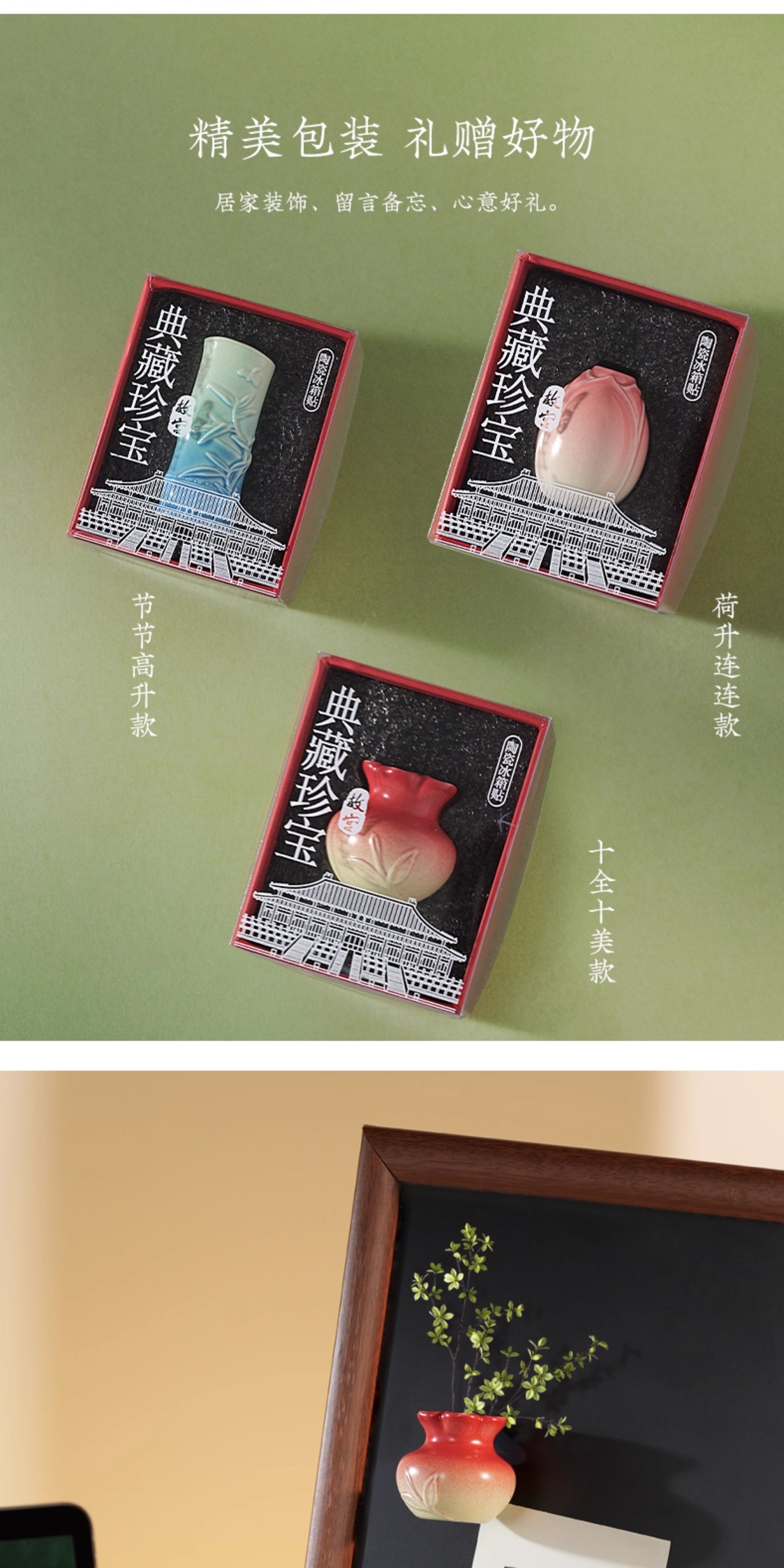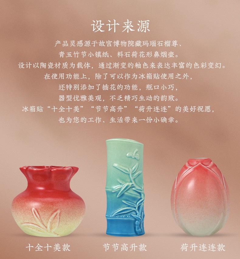 典藏珍宝陶瓷冰箱贴 十全十美 节节高升 荷升连连