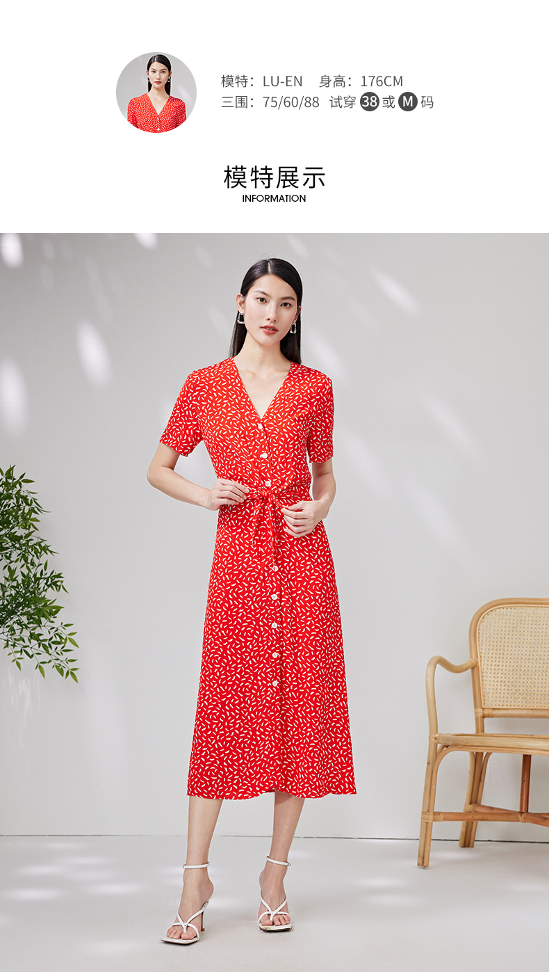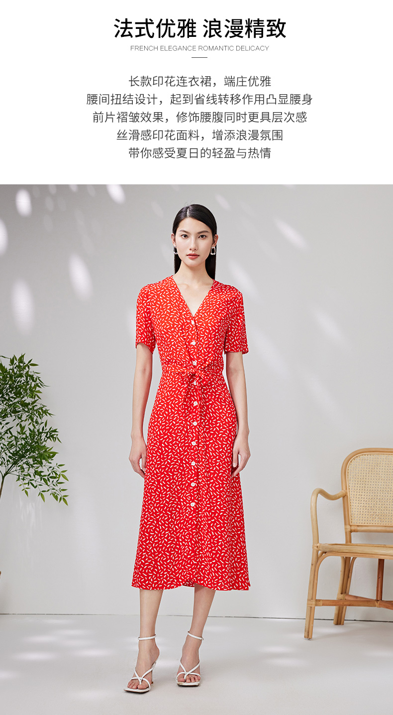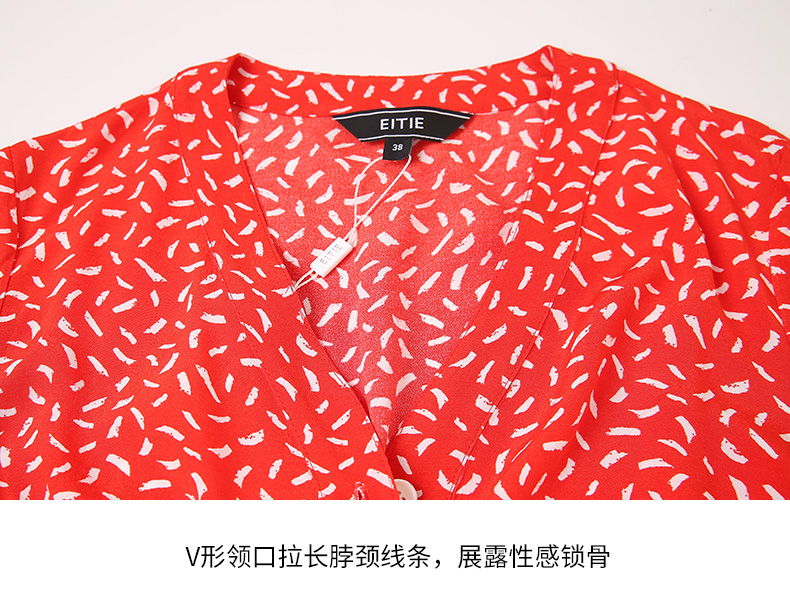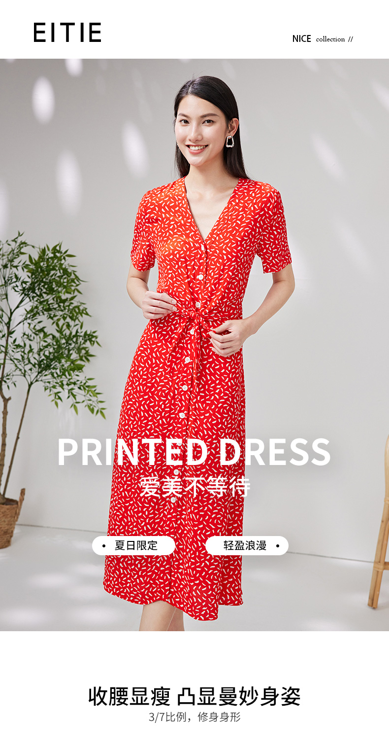 EITIE爱特爱夏季新款气质印花V领销售收腰连衣裙7007744