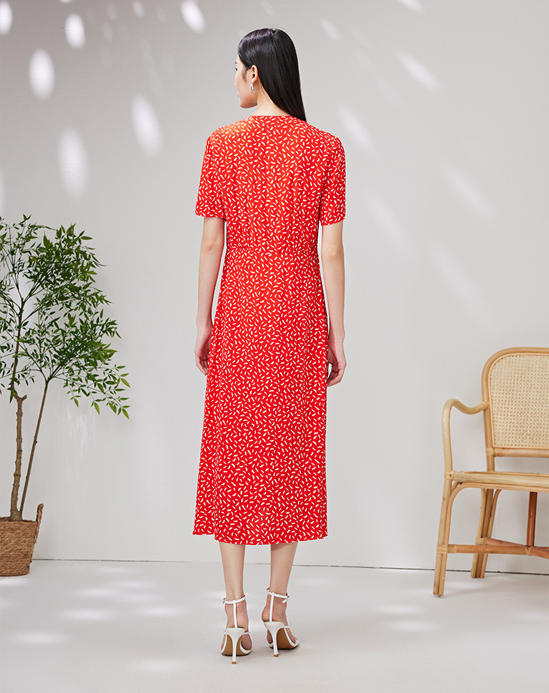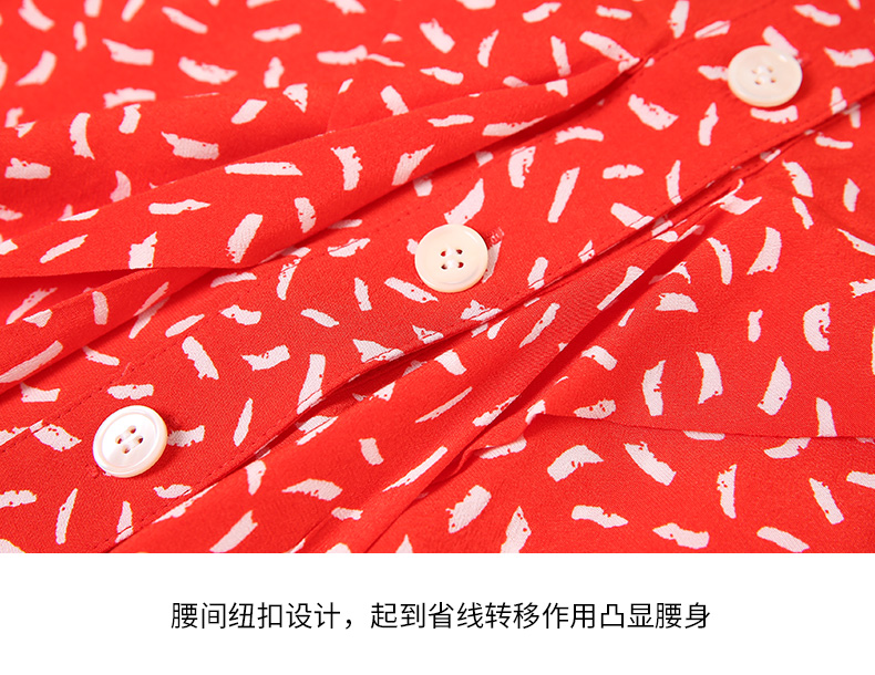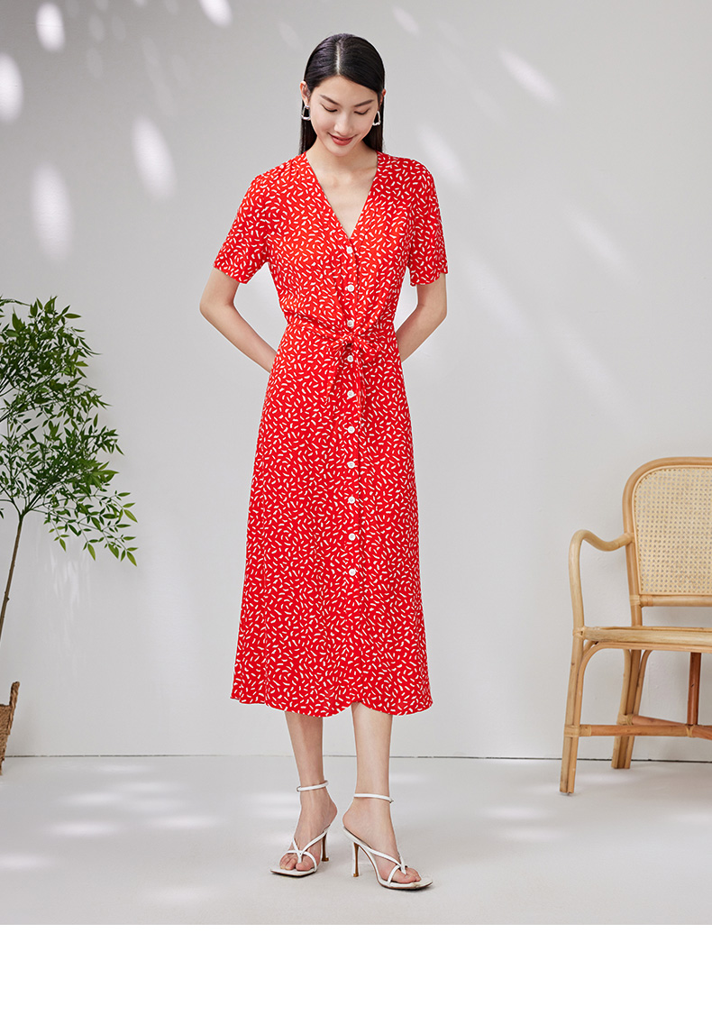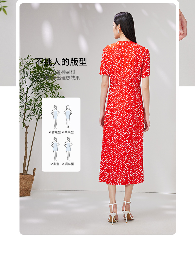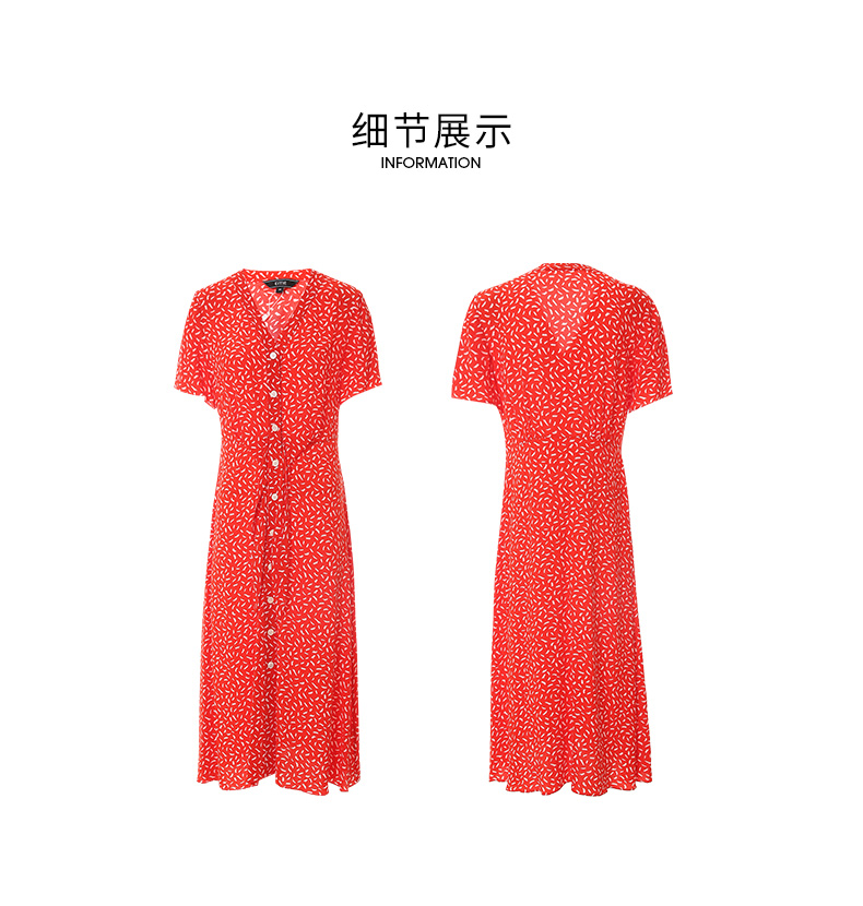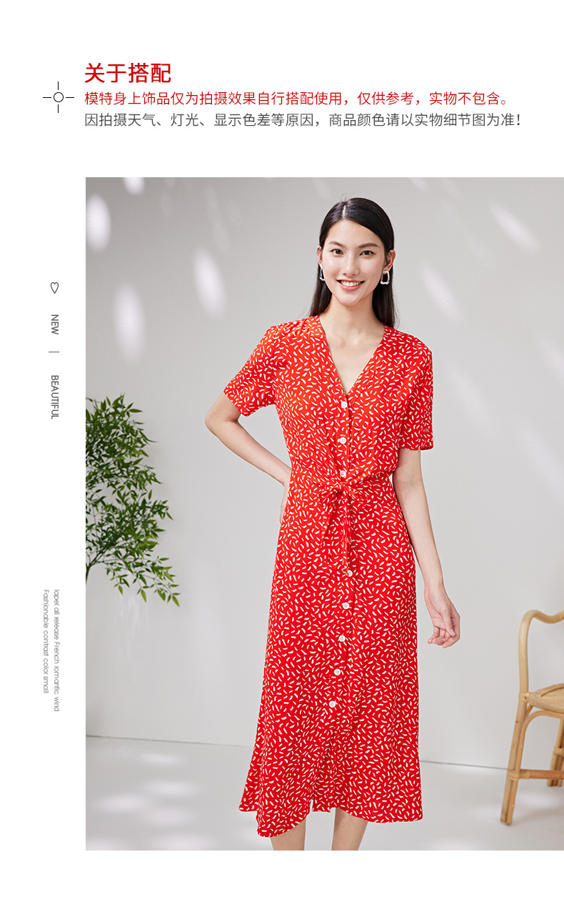EITIE爱特爱夏季新款气质印花V领销售收腰连衣裙7007744