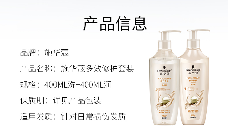 施华蔻多效修护洗发600ml+护发400ml