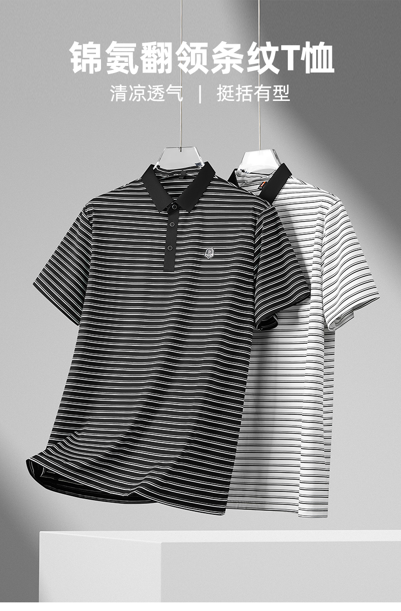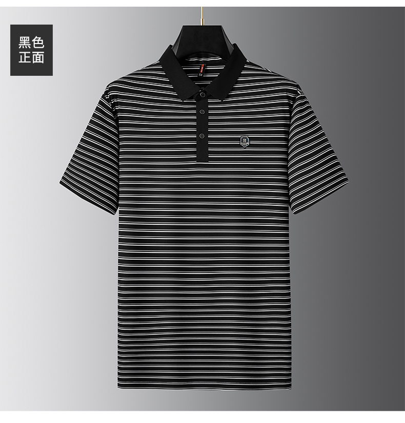 【冰丝高弹】【新款DWN】大依优型大码条纹短袖Polo衫翻领加肥加大男装大号大码上衣男士休闲半袖夏季