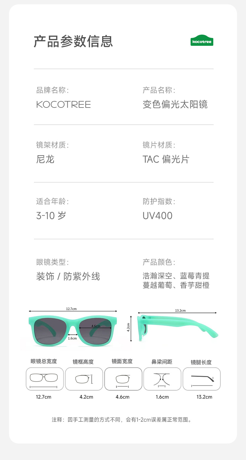 KK树变色儿童墨镜男童女童防紫外线宝宝偏光时尚太阳镜男孩女孩