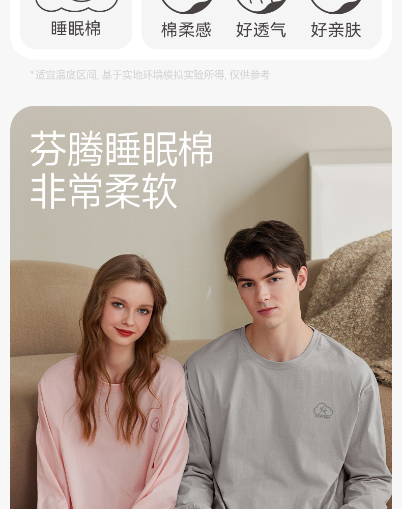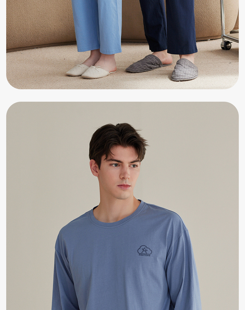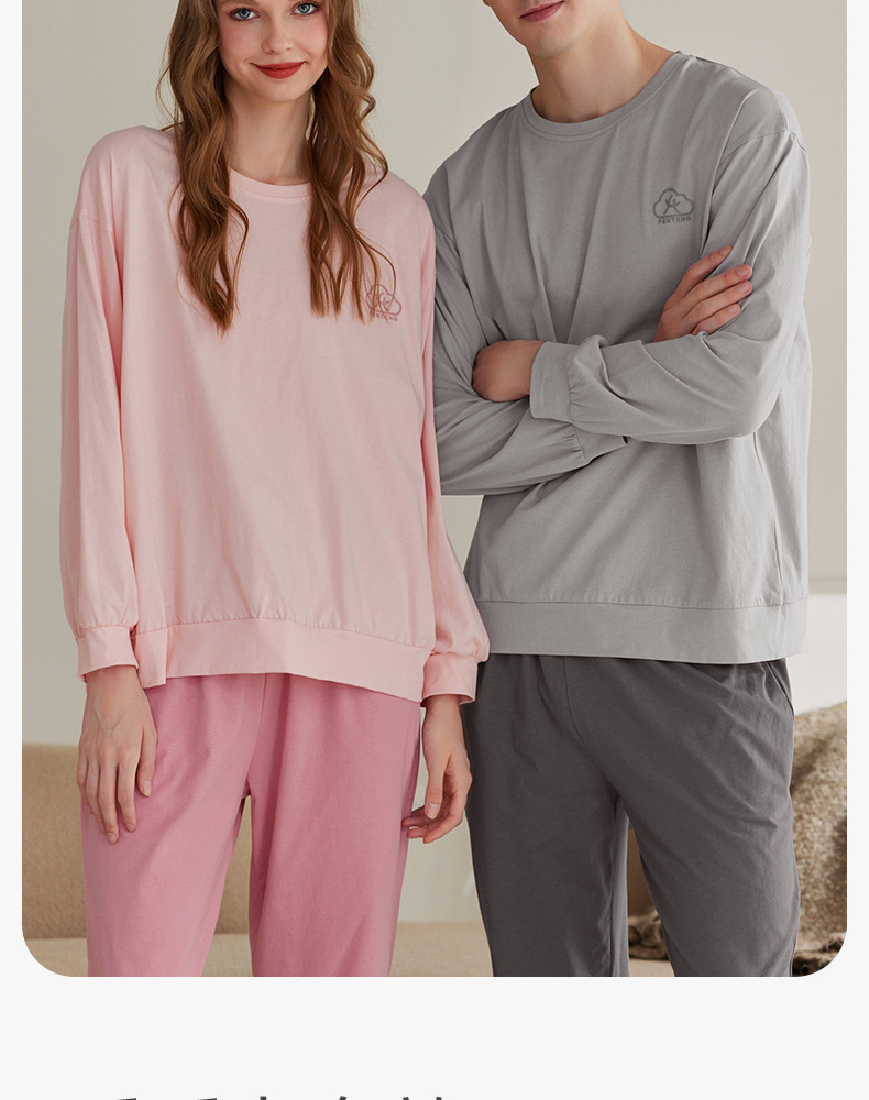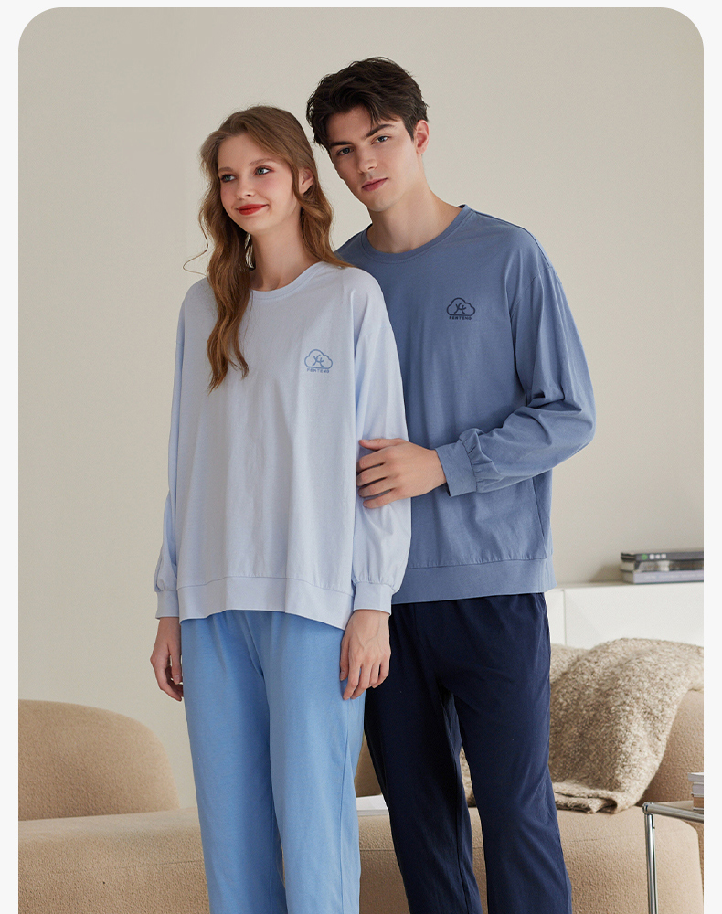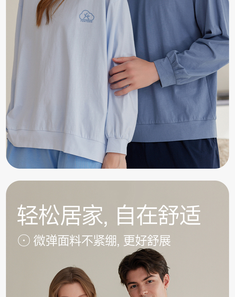 芬腾情侣睡衣女纯棉长袖圆领宽松青年男士家居服套装