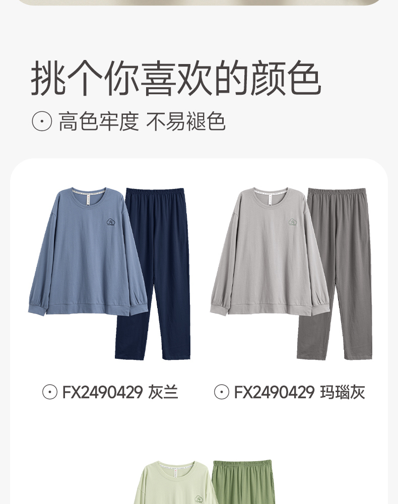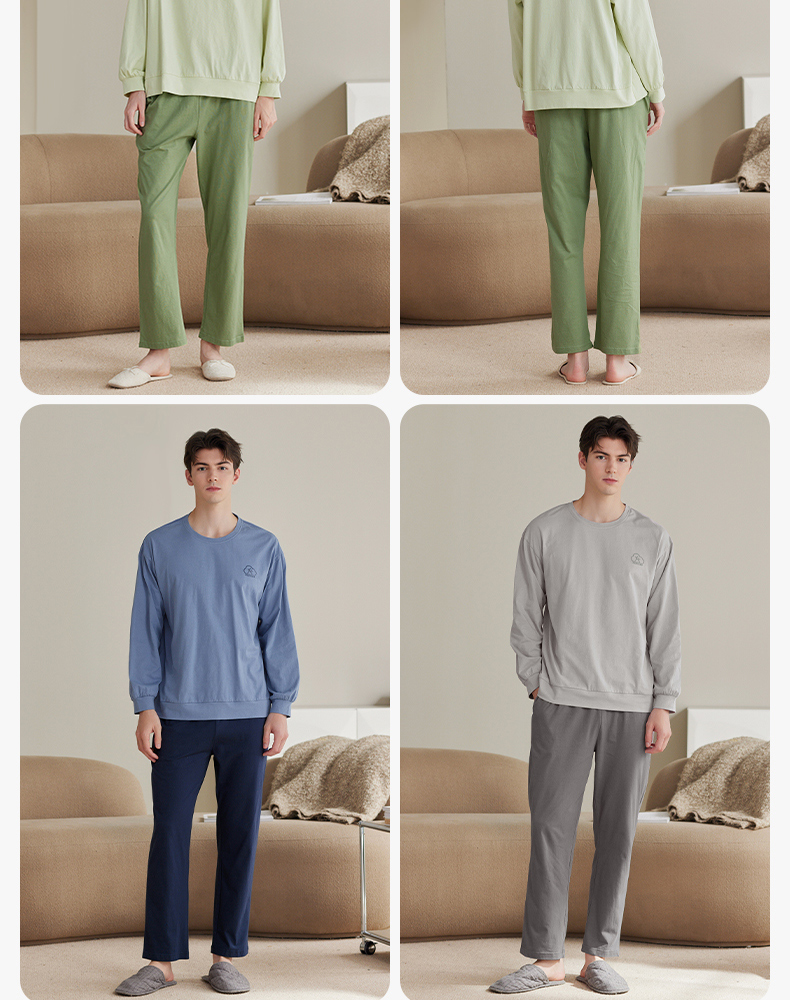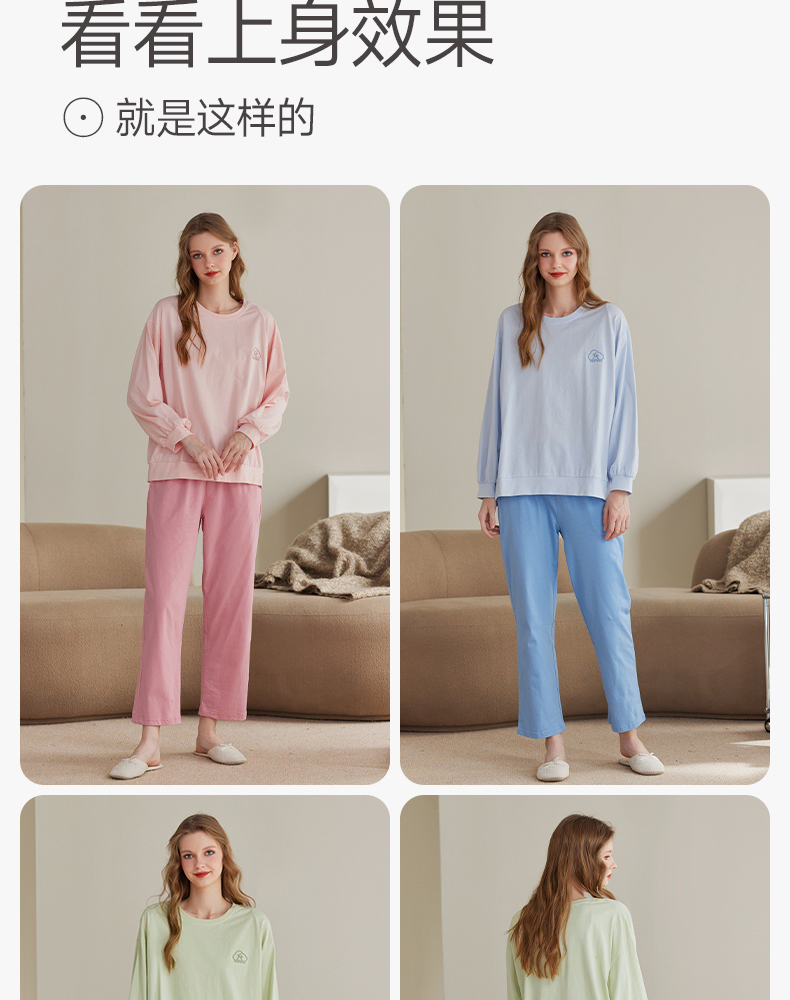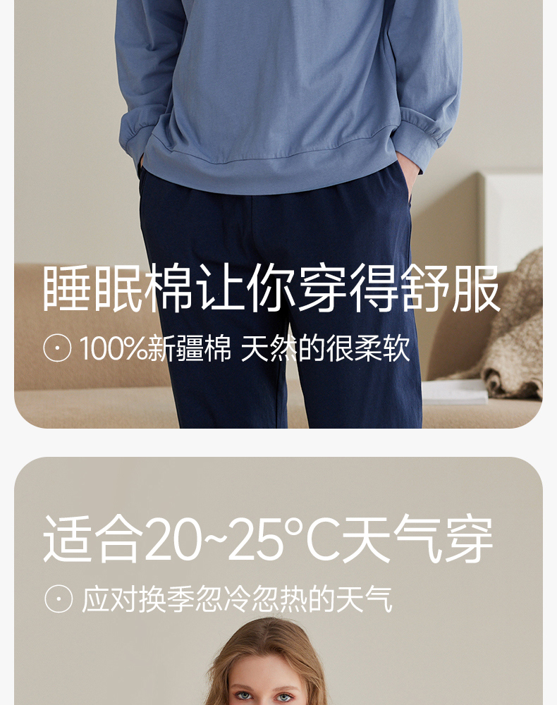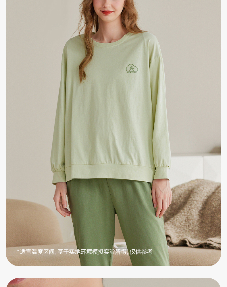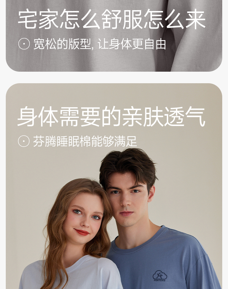 芬腾情侣睡衣女纯棉长袖圆领宽松青年男士家居服套装
