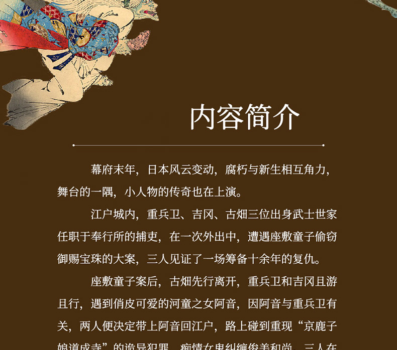 江户城内,重兵卫、吉冈、古畑三位出身武士世家任职于奉行所的捕吏,在一次外出中,遭遇座敷童子偷窃御赐宝珠的大案,三人见证了一场筹备十余年的复仇。