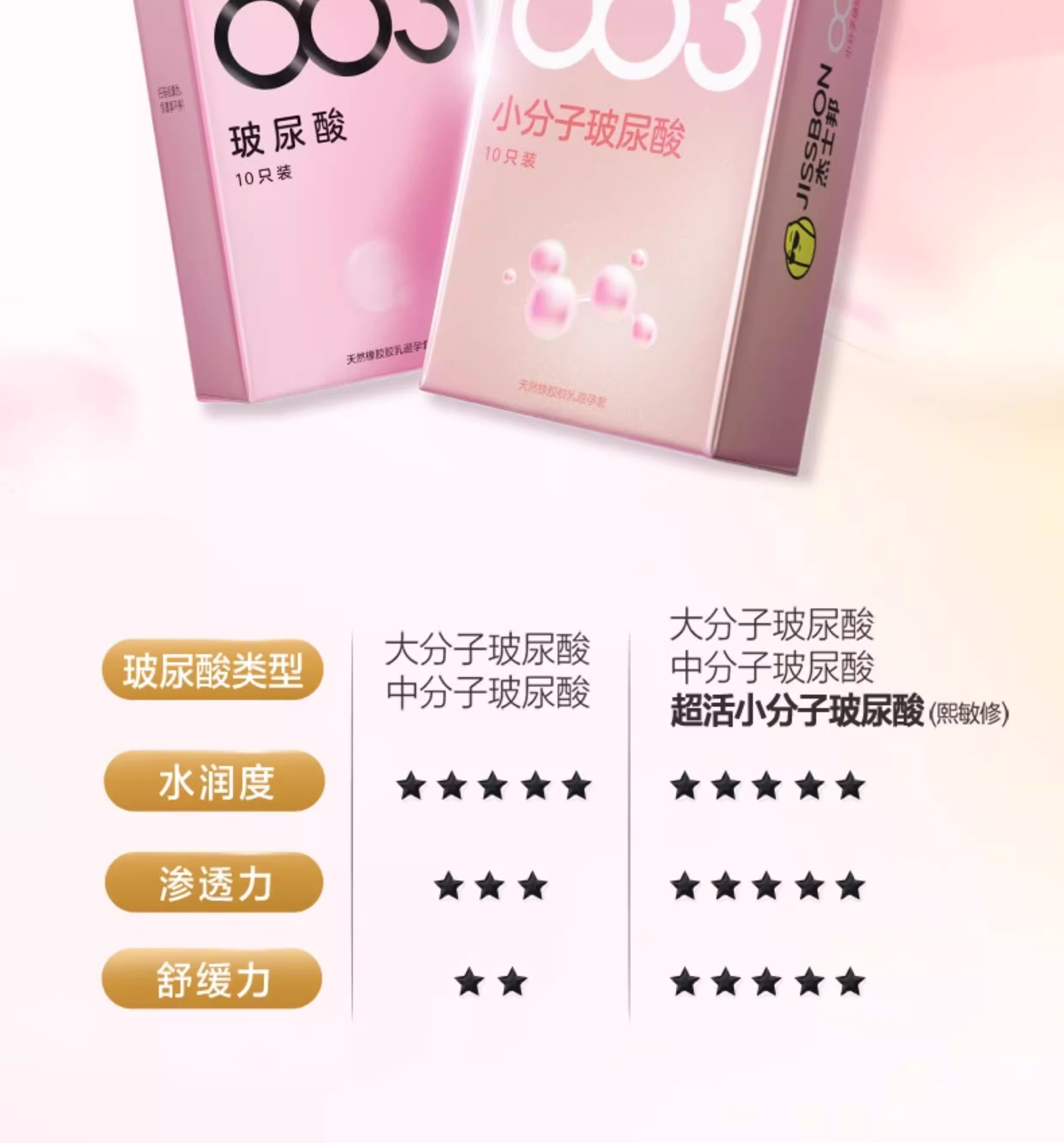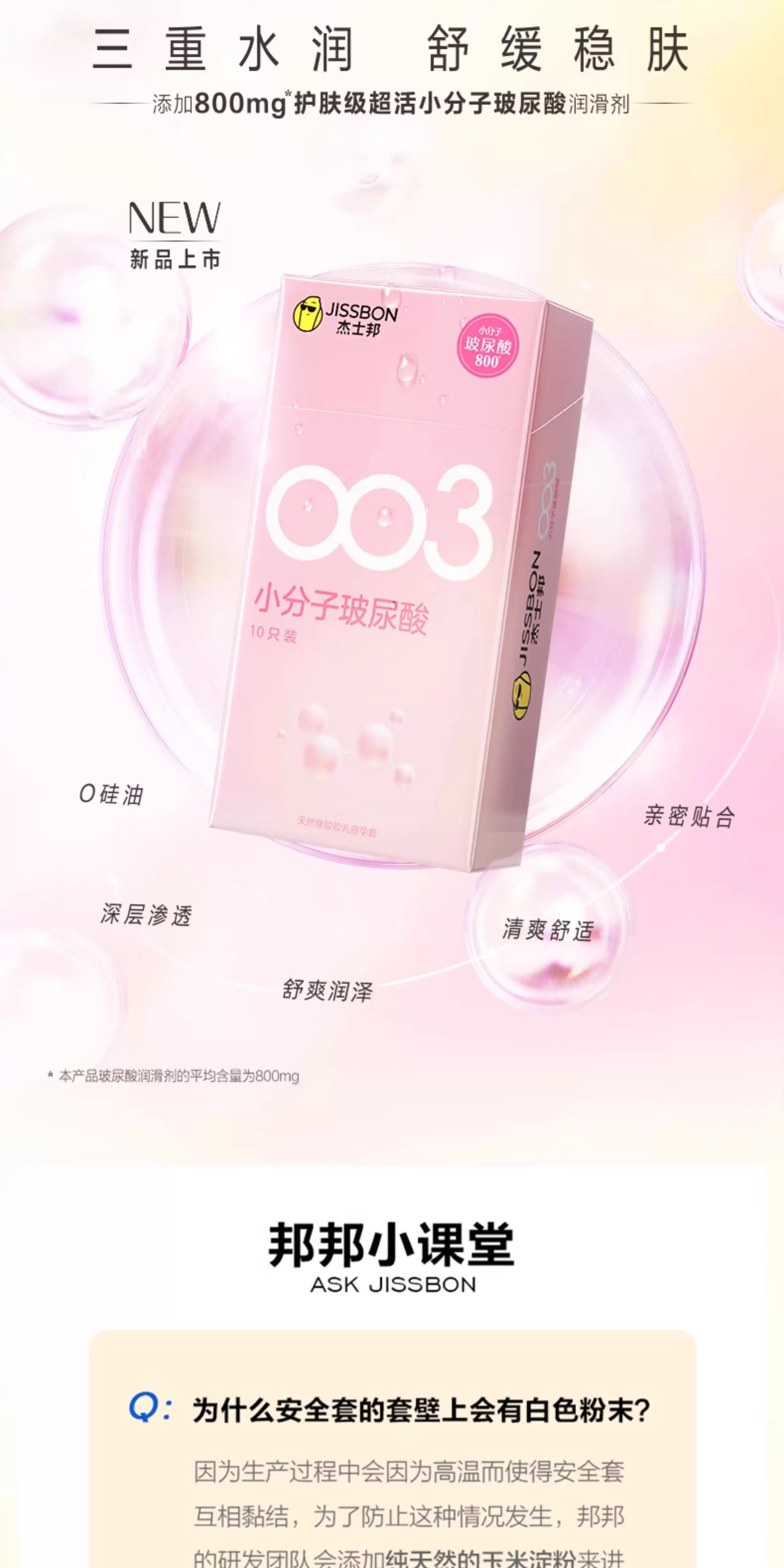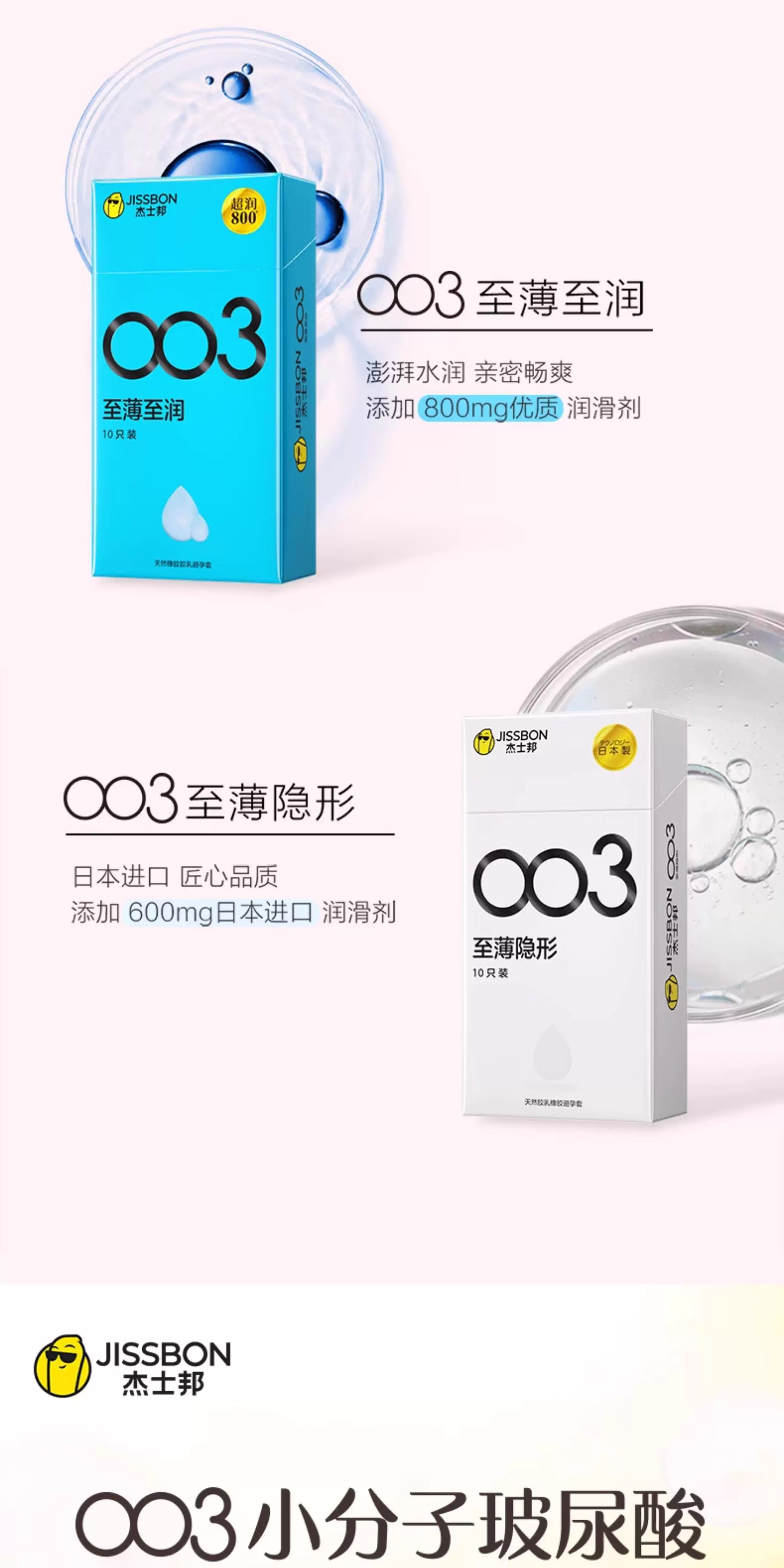 【年末亏本清仓】杰士邦003小分子玻尿酸避孕安全套 3只装/6只装/10只装