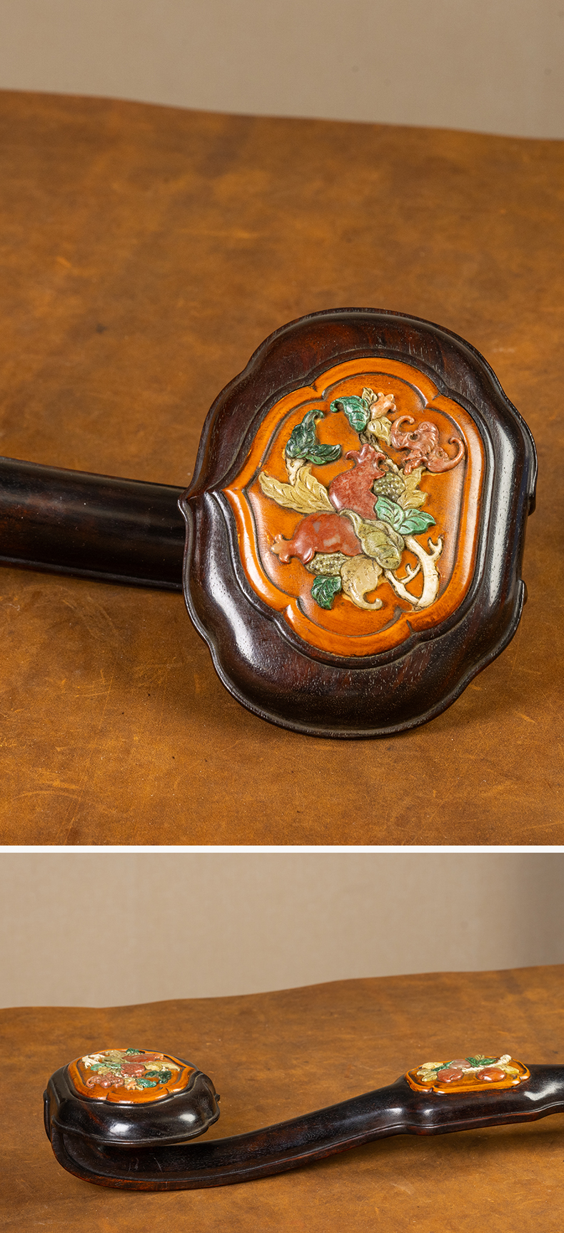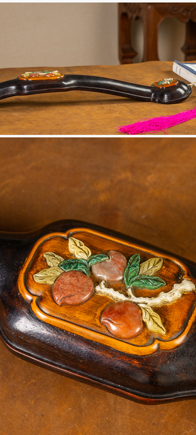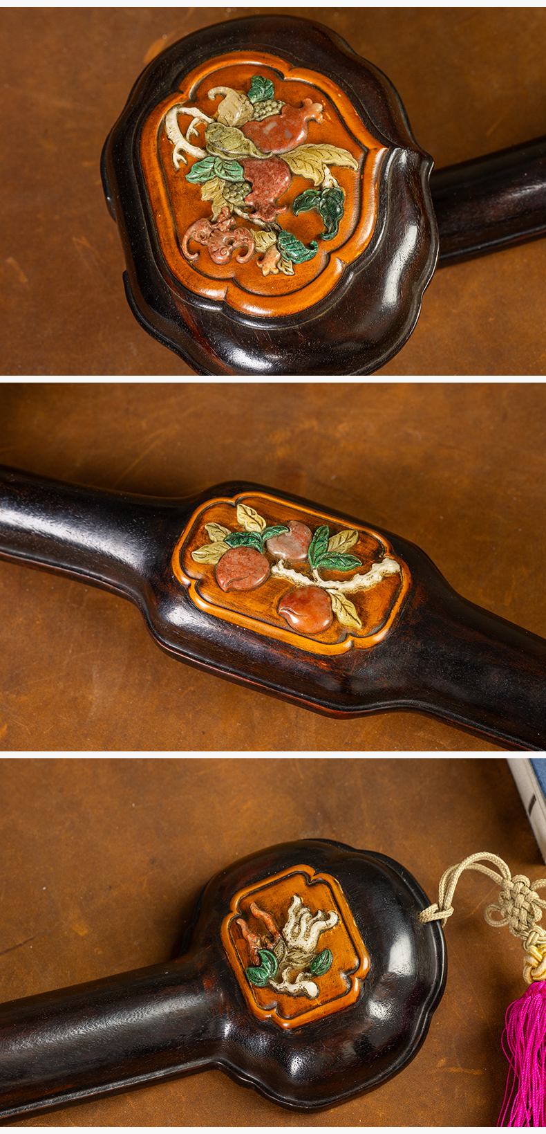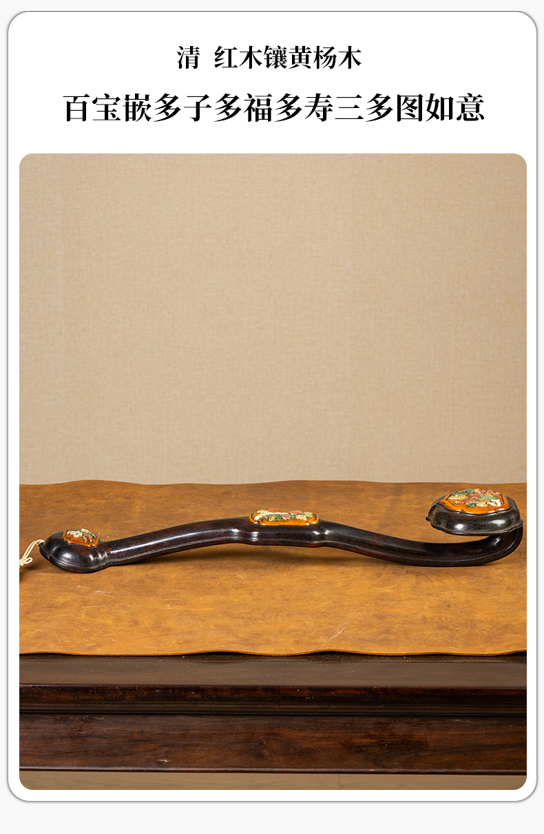 清 红木镶黄杨木百宝嵌多子多福多寿三多图如意