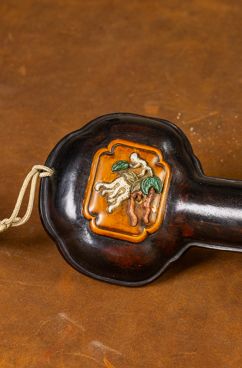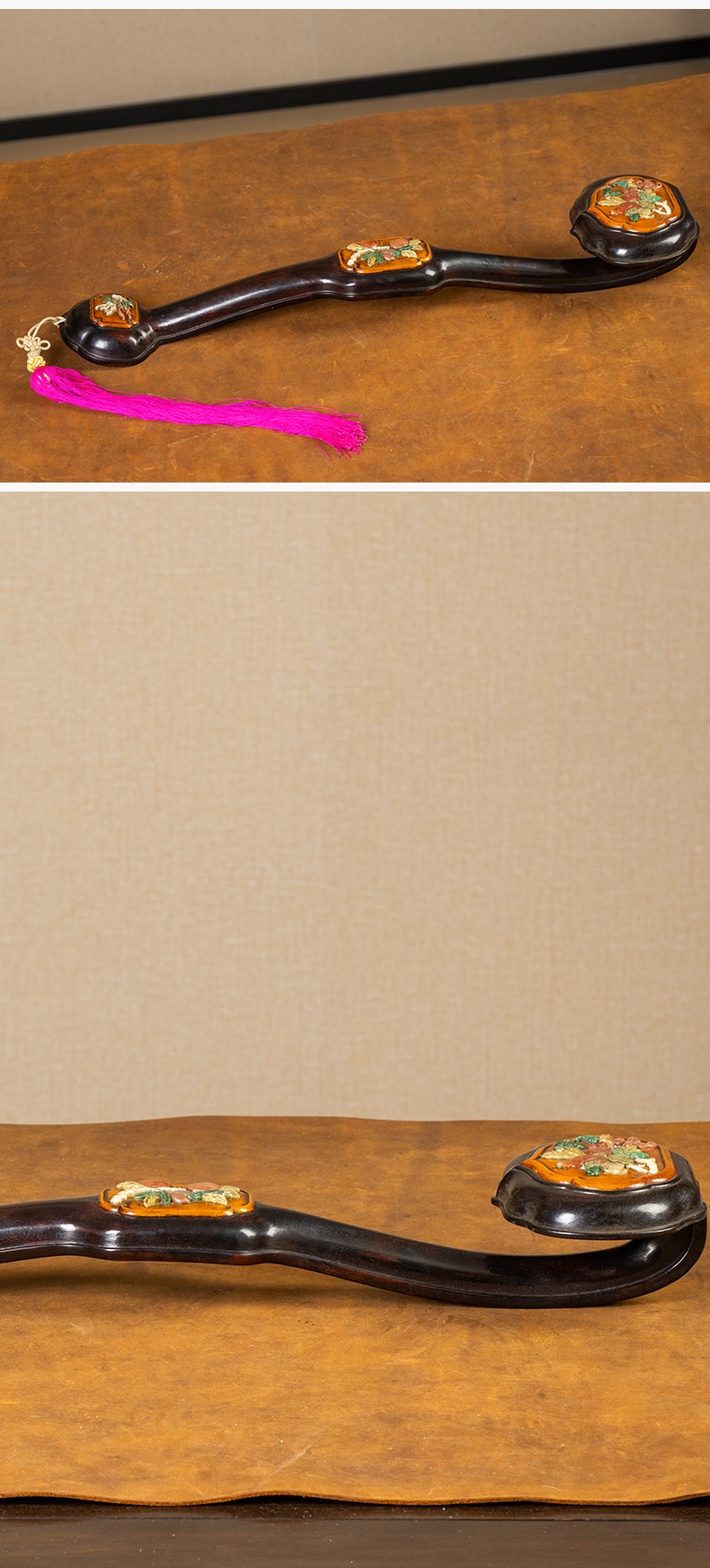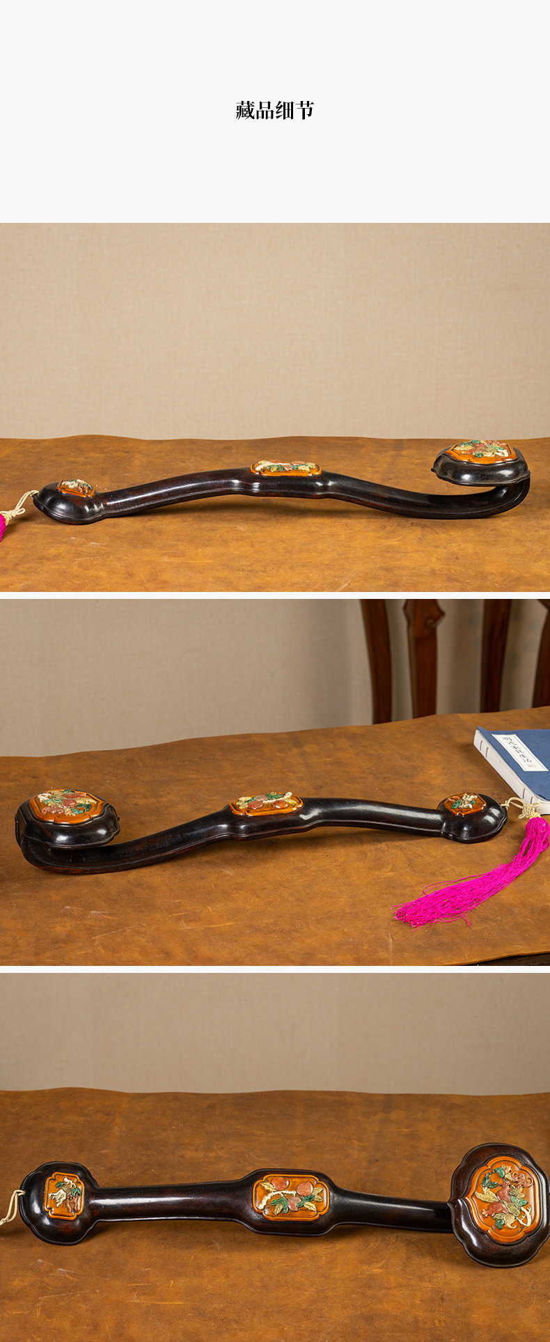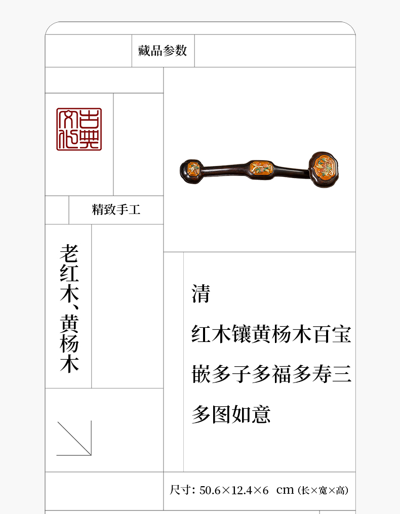 清 红木镶黄杨木百宝嵌多子多福多寿三多图如意