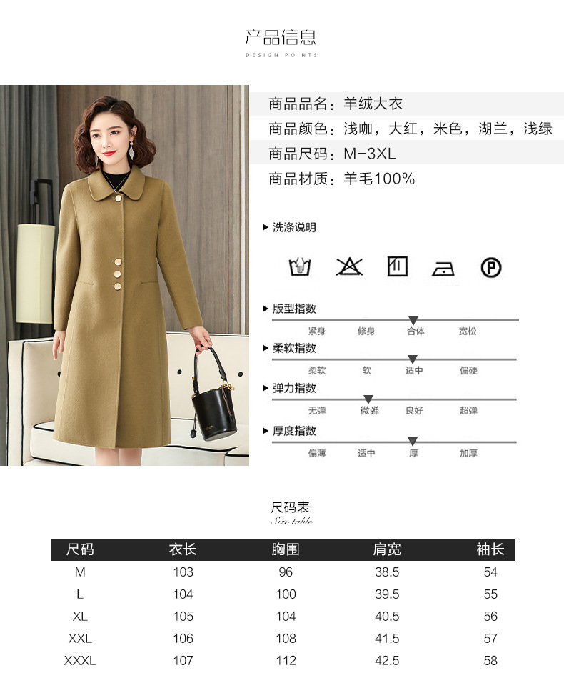 上海旗袍厂KQ-838020双面羊绒大衣女中长款2020秋冬新款时尚气质娃娃领双面呢羊毛外套