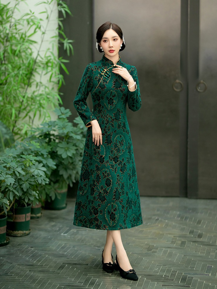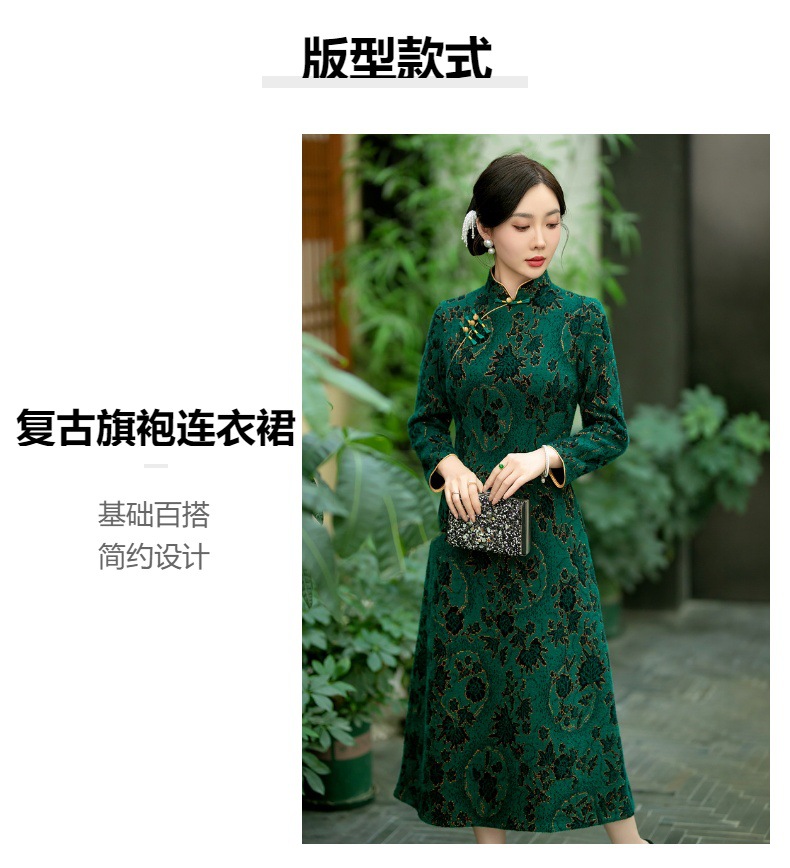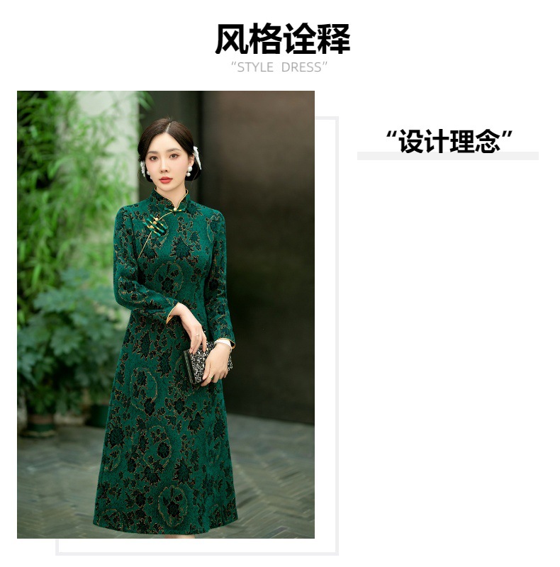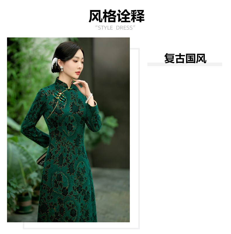 SYG-737旗袍冬款加厚水貂绒长款时尚显瘦复古高档连衣裙