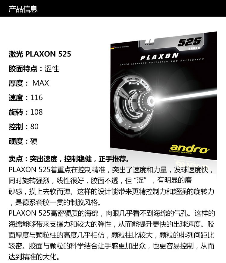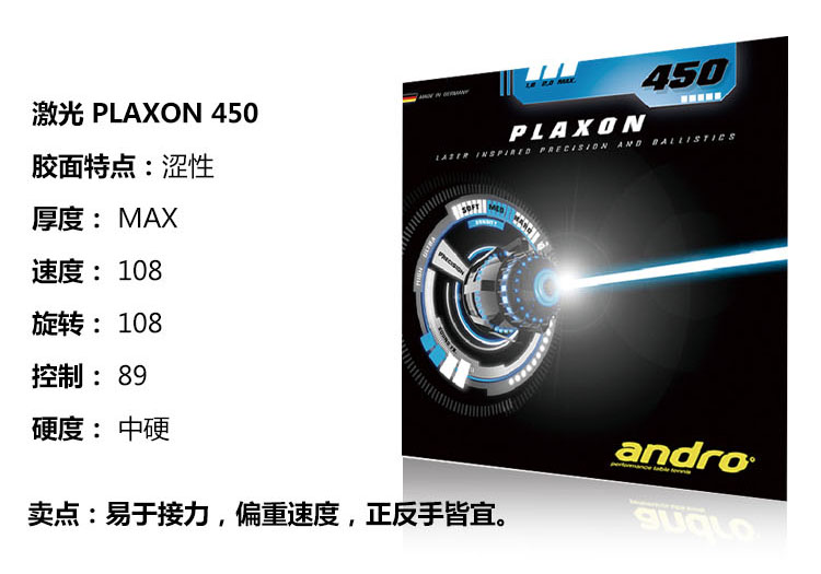 andro岸度安度PLAXON激光350 400 450 525乒乓球胶皮套胶