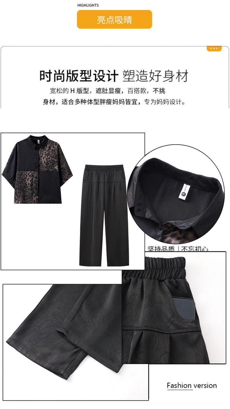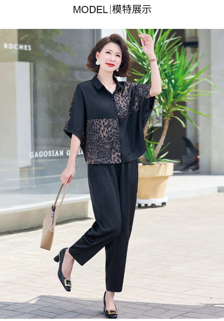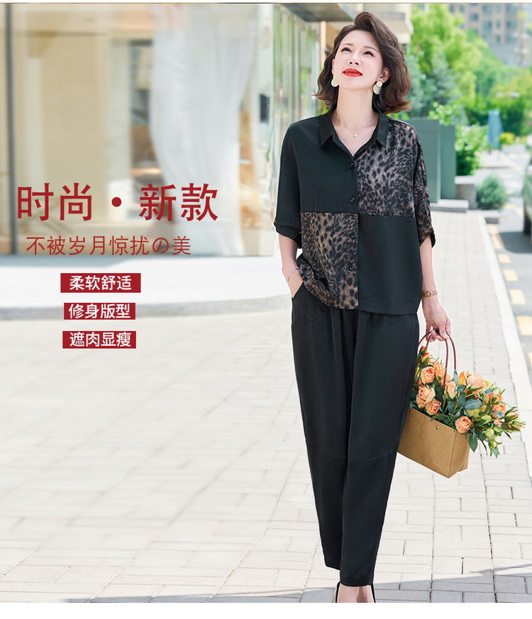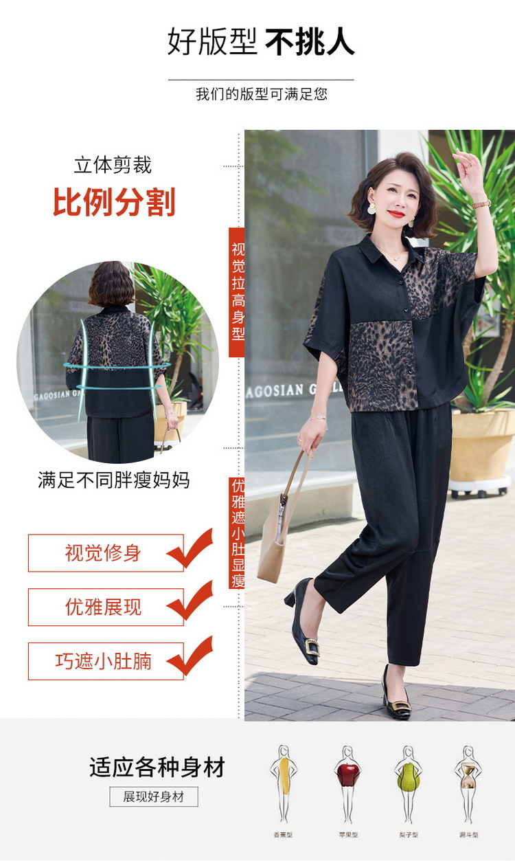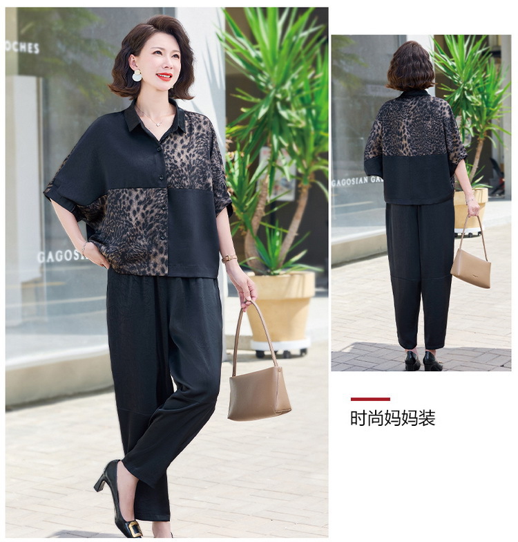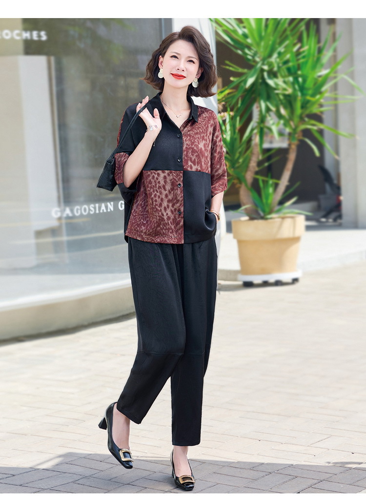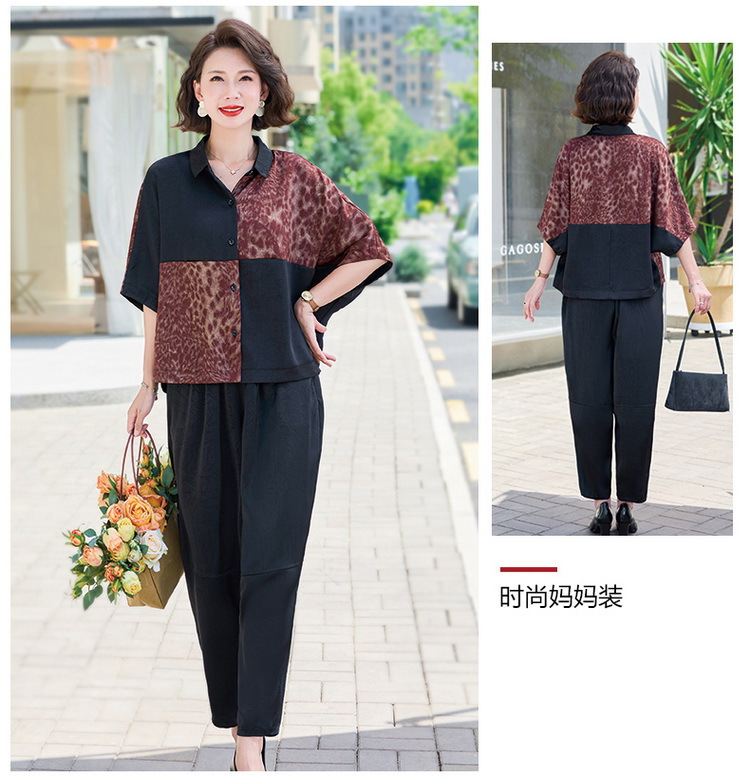 hjx25383妈妈夏装套装2025新款洋气中老年女装宽松拼色短袖衬衫上衣两件套