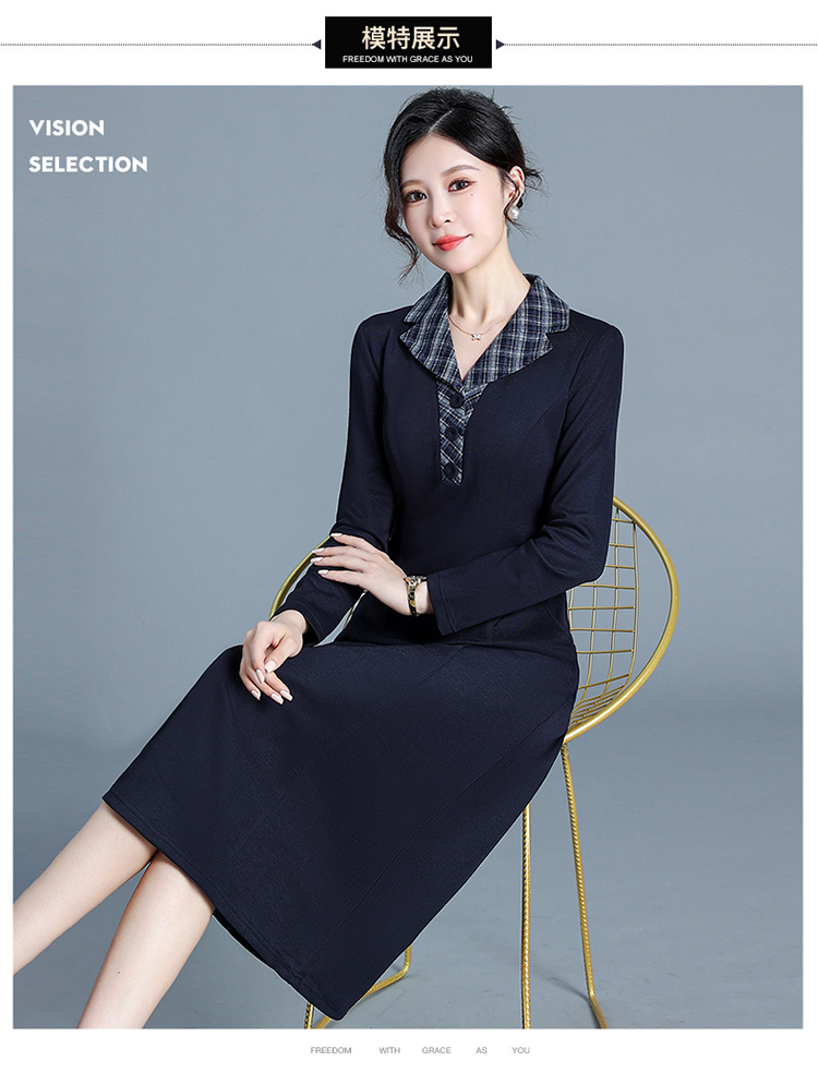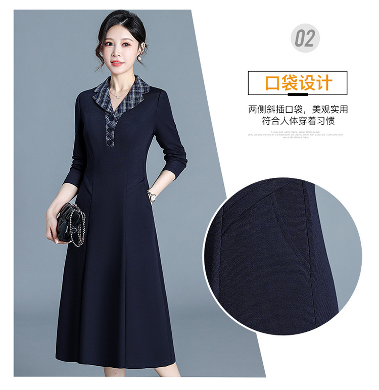 QYM H3352-Y妈妈装时尚格纹西装领连衣裙 商品图3