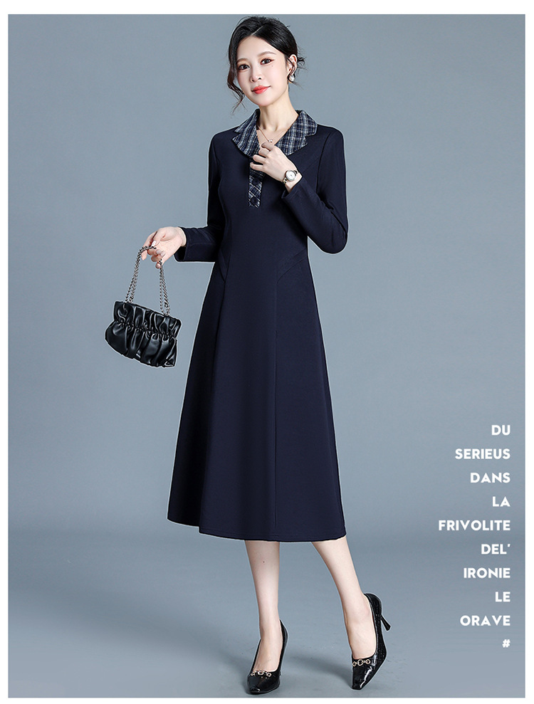 QYM H3352-Y妈妈装时尚格纹西装领连衣裙