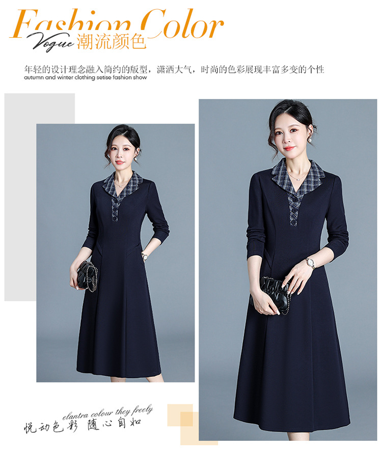 QYM H3352-Y妈妈装时尚格纹西装领连衣裙 商品图0
