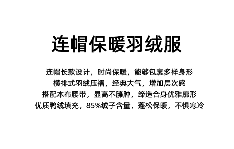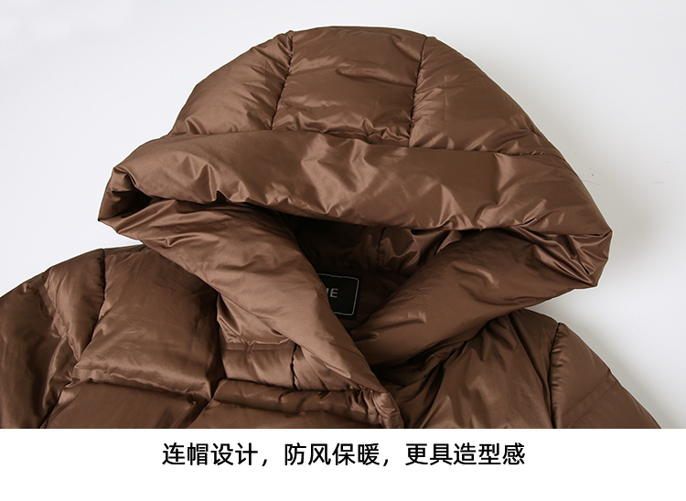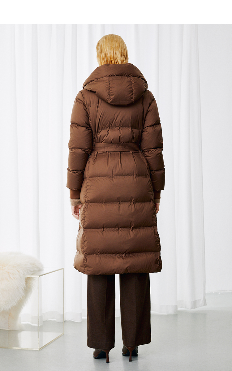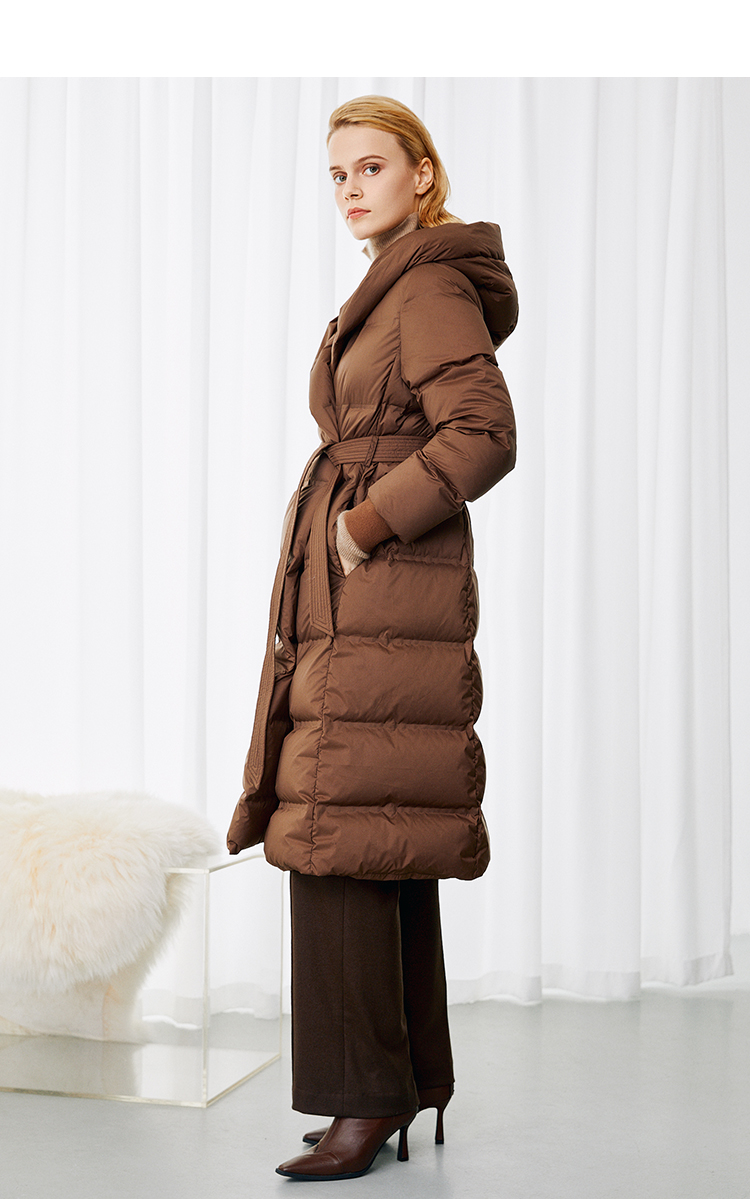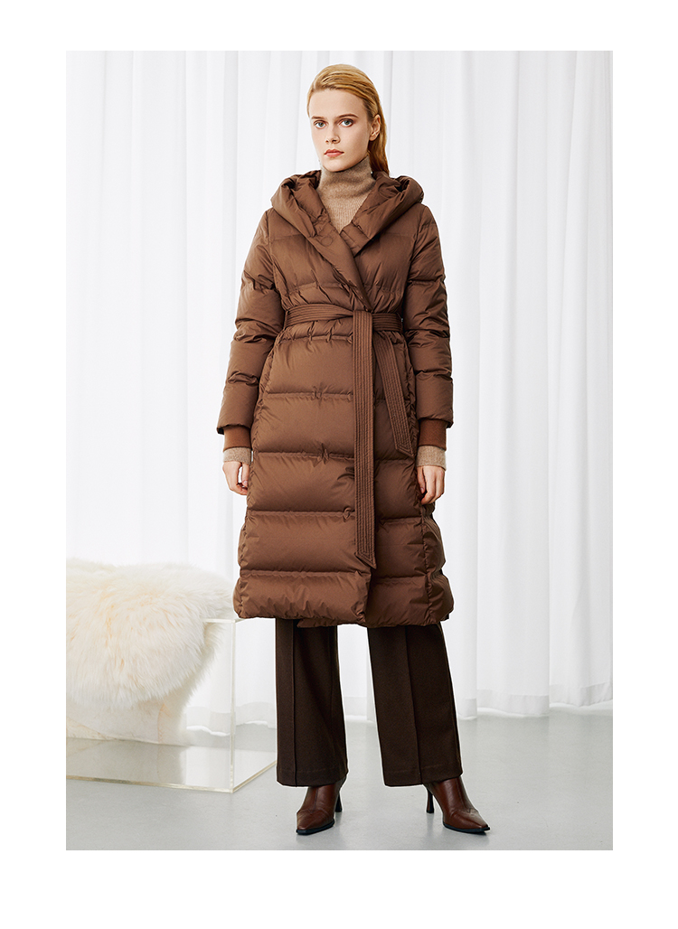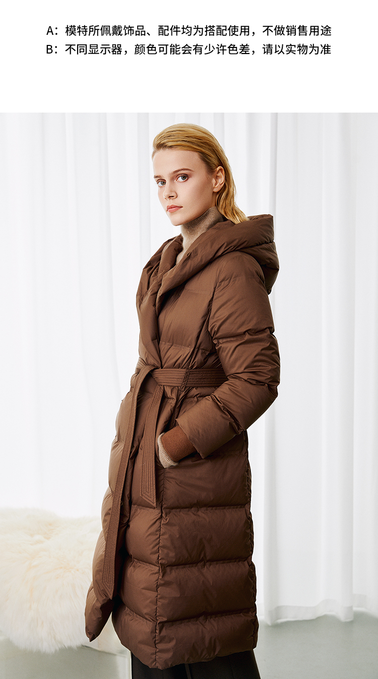 EITIE爱特爱腰带收腰长款保暖加厚纯色连帽防风羽绒服冬新款8011706