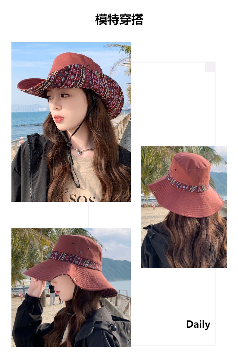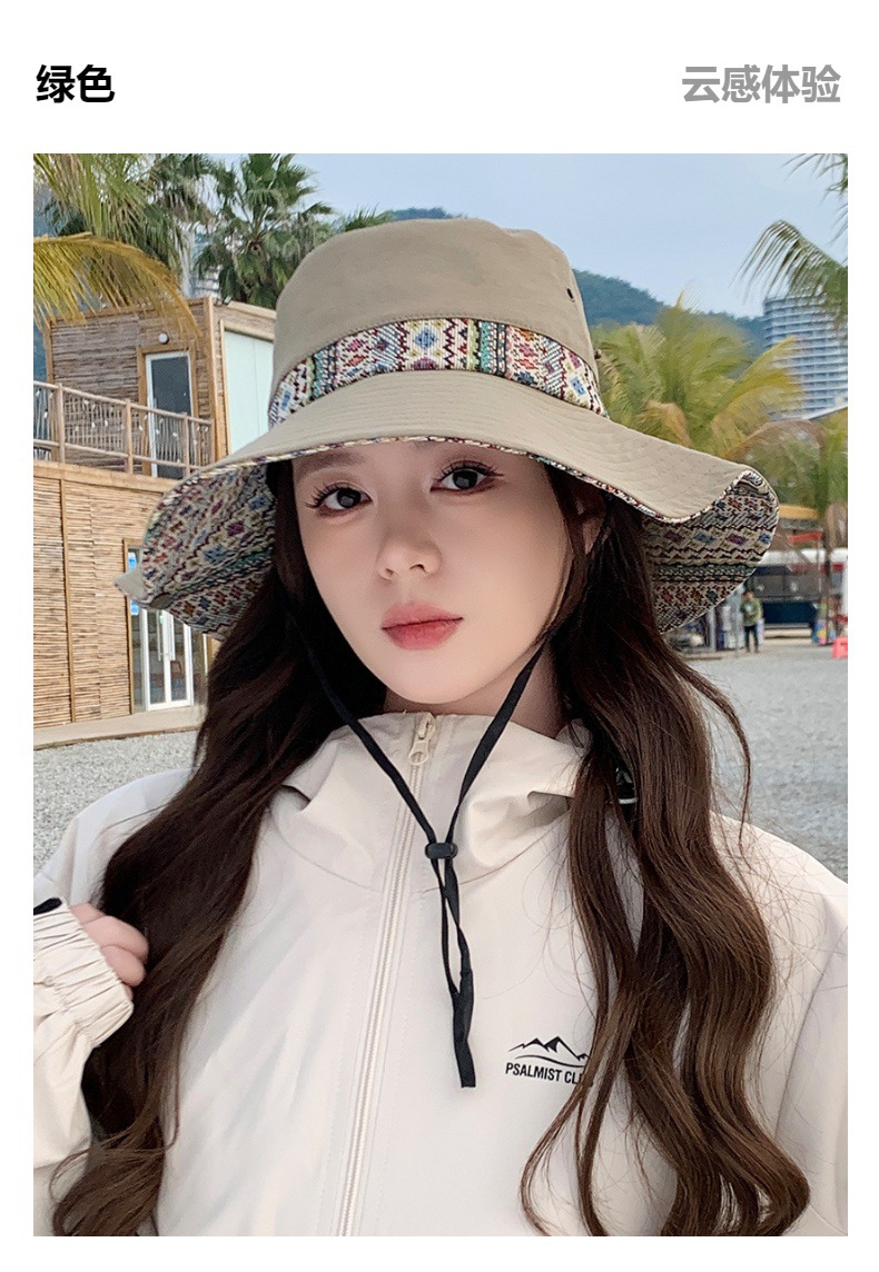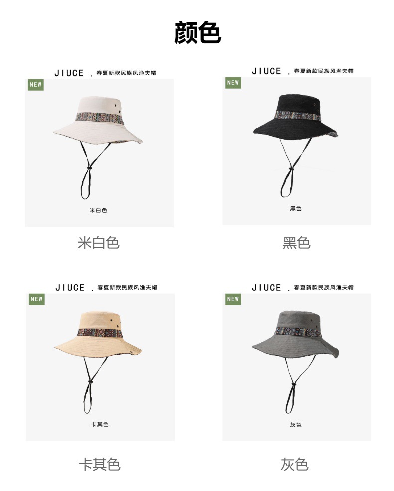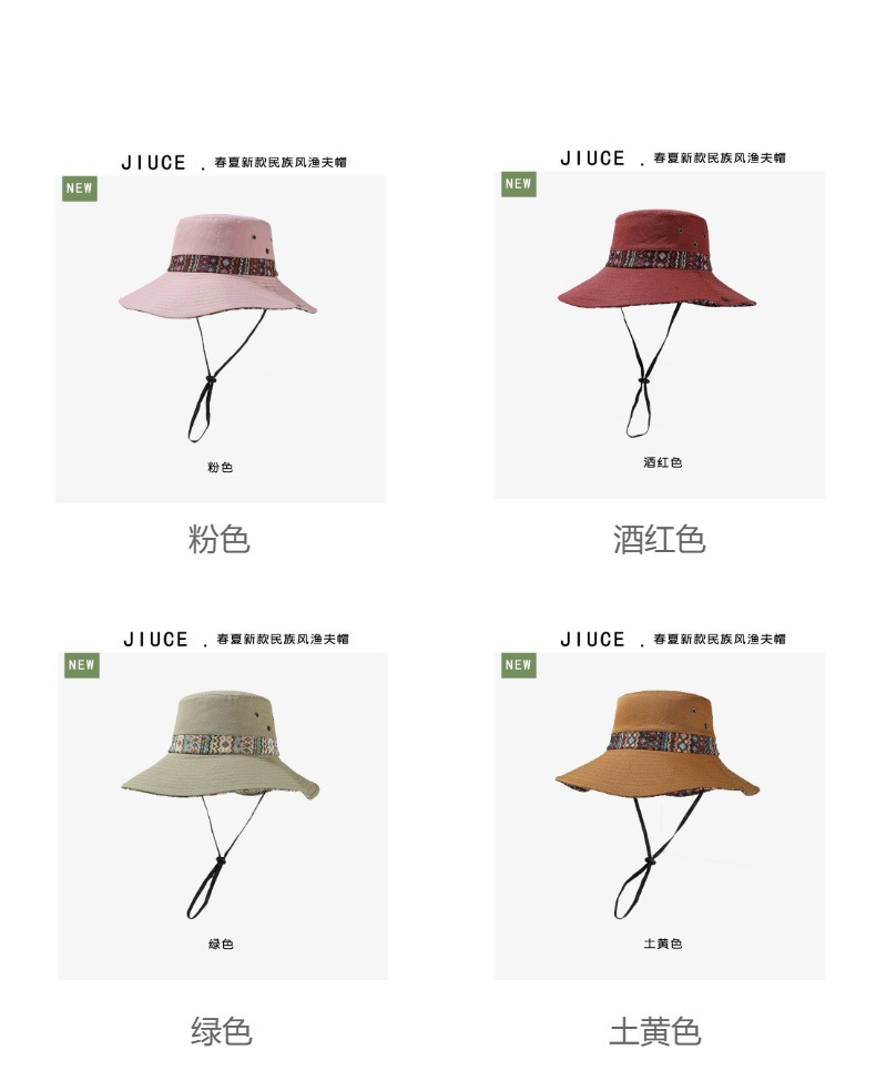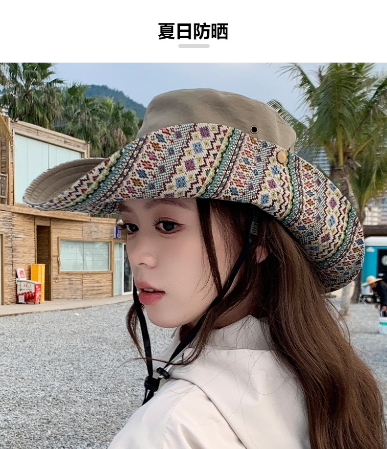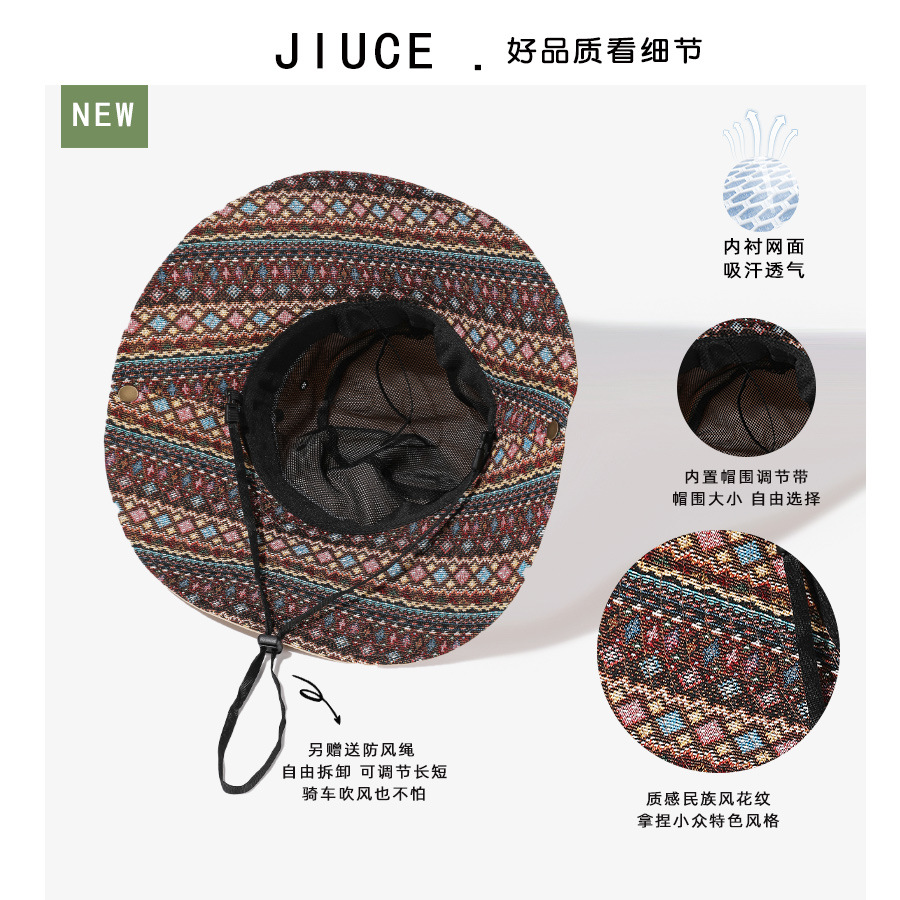 雀说设计师款国潮风彩色提花大沿渔夫帽跨境欧美夏季大头适合防晒帽AL3346