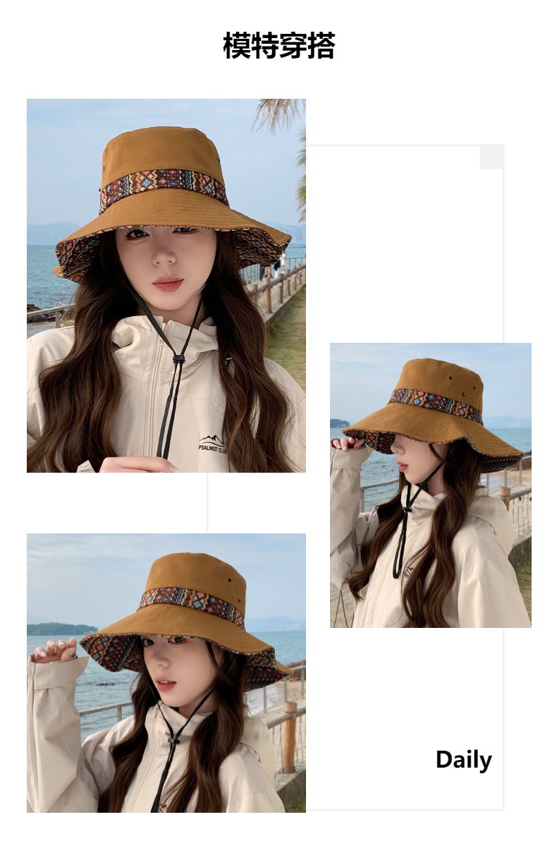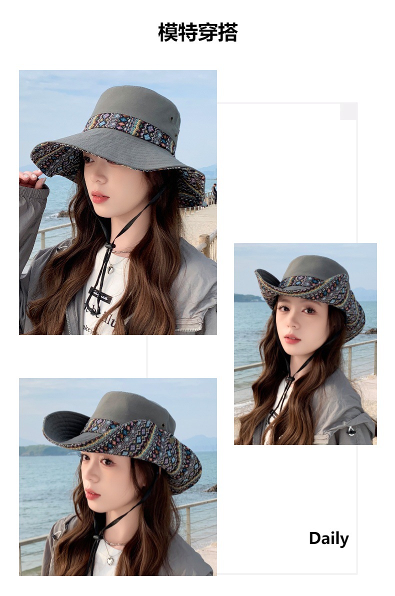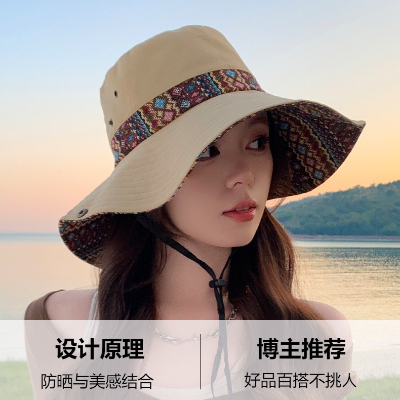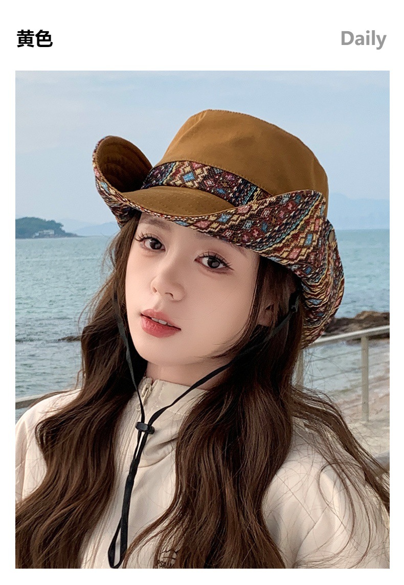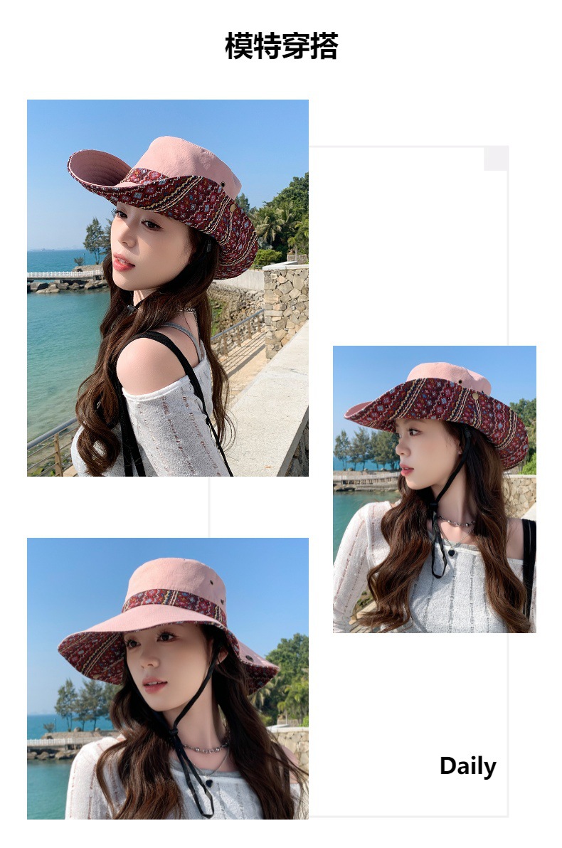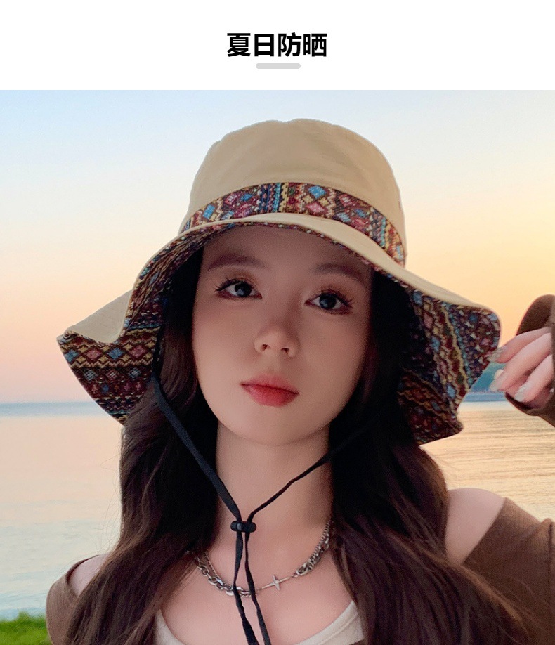 雀说设计师款国潮风彩色提花大沿渔夫帽跨境欧美夏季大头适合防晒帽AL3346