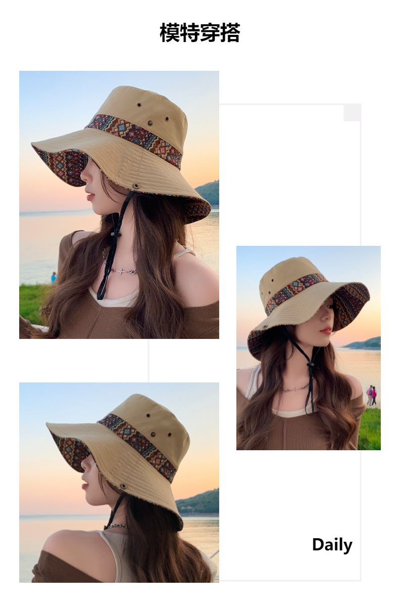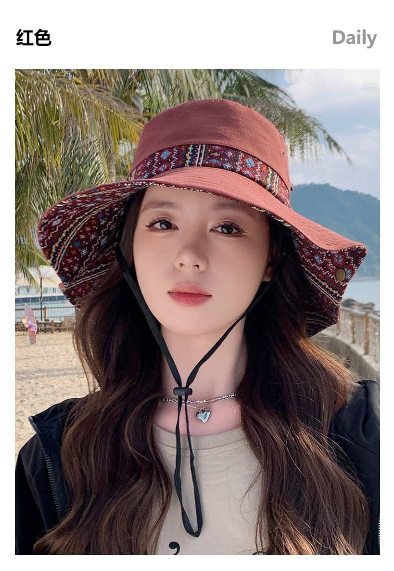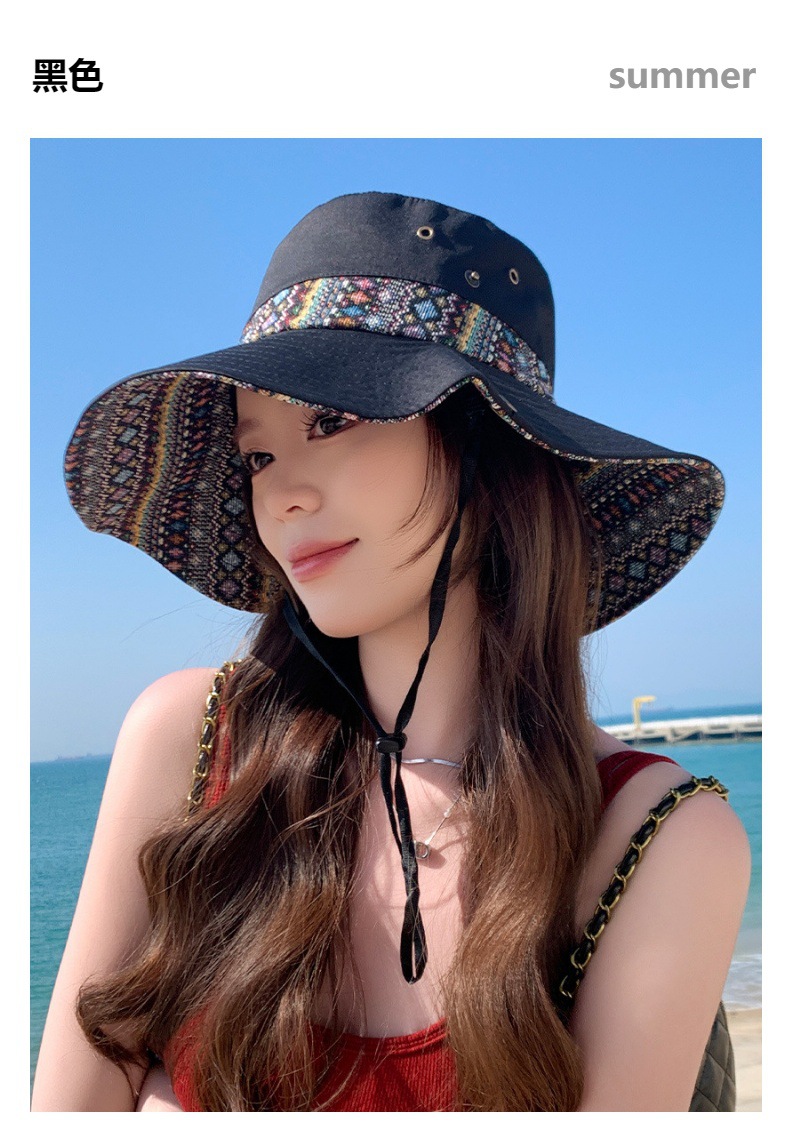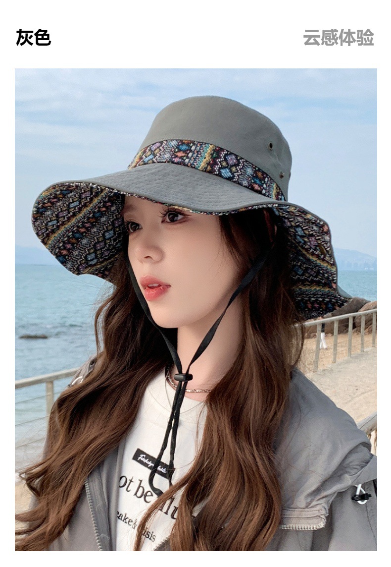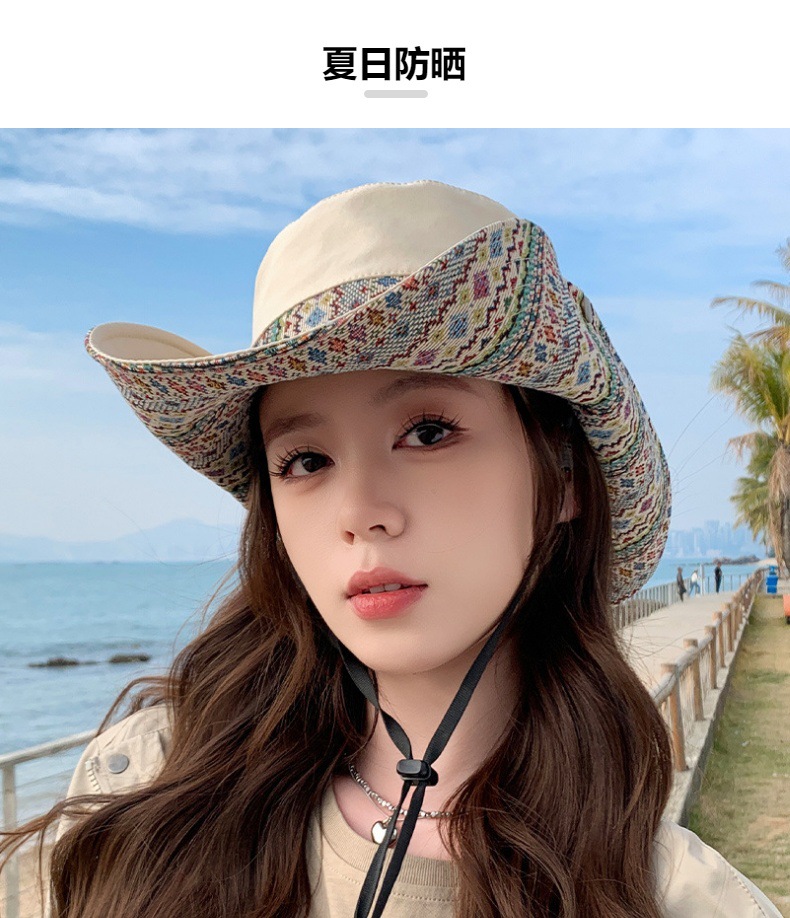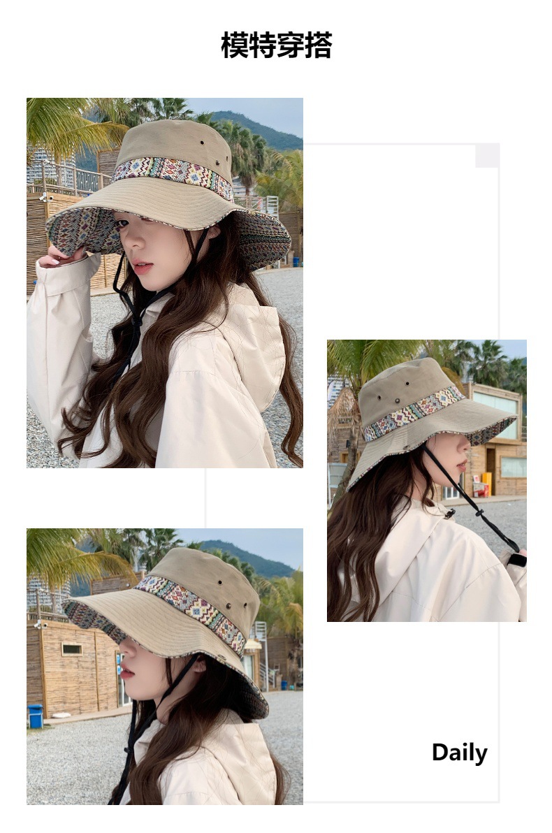 雀说设计师款国潮风彩色提花大沿渔夫帽跨境欧美夏季大头适合防晒帽AL3346