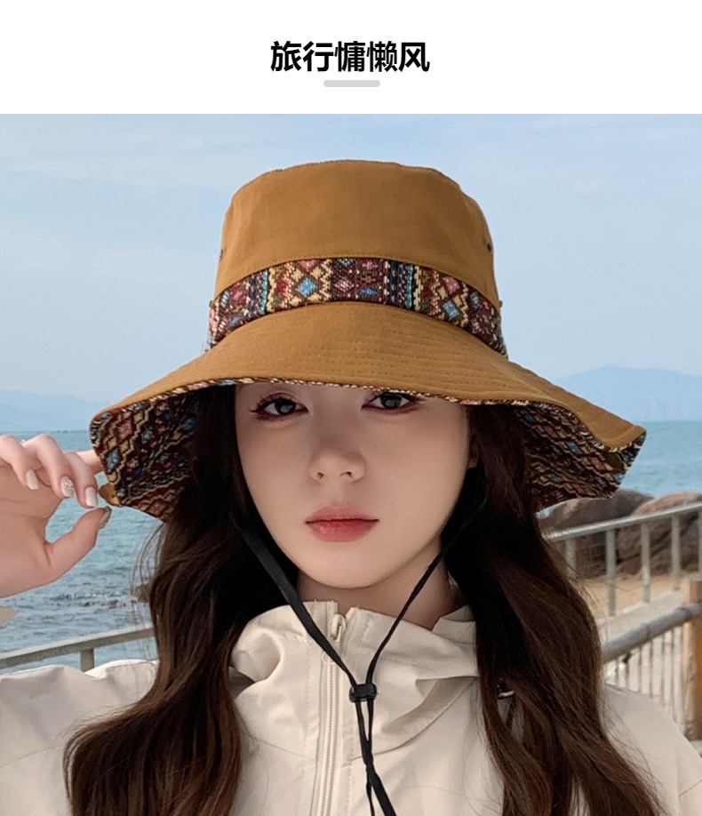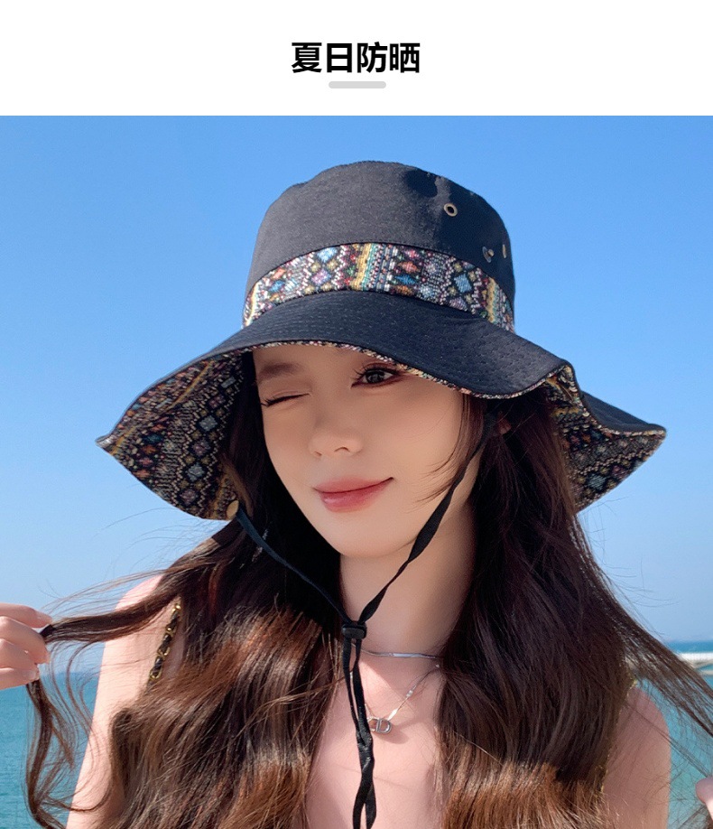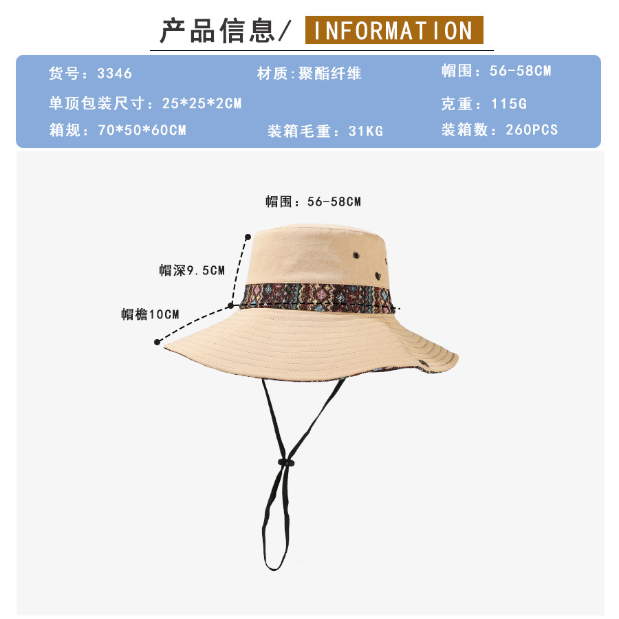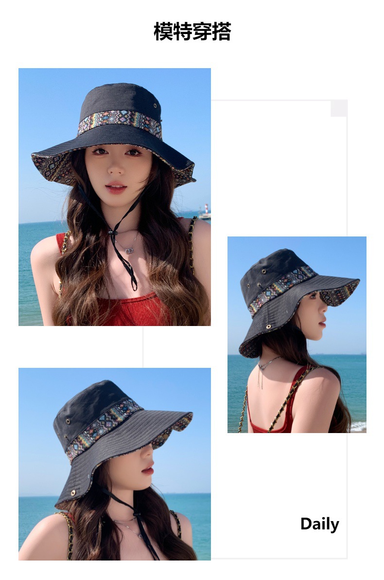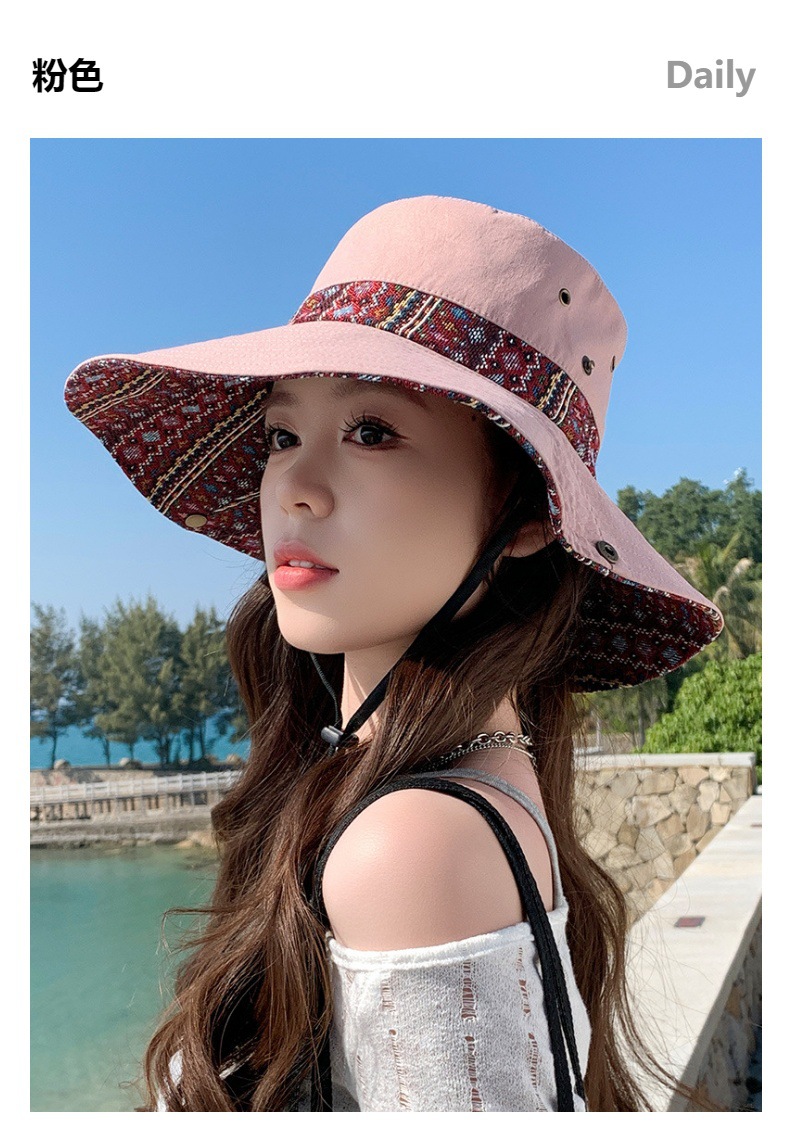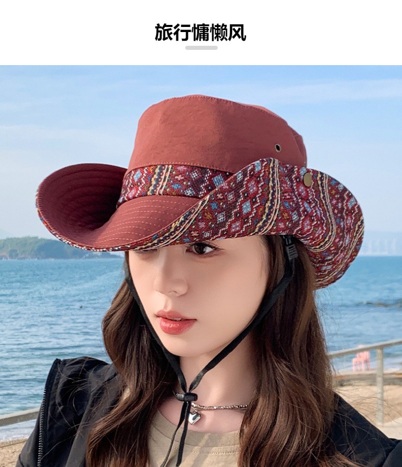 雀说设计师款国潮风彩色提花大沿渔夫帽跨境欧美夏季大头适合防晒帽AL3346