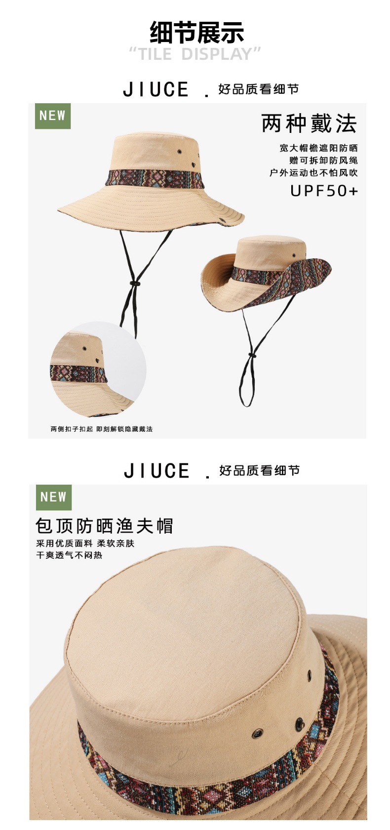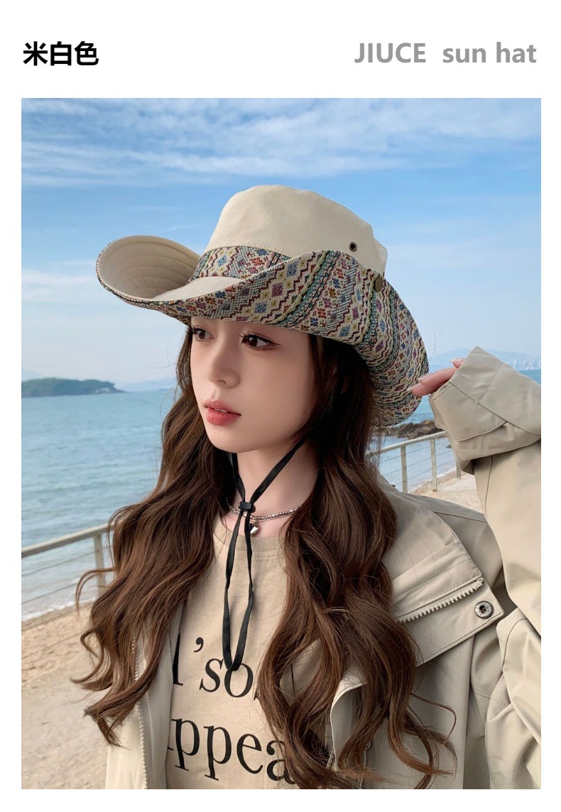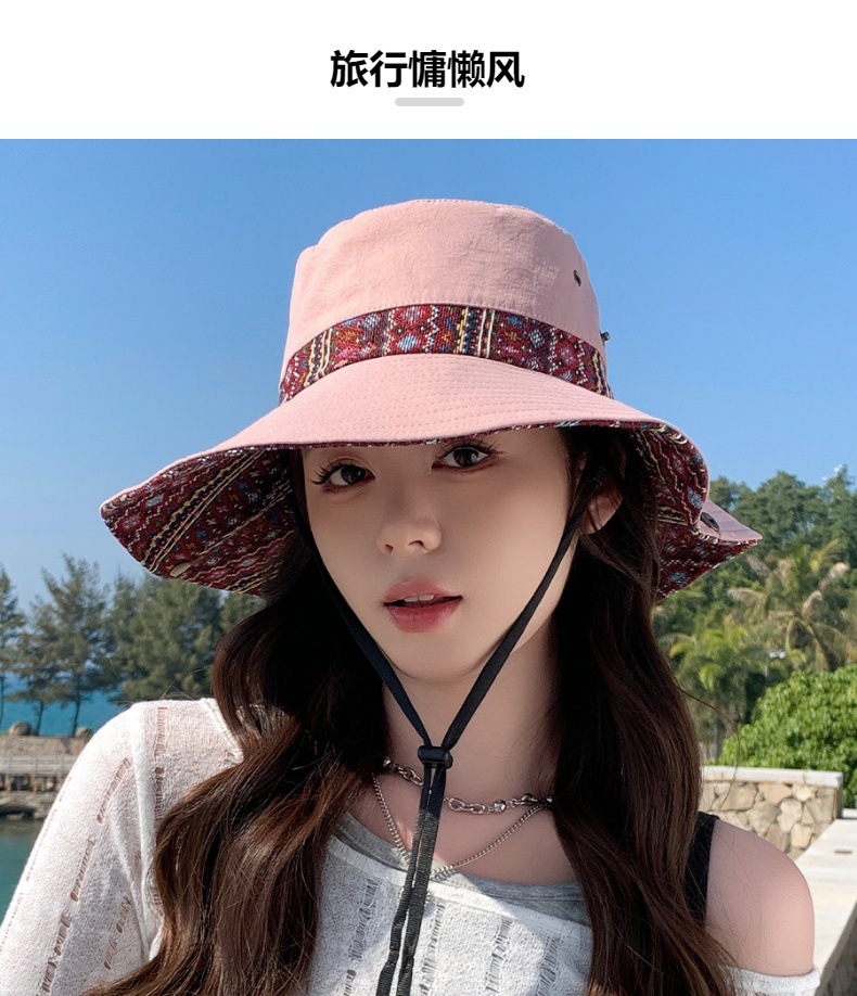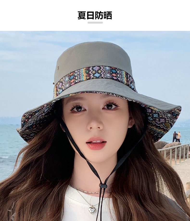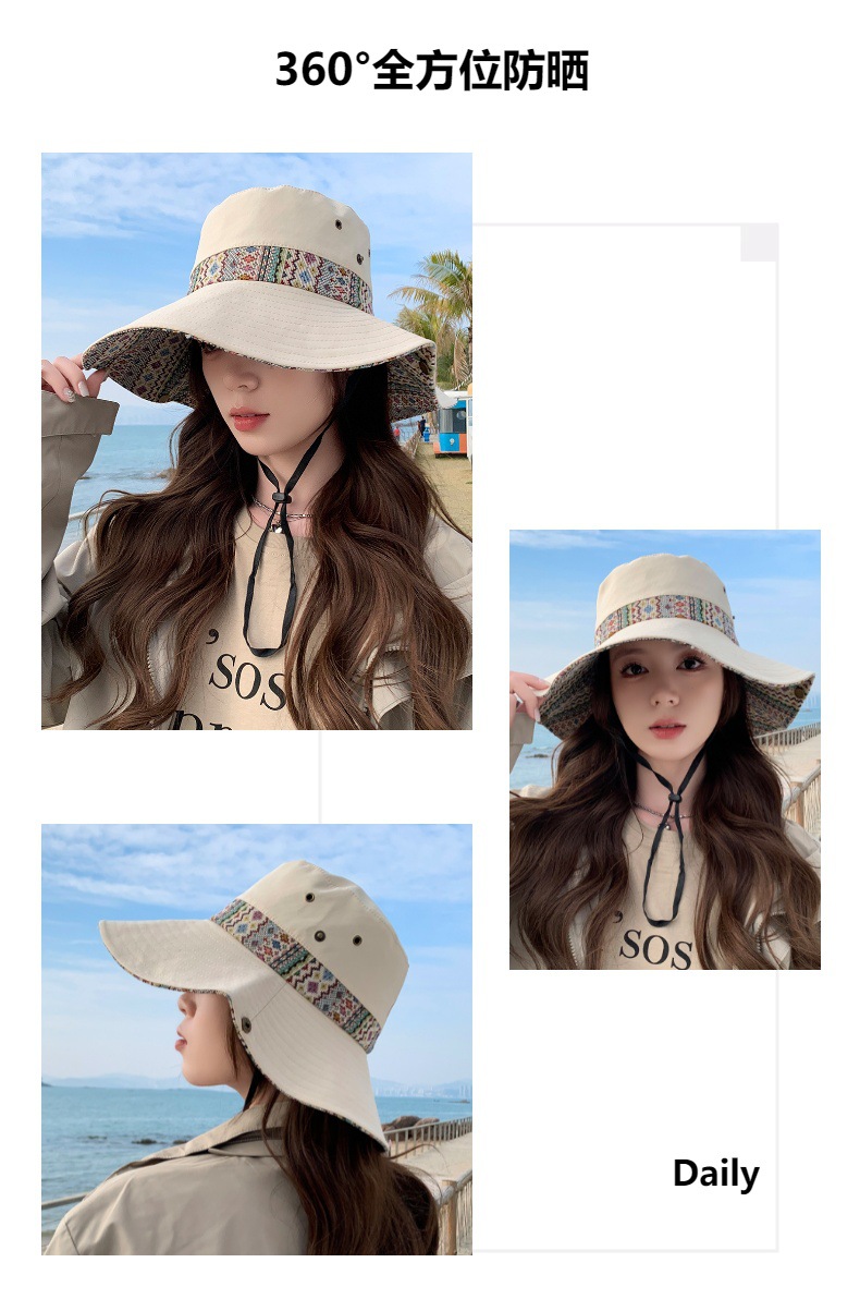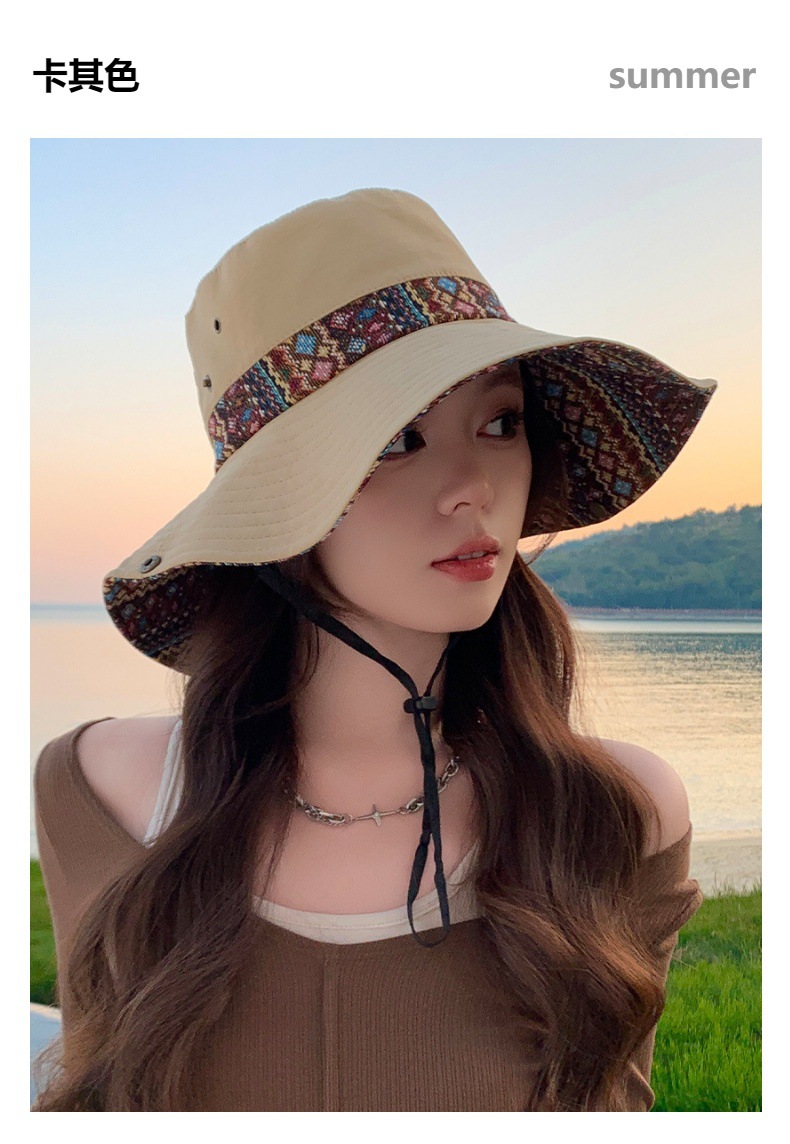 雀说设计师款国潮风彩色提花大沿渔夫帽跨境欧美夏季大头适合防晒帽AL3346